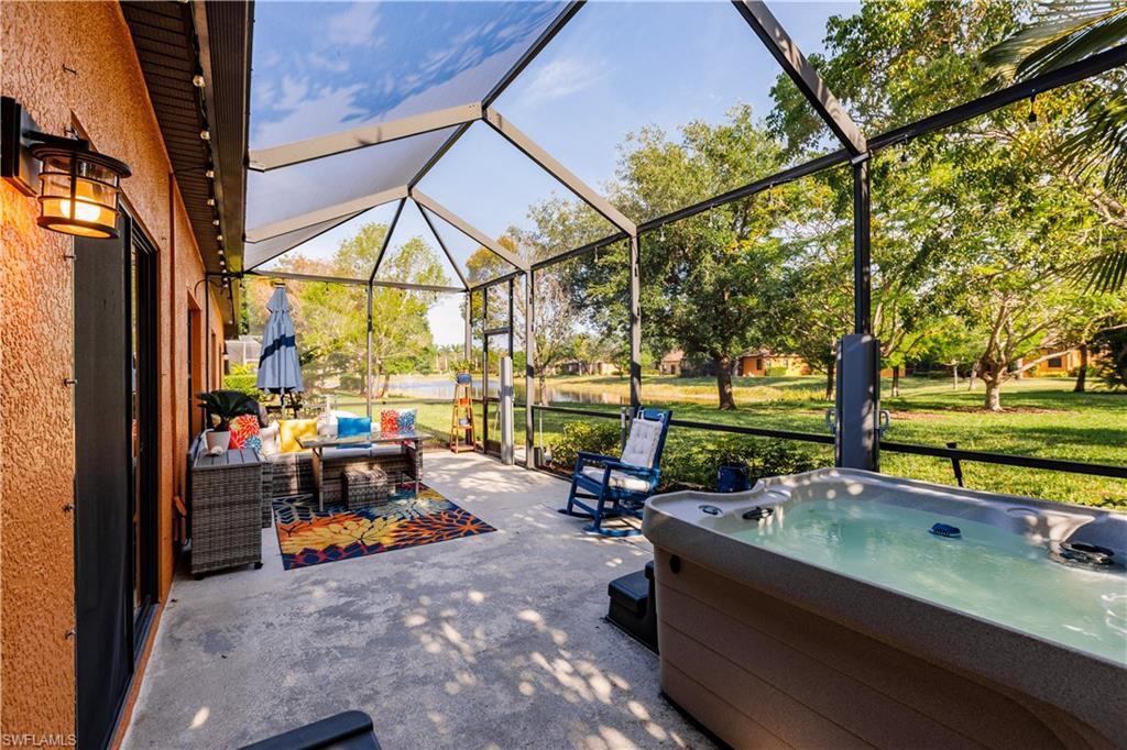 Enjoy the best of both worlds in this stunning lake front villa with an attached two car garage that lives like a single-family home, without the worry of exterior maintenance. Located on a quiet Cul-de-Sac, 3708 Costa Maya Way offers three bedrooms & two full bathrooms, along with expansive outdoor living space and your own PRIVATE HOT TUB. Escape to your spacious master retreat complete with lake views, a spacious walk-in shower, and two large walk-in closets. You will love this open floor plan offering a large eat-in kitchen with extra tall wood cabinets, stainless-steel appliances, a large walk-in pantry & breakfast nook. Find serenity on your extended lake front lanai with privacy where you can enjoy peaceful fountain views and breathtaking sunsets. Your HUGE spacious backyard is surrounded by lush tropical landscaping, providing the outdoor oasis that you have been dreaming of! ALL OF THIS is found in the beautiful, gated community of Terra Vista complete with a large community pool and clubhouse! NOT IN A FLOOD ZONE, VERY LOW HOA fees and NO CDD FEES! You can't beat this AMAZING LOCATION WEST of US-41, close to shopping & dining, and premier healthcare.....ALL WITHIN easy access to US-41 & I-75. HURRY-- before this gorgeous property is just another SOLD that you missed out on!