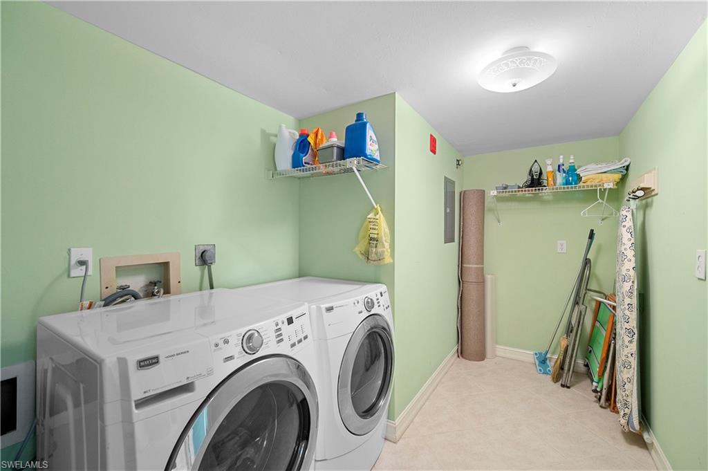 Florida Oasis on 13 acres of beautifully landscaped grounds in the heart of Naples! Immaculate 2 bedroom/2 bath turn key, end unit condo just 1.5 miles away from world class beaches, dining, restaurants and shopping on 5th Ave. S. This well maintained, spacious condo is situated on one of the highest points in Naples and DID NOT FLOOD! It offers Gulf Access via boat docks that can be leased or purchased, when available. Look out over the beautiful preserve and clubhouse from your 2nd floor, southern exposure screened in lanai. The open kitchen offers stainless steel appliances, granite countertops and new white cabinets with plenty of storage. More storage space is available in the EXTRA LARGE walk-in master closet PLUS the EXTRA LARGE laundry room featuring a new washer & dryer. The condo building is also meticulously maintained and is located close to the clubhouse and resort style pools (there are 2 onsite) just steps away from the newer common elevator and stairs above the covered bike storage area. The Sandpiper Bay Club has easy GULF ACCESS (no bridges) with boat docks that can become available through association transfer. This prestigious community is one of the best deals in town and THIS CONDO IS PRICED TO SELL. True luxury in the heart of everything Naples has to offer. Where lifestyle meets value and convenience--paradise on a dime.