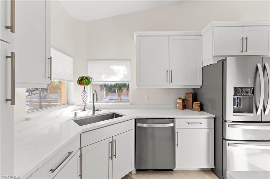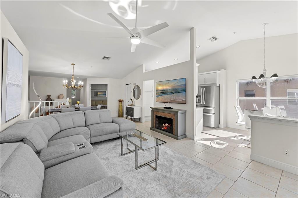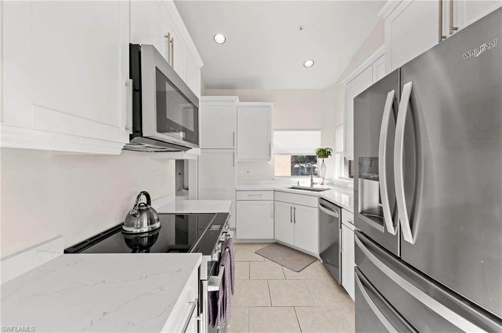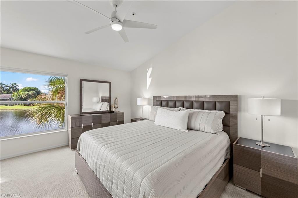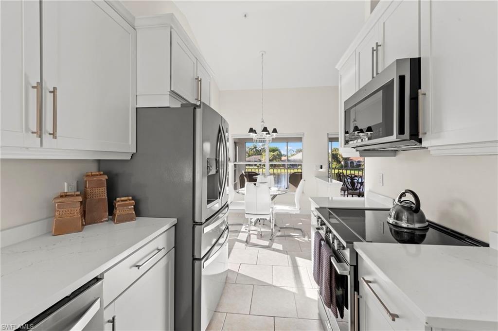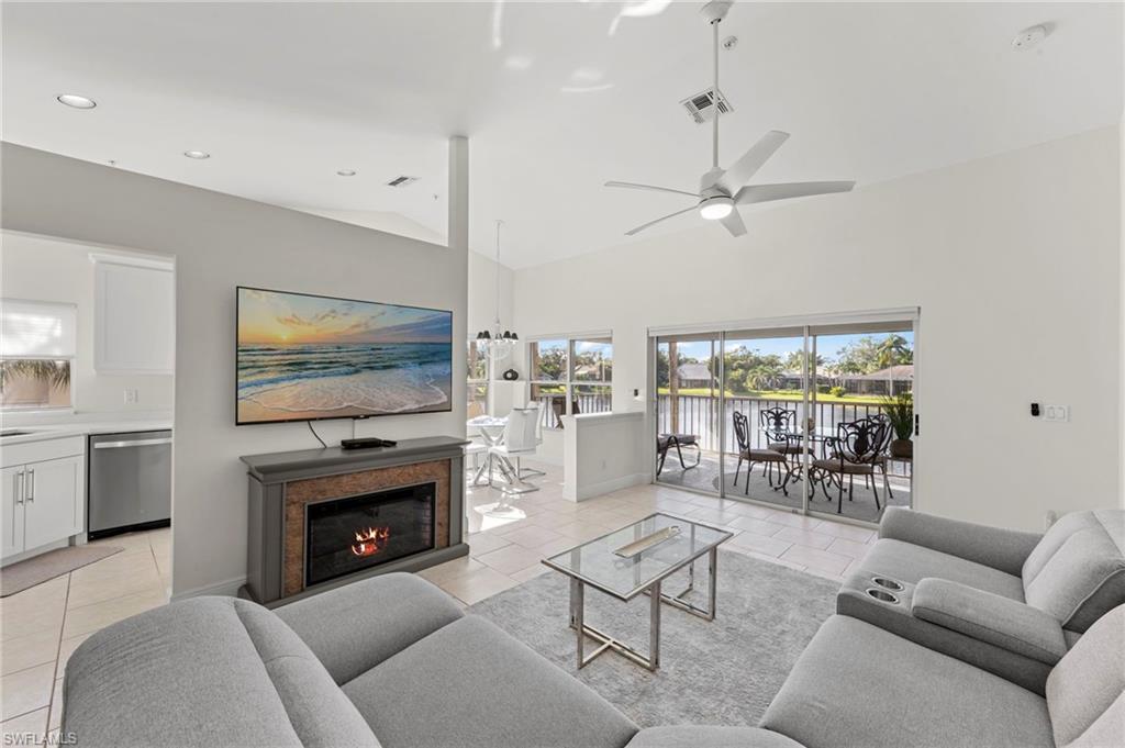 Welcome to this beautifully updated 3-bedroom, 2-bathroom lake view coach home with an attached 1-car garage, located in the charming Lakemont Cove neighborhood of Pelican Landing. This stylish residence has been transformed with designer-grade upgrades, including a modern kitchen with quartz countertops, soft-close cabinetry, stainless steel appliances, and sophisticated lighting and fixtures throughout. Vaulted ceilings and an open-concept layout create a bright, airy ambiance, while the screened lanai offers tranquil views of the lake—perfect for relaxing or entertaining. The spacious primary suite features serene water views, a beautifully remodeled en-suite bathroom, and generous closet space, making it a true retreat. Pelican Landing offers an unparalleled lifestyle with resort-style amenities, including a private 34-acre island beach park accessible by boat shuttle, a full-service fitness center, tennis and pickleball courts, and complimentary kayaking and sailing from the community’s marina. Golf enthusiasts can enjoy optional membership at the private, 36-hole Golf Club "The Nest". Just minutes from your door, you'll find the best of Southwest Florida shopping and dining—from the boutiques and restaurants at Coconut Point and Promenade at Bonita Bay to the upscale options at Mercato and Waterside Shops. With luxury updates, stunning views, and access to both nature and nearby conveniences, this coach home truly has it all.
