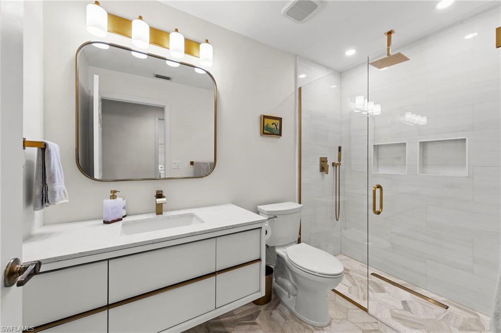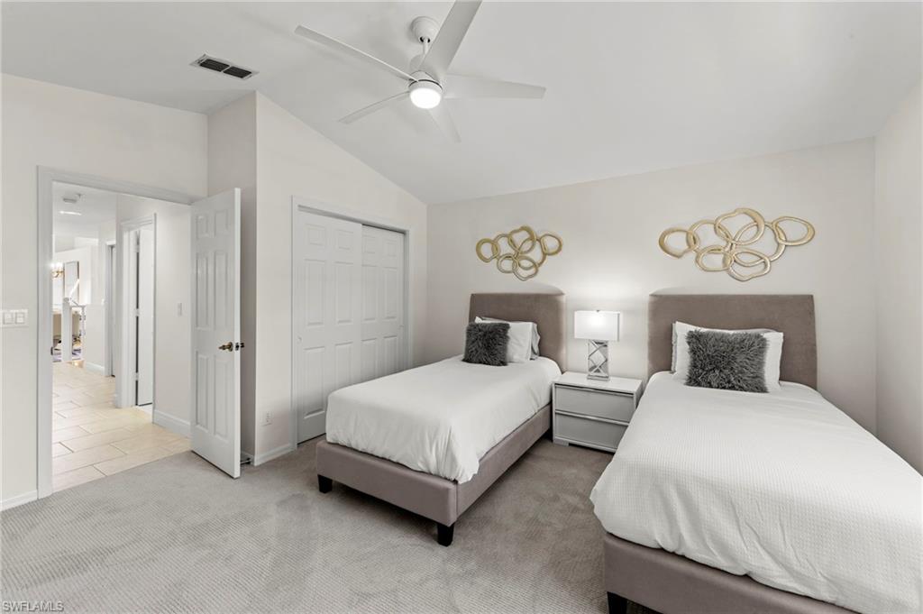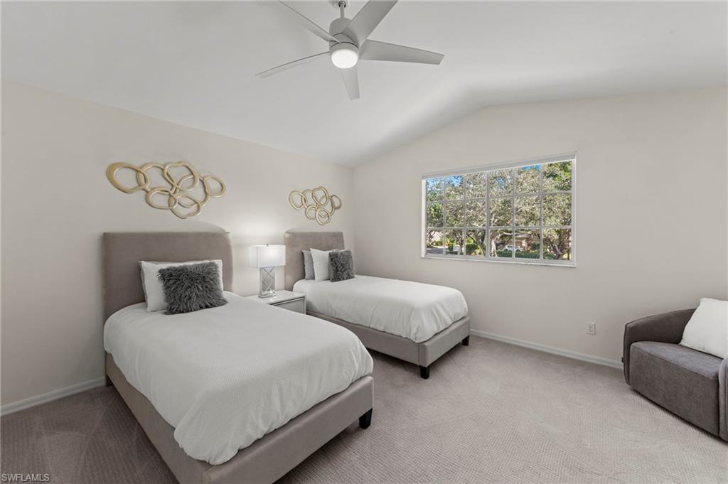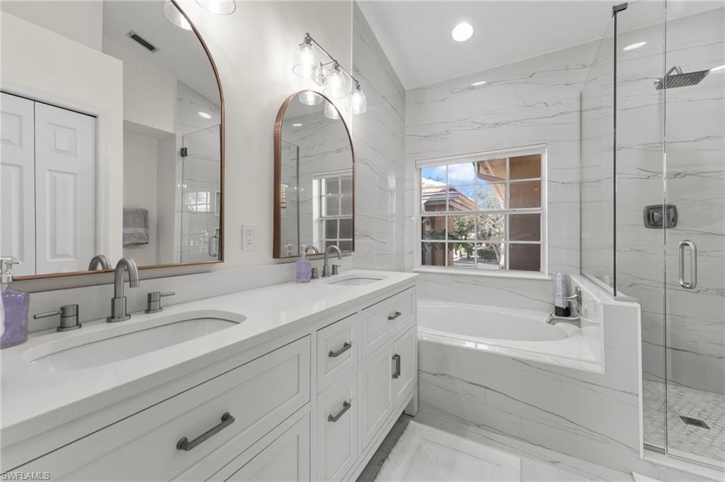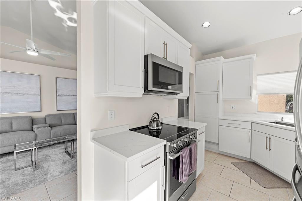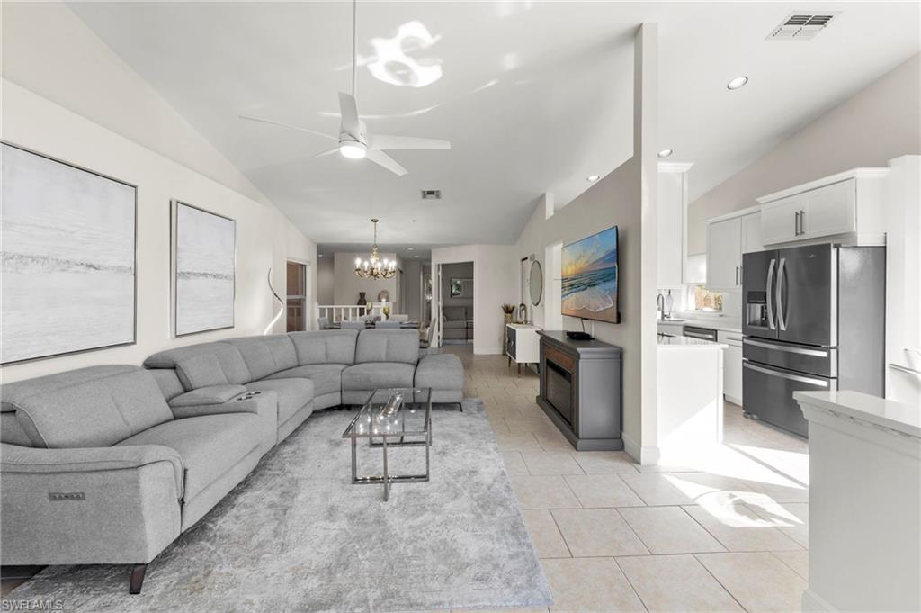 Welcome to this beautifully updated 3-bedroom, 2-bathroom lake view coach home with an attached 1-car garage, located in the charming Lakemont Cove neighborhood of Pelican Landing. This stylish residence has been transformed with designer-grade upgrades, including a modern kitchen with quartz countertops, soft-close cabinetry, stainless steel appliances, and sophisticated lighting and fixtures throughout. Vaulted ceilings and an open-concept layout create a bright, airy ambiance, while the screened lanai offers tranquil views of the lake—perfect for relaxing or entertaining. The spacious primary suite features serene water views, a beautifully remodeled en-suite bathroom, and generous closet space, making it a true retreat. Pelican Landing offers an unparalleled lifestyle with resort-style amenities, including a private 34-acre island beach park accessible by boat shuttle, a full-service fitness center, tennis and pickleball courts, and complimentary kayaking and sailing from the community’s marina. Golf enthusiasts can enjoy optional membership at the private, 36-hole Golf Club "The Nest". Just minutes from your door, you'll find the best of Southwest Florida shopping and dining—from the boutiques and restaurants at Coconut Point and Promenade at Bonita Bay to the upscale options at Mercato and Waterside Shops. With luxury updates, stunning views, and access to both nature and nearby conveniences, this coach home truly has it all.