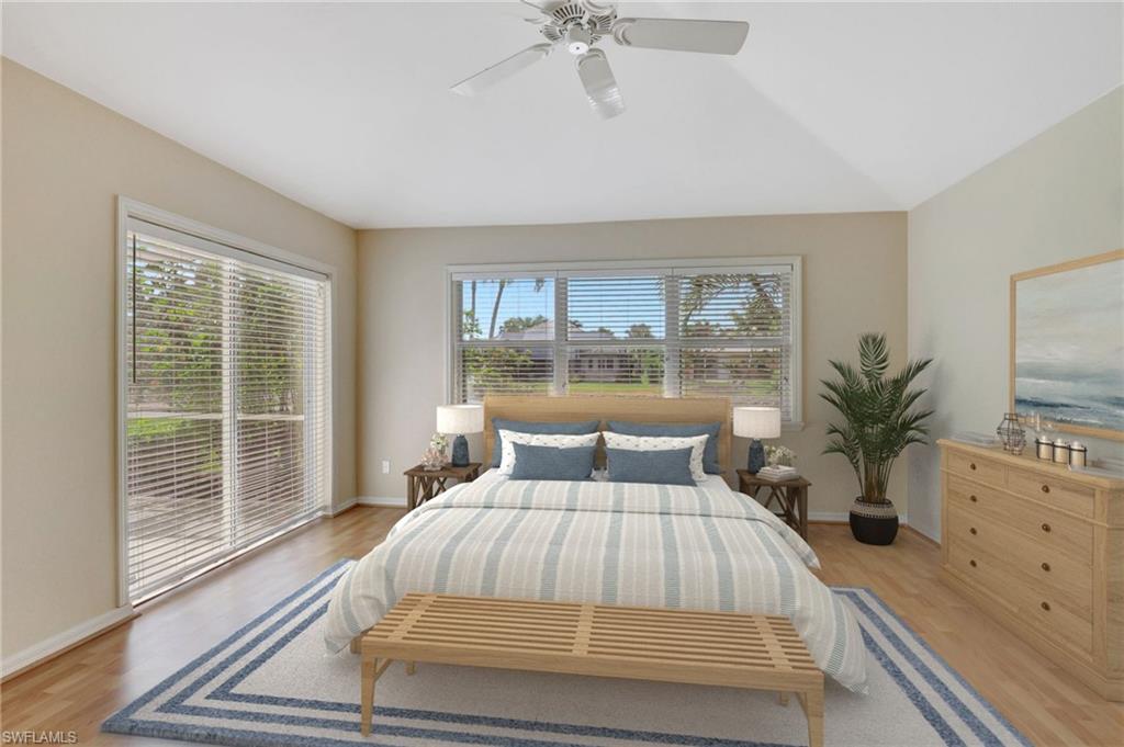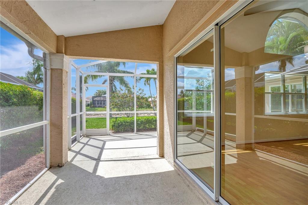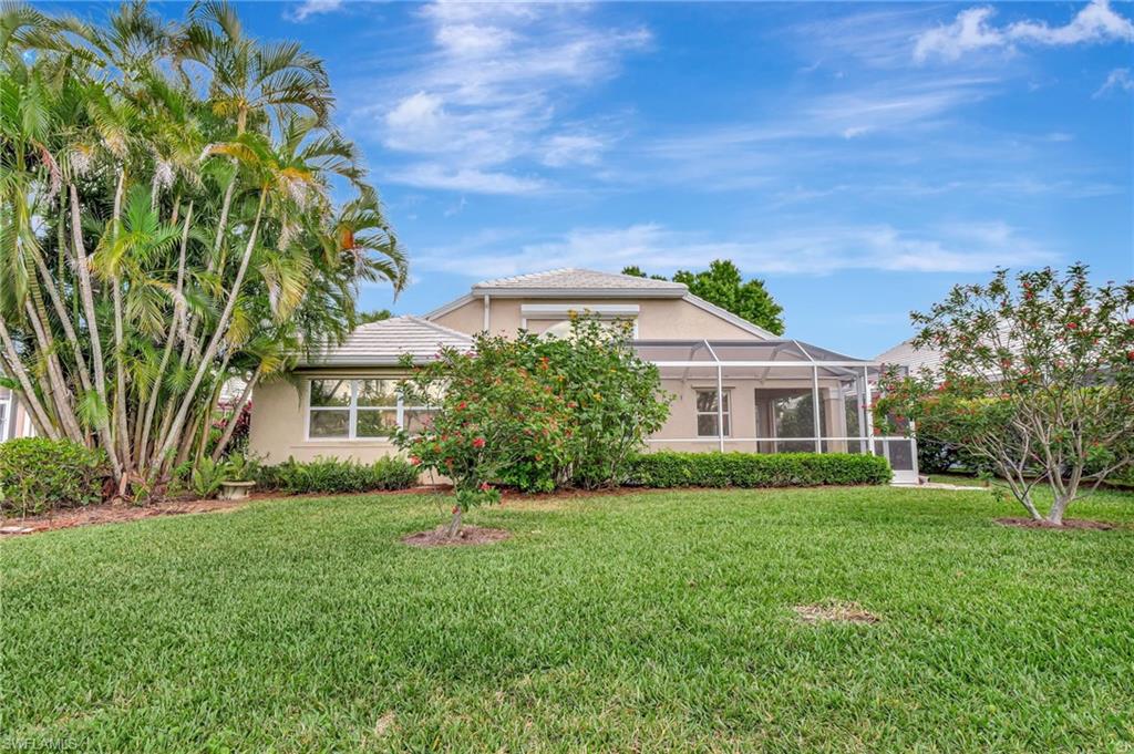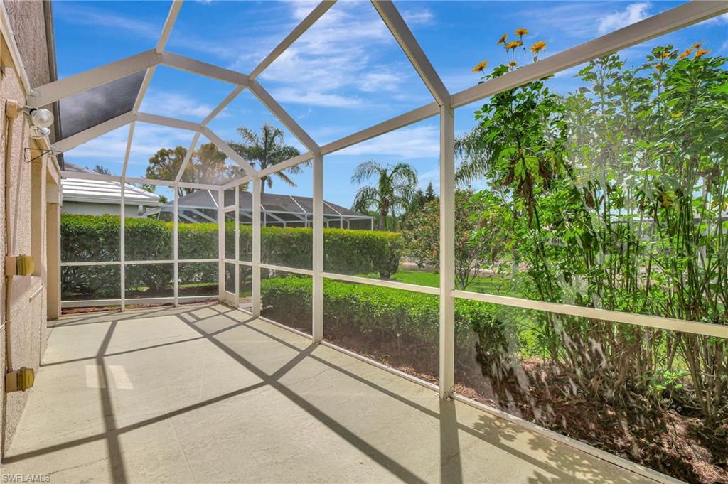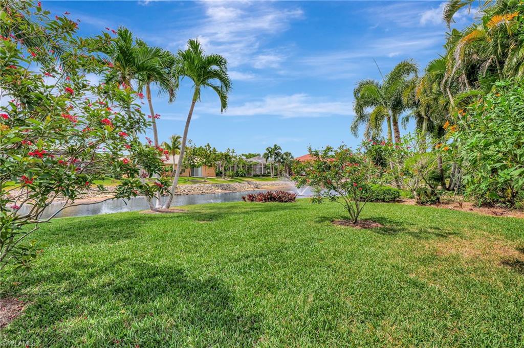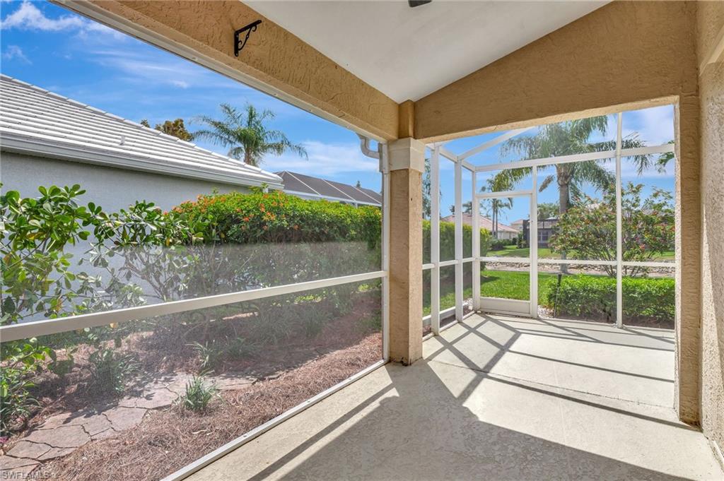 Think: Peace. As you enter the open foyer, listen to the calming fountain spray. This listing offers an amazing opportunity to purchase a lakefront, single-family home in Sterling Oaks. This very desirable sun-filled “Bougainvillea” property is rarely offered. Within a five-minute walk to 12 tennis courts and 5 pickleball courts, this lovely home boasts an open floor plan including a generous 3rd bedroom/den. Meticulously cared for; owners have updated this home with several improvements, including: master and guest bath renovations, hurricane protection, new driveway/patio pavers, roof, A/C, and water heater. Newly painted throughout, this home invites a fresh start for a vacation retreat or family home. Vaulted ceilings abound, the extra-large kitchen with island and glass front cabinets is sun-filled, and is ready for tranquil hospitality. A lovely wrap-around lanai faces the lake and could be enlarged to accommodate the pool of your dreams. This scenic, outdoor living area is private and embraced by beautifully maintained, mature plantings. This is the place for entertaining, relaxing, and enjoying the view from the privacy of your own home. Sterling Oaks is a vibrant, gated resort, tennis-optional community with state-of-the-art, lighted tennis courts, pickleball courts, bocce, a full-service Clubhouse with dining, fitness center, and a Jr. Olympic-sized pool with a cabana bar. Come see for yourself why this beautiful sanctuary is priced to sell and promises to fly off the market before you can say Namaste! Some photos in this listing have been virtually staged.