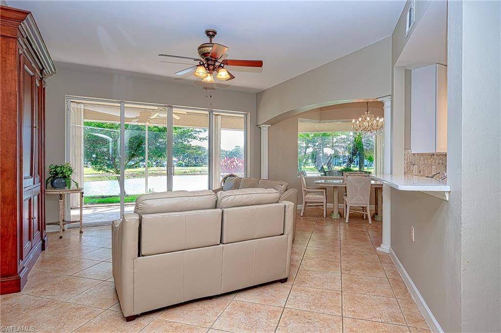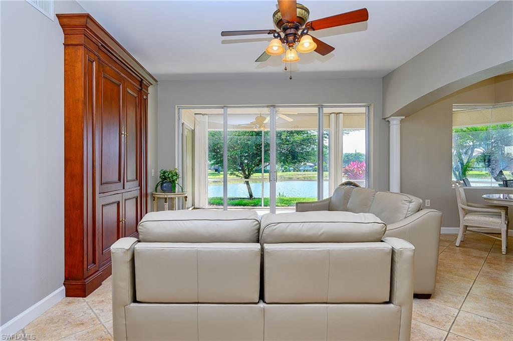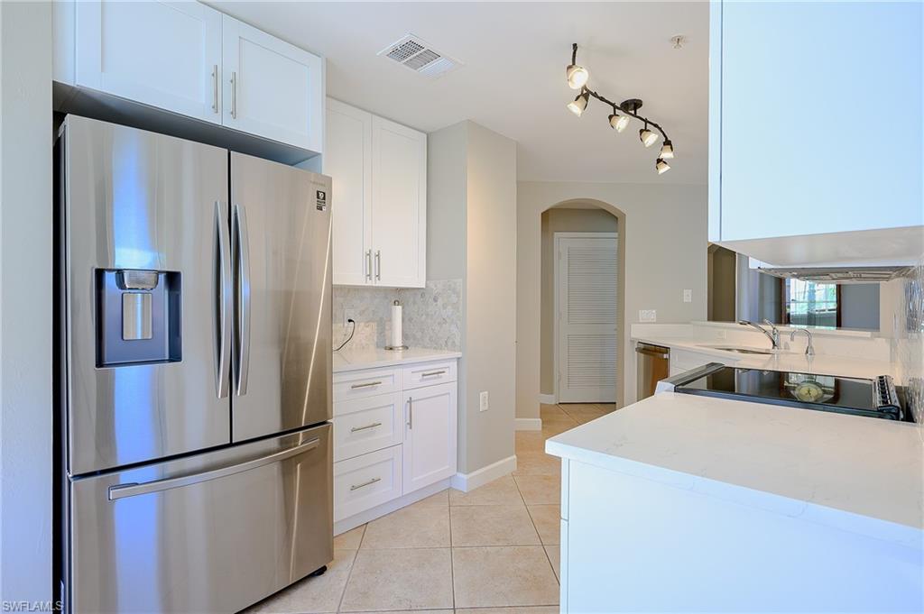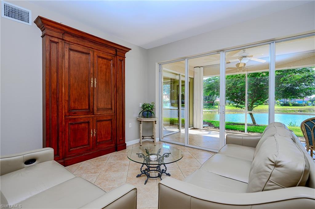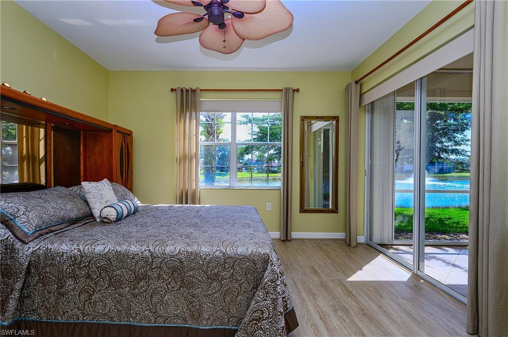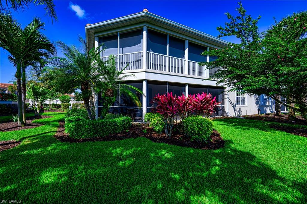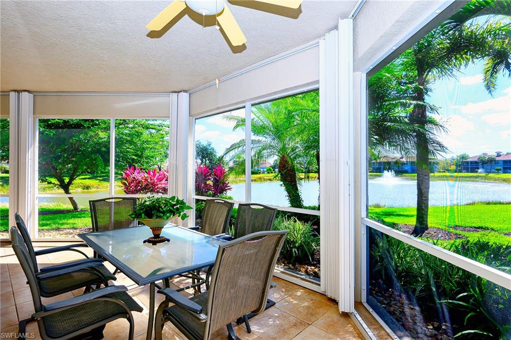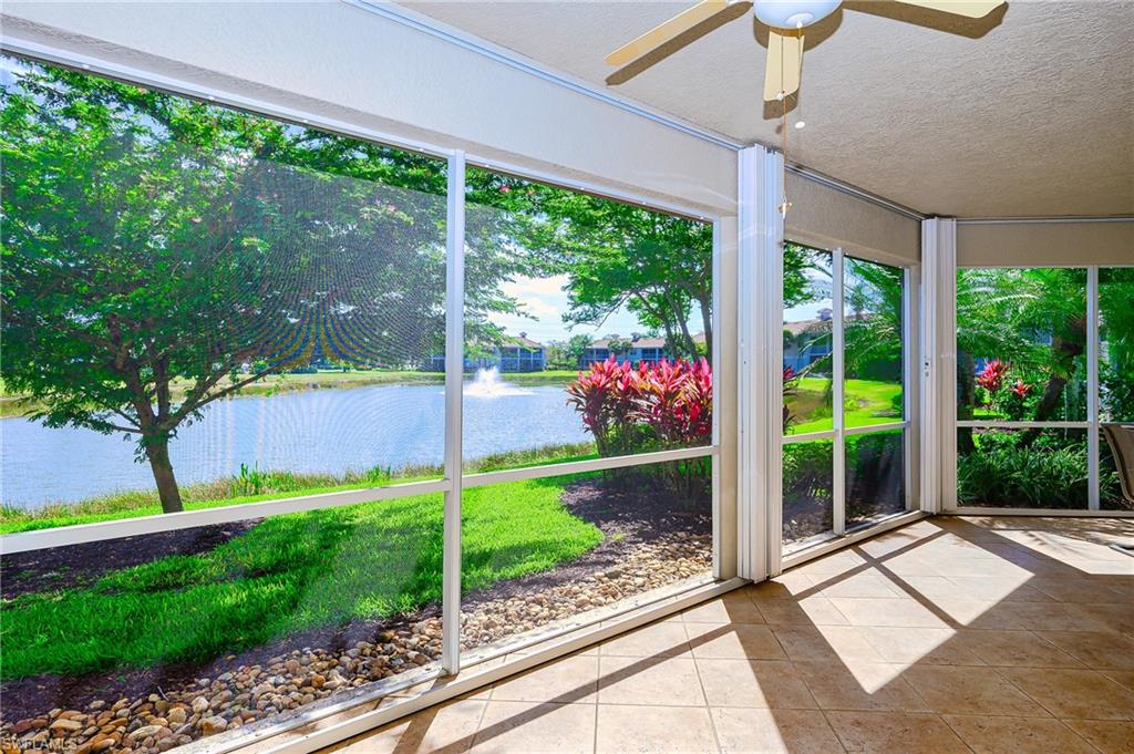 Forget all those run-of-the-mill, cookie cutter condos! This bright and spacious home features a unique 33 foot, screened-in, wrap-around lanai! Enjoy your morning coffee with a peaceful lake and fountain view, and in the warmth of the southeast sun! With 1767 sq. ft. under air, this rarely available 1st floor coach unit features 3 bedrooms, 2 ½ bathrooms, and a 2-car garage. The kitchen is nicely updated with quartz counter tops, large sink, attractive backsplash and newer appliances. Bridgewater Bay is an amenity-rich community with a beautiful clubhouse, resort-style pool, spa, separate lap pool, tennis, pickleball, bocce, fitness room, sauna and more! Neighbors will easily become lifetime friends as they share a full calendar of social events each season. The North Naples location, well west of I-75, is ideal for easy access to a multitude of restaurants, world-class shopping and the beautiful Naples beaches! Schedule your private tour today and experience the unique charm of this exceptional condo!