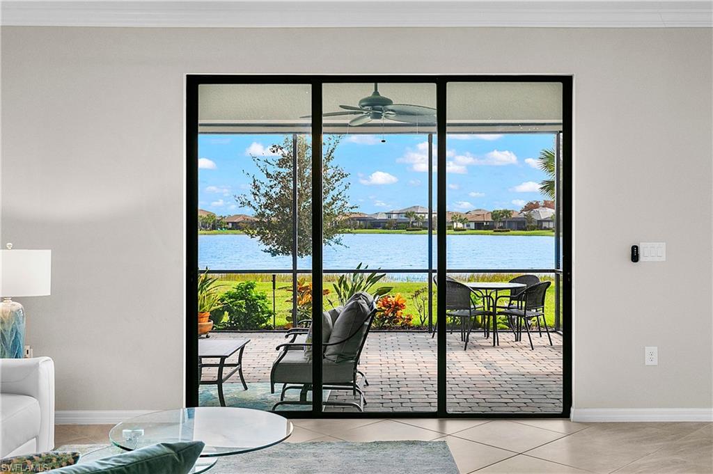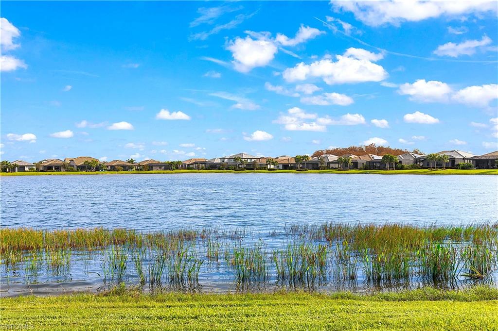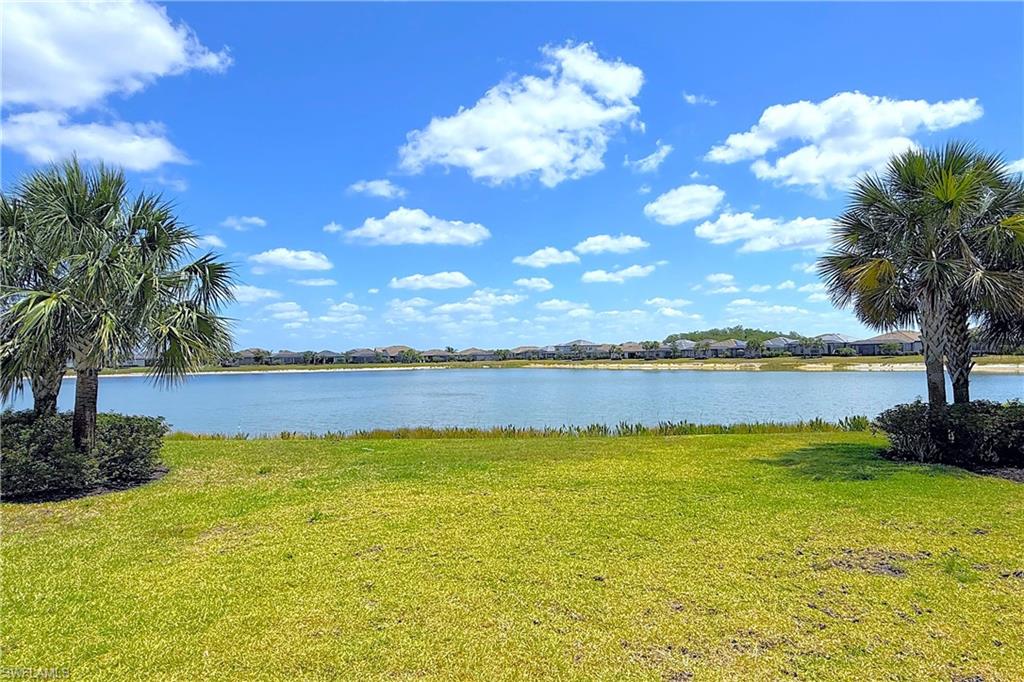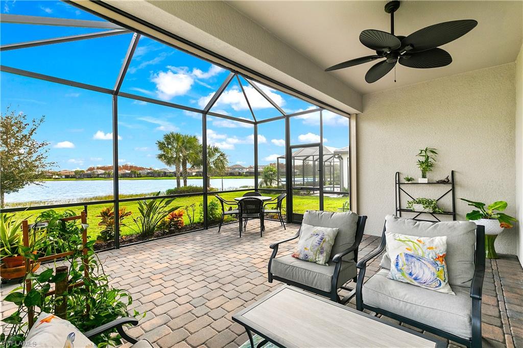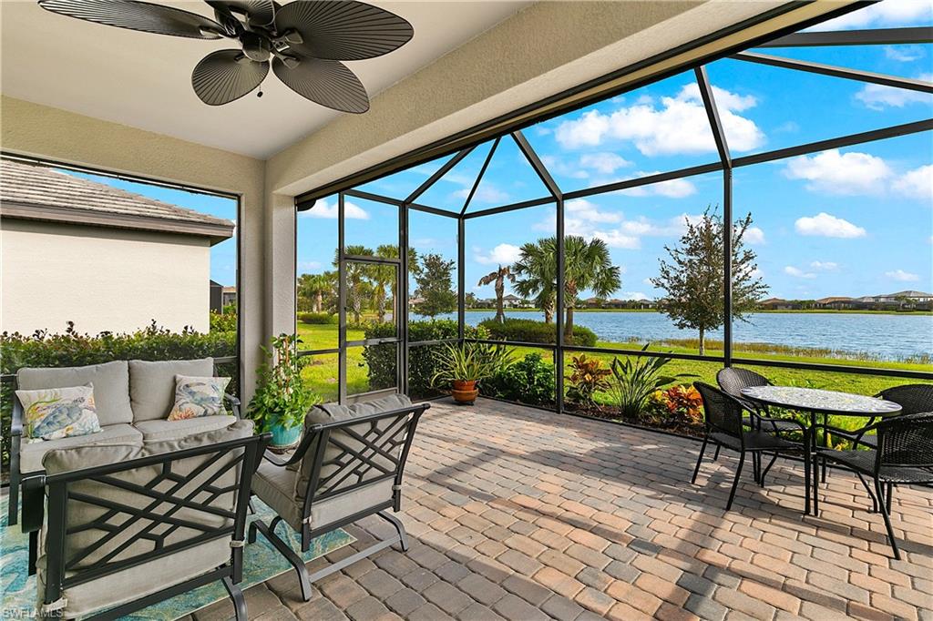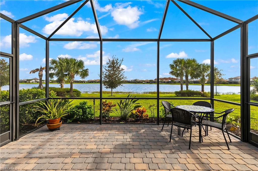 UNDER $500,000 FOR A LAKEFRONT HOME IN THE PLACE AT CORKSCREW?! INCREDIBLE VALUE FOR THIS MOVE-IN READY HOME WITH SPECTACULAR WIDE WATER VIEWS!!! WONDERFUL BUYING OPPORTUNITY IN THE PLACE AT CORKSCREW. This "Venice" residence offers 3 Bedrooms, 3 Full Baths (One guest bedroom has an En-suite bath), 2 Car Garage, 1,852sf living area and an EXTENDED, SCREENED PAVER LANAI. Built in 2020, have peace of mind with ACCORDION SHUTTERS on all windows and ELECTRIC HURRICANE SCREENS on the lanai, along with being located in FLOOD ZONE X (no flood insurance required if financing). Enjoy the true "Old Florida" feel as you approach the covered front porch, accented by a glass insert entry door. The front and side yards just had NEW SOD INSTALLED. This SPLIT BEDROOM LAYOUT home offers privacy for guests, and the secondary baths are outfitted with HEAVY GLASS ENCLOSURES. The heart of the home provides OPEN CONCEPT LIVING for all to enjoy. Open up the sliding glass doors for indoor/outdoor entertaining on the covered lanai with EXTENDED SCREENED PAVERED ENCLOSURE. The extra-deep homesite provides a LARGE BACKYARD that is perfect for the kids and pets to play and there is plenty of room to add a fence beyond the screened cage, if desired, or perhaps your dream pool/spa! Inside you’ll find 21” tile and CROWN MOLDING throughout the main areas, window treatments and WHOLE HOME WATER FILTRATION. The Kitchen showcases Rich Brown cabinetry, Granite Countertops, WALK-IN PANTRY, STAINLESS STEEL APPLIANCES and RO SYSTEM at sink. The Primary Suite features his and her closets (one with BUILT-IN ORGANIZERS) and SPARKLING WATER VIEWS from your bedside. The Primary Bath boasts of dual sinks, an OVERZISED SHOWER and a private water closet. UPGRADED WASHER AND DRYER included. PROPERTY IS HIGH AND DRY AND LOCATED IN FLOOD ZONE X... NO FLOOD INSURANCE REQUIRED! Amenities at The Place include: Resort Pool w/100' Waterslide, Indoor Restaurant, Bourbon Bar, Cafe, Outdoor Bar, Fitness Center, Movement Studio, Tennis, Pickleball, Bocce, Basketball, Playground, Dog Park, Childwatch, Spa Services. For GOLF ENTHUSIASTS, the highly rated Jack Nicklaus designed OLD CORKSCREW GOLF CLUB is open to the public and located directly across the street from the community entrance! NEW PUBLIX GROCERY STORE... JUST 1.4 MILES AWAY... IS NOW OPEN!!! TENANTS INCLUDE DUNKIN DONUTS, UPS STORE, LEGNO ITALIAN RESTAURANT, HAIR & NAIL SALON, HEARTLAND DENTAL, AND MORE!