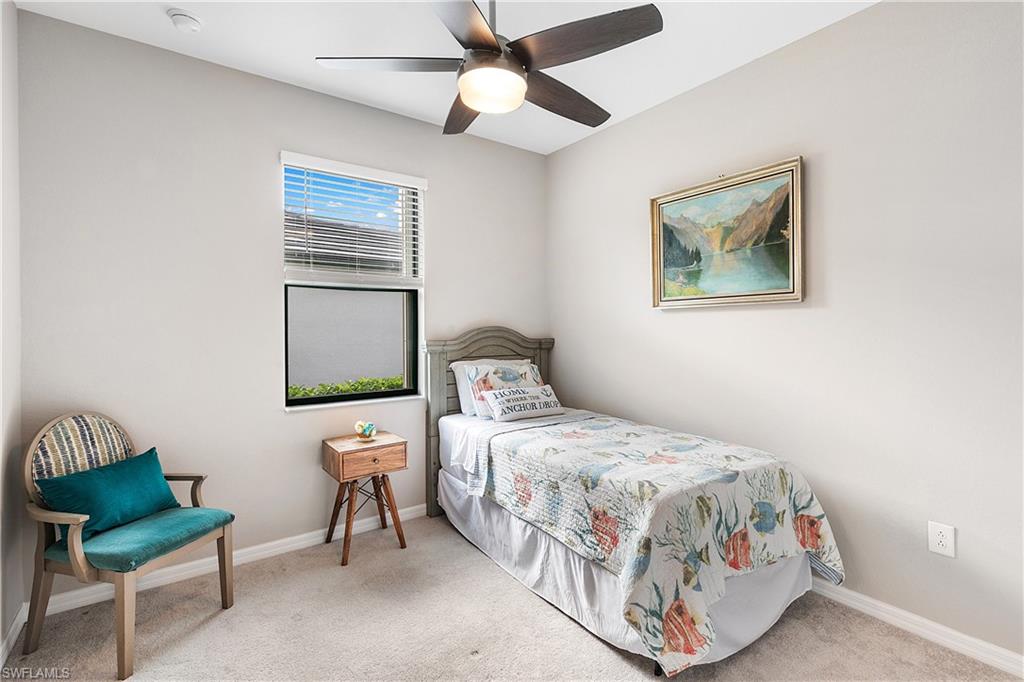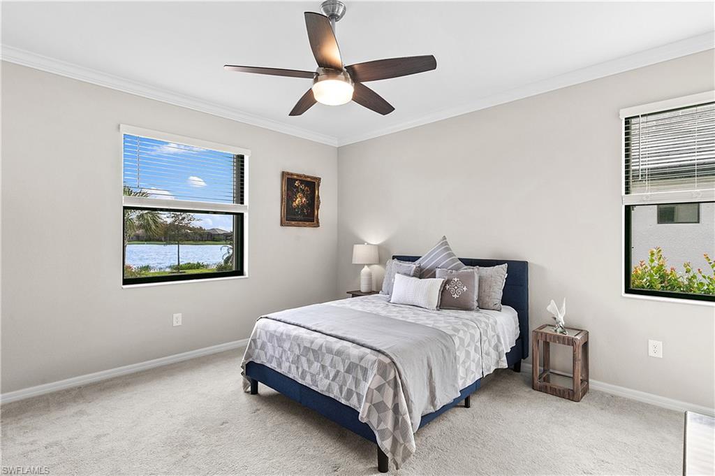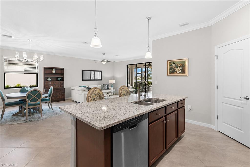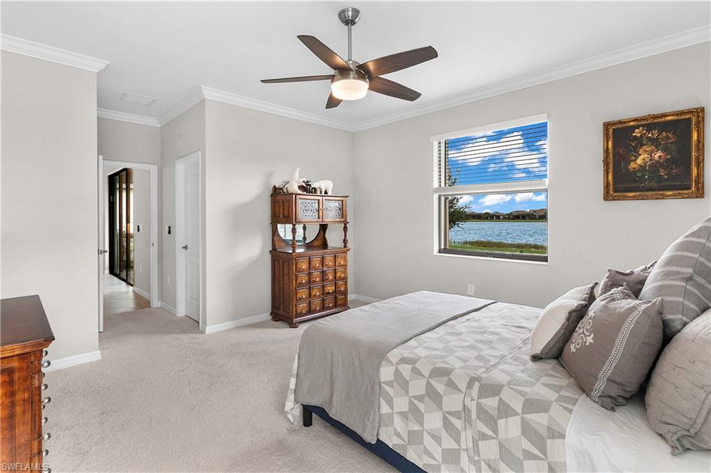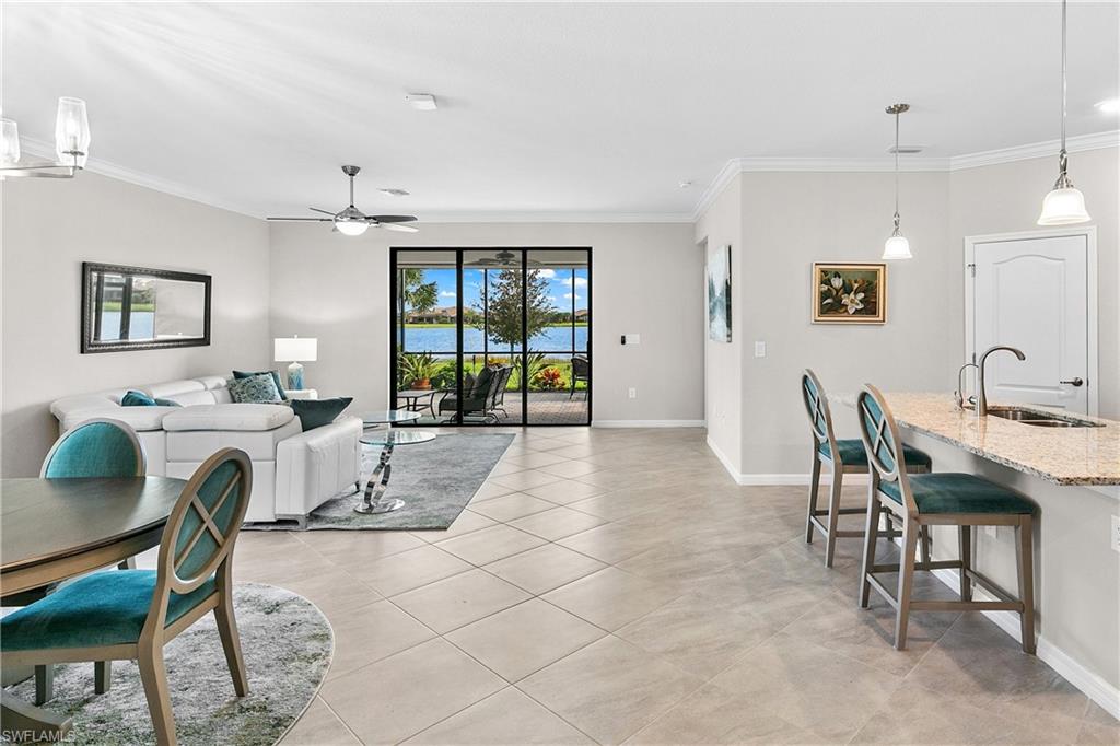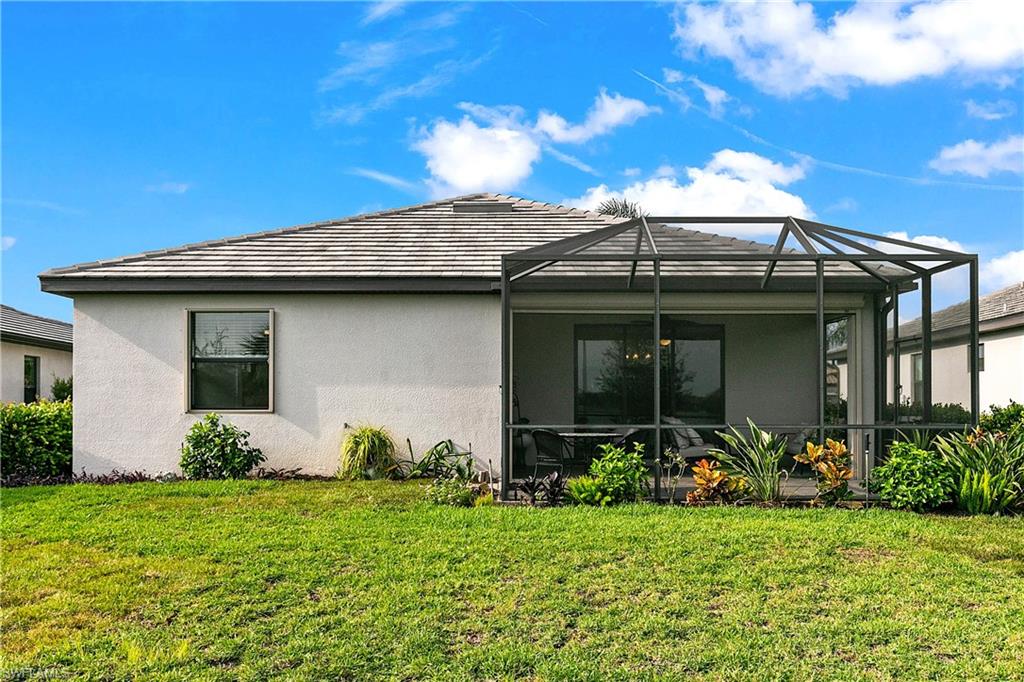 UNDER $500,000 FOR A LAKEFRONT HOME IN THE PLACE AT CORKSCREW?! INCREDIBLE VALUE FOR THIS MOVE-IN READY HOME WITH SPECTACULAR WIDE WATER VIEWS!!! WONDERFUL BUYING OPPORTUNITY IN THE PLACE AT CORKSCREW. This "Venice" residence offers 3 Bedrooms, 3 Full Baths (One guest bedroom has an En-suite bath), 2 Car Garage, 1,852sf living area and an EXTENDED, SCREENED PAVER LANAI. Built in 2020, have peace of mind with ACCORDION SHUTTERS on all windows and ELECTRIC HURRICANE SCREENS on the lanai, along with being located in FLOOD ZONE X (no flood insurance required if financing). Enjoy the true "Old Florida" feel as you approach the covered front porch, accented by a glass insert entry door. The front and side yards just had NEW SOD INSTALLED. This SPLIT BEDROOM LAYOUT home offers privacy for guests, and the secondary baths are outfitted with HEAVY GLASS ENCLOSURES. The heart of the home provides OPEN CONCEPT LIVING for all to enjoy. Open up the sliding glass doors for indoor/outdoor entertaining on the covered lanai with EXTENDED SCREENED PAVERED ENCLOSURE. The extra-deep homesite provides a LARGE BACKYARD that is perfect for the kids and pets to play and there is plenty of room to add a fence beyond the screened cage, if desired, or perhaps your dream pool/spa! Inside you’ll find 21” tile and CROWN MOLDING throughout the main areas, window treatments and WHOLE HOME WATER FILTRATION. The Kitchen showcases Rich Brown cabinetry, Granite Countertops, WALK-IN PANTRY, STAINLESS STEEL APPLIANCES and RO SYSTEM at sink. The Primary Suite features his and her closets (one with BUILT-IN ORGANIZERS) and SPARKLING WATER VIEWS from your bedside. The Primary Bath boasts of dual sinks, an OVERZISED SHOWER and a private water closet. UPGRADED WASHER AND DRYER included. PROPERTY IS HIGH AND DRY AND LOCATED IN FLOOD ZONE X... NO FLOOD INSURANCE REQUIRED! Amenities at The Place include: Resort Pool w/100' Waterslide, Indoor Restaurant, Bourbon Bar, Cafe, Outdoor Bar, Fitness Center, Movement Studio, Tennis, Pickleball, Bocce, Basketball, Playground, Dog Park, Childwatch, Spa Services. For GOLF ENTHUSIASTS, the highly rated Jack Nicklaus designed OLD CORKSCREW GOLF CLUB is open to the public and located directly across the street from the community entrance! NEW PUBLIX GROCERY STORE... JUST 1.4 MILES AWAY... IS NOW OPEN!!! TENANTS INCLUDE DUNKIN DONUTS, UPS STORE, LEGNO ITALIAN RESTAURANT, HAIR & NAIL SALON, HEARTLAND DENTAL, AND MORE!
