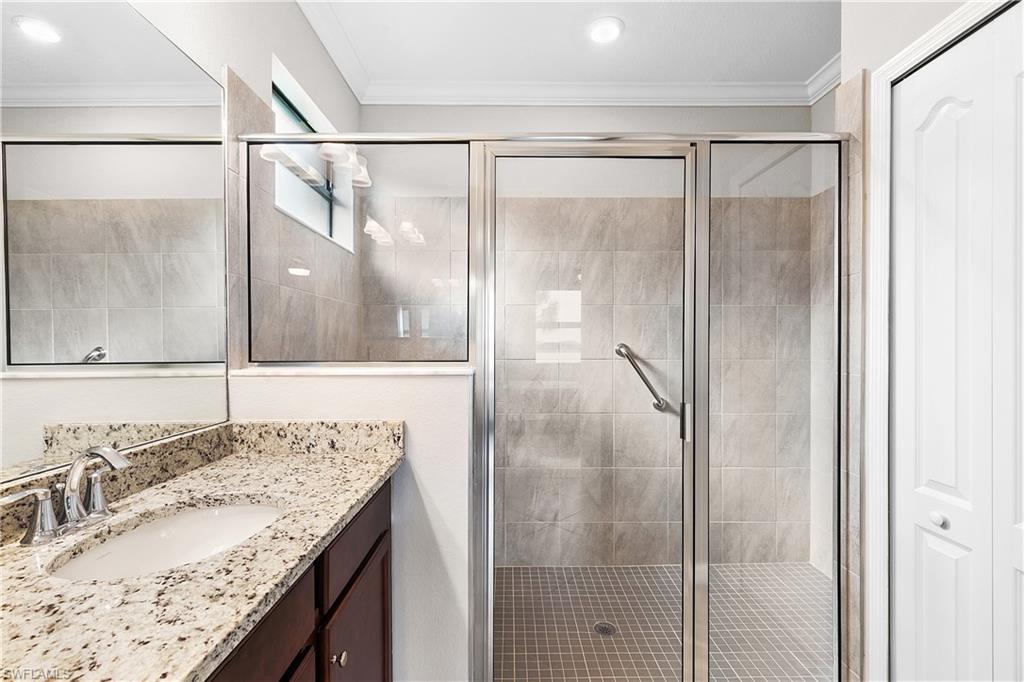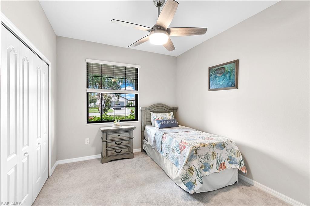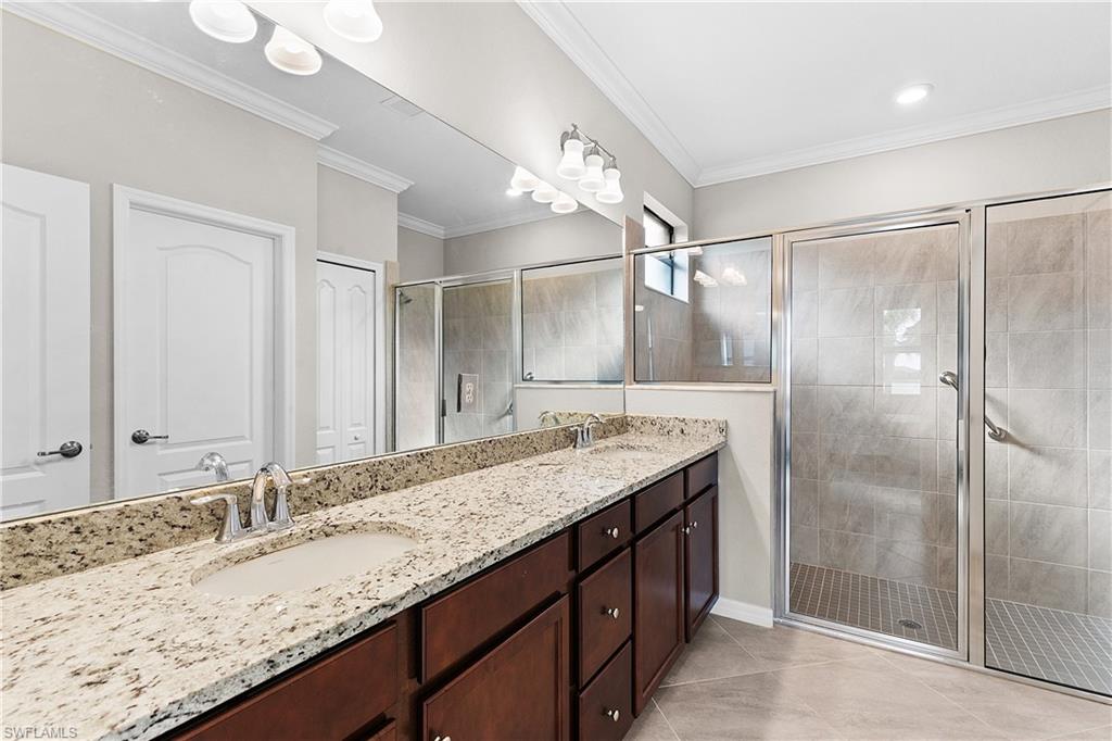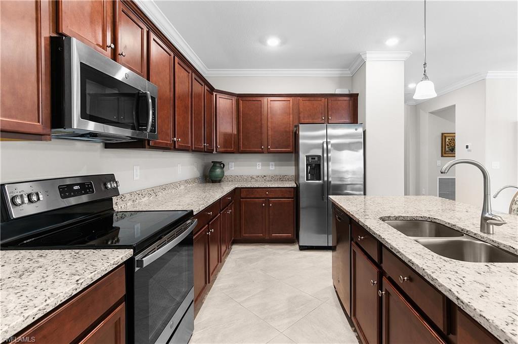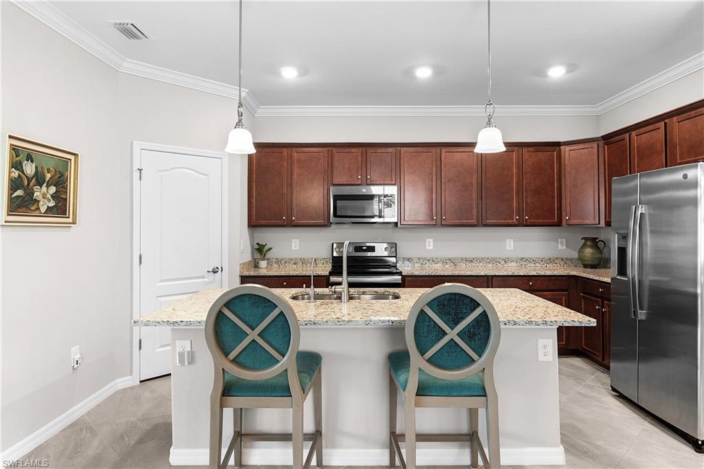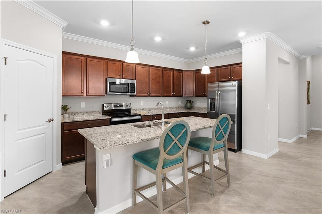 UNDER $500,000 FOR A LAKEFRONT HOME IN THE PLACE AT CORKSCREW?! INCREDIBLE VALUE FOR THIS MOVE-IN READY HOME WITH SPECTACULAR WIDE WATER VIEWS!!! WONDERFUL BUYING OPPORTUNITY IN THE PLACE AT CORKSCREW. This "Venice" residence offers 3 Bedrooms, 3 Full Baths (One guest bedroom has an En-suite bath), 2 Car Garage, 1,852sf living area and an EXTENDED, SCREENED PAVER LANAI. Built in 2020, have peace of mind with ACCORDION SHUTTERS on all windows and ELECTRIC HURRICANE SCREENS on the lanai, along with being located in FLOOD ZONE X (no flood insurance required if financing). Enjoy the true "Old Florida" feel as you approach the covered front porch, accented by a glass insert entry door. The front and side yards just had NEW SOD INSTALLED. This SPLIT BEDROOM LAYOUT home offers privacy for guests, and the secondary baths are outfitted with HEAVY GLASS ENCLOSURES. The heart of the home provides OPEN CONCEPT LIVING for all to enjoy. Open up the sliding glass doors for indoor/outdoor entertaining on the covered lanai with EXTENDED SCREENED PAVERED ENCLOSURE. The extra-deep homesite provides a LARGE BACKYARD that is perfect for the kids and pets to play and there is plenty of room to add a fence beyond the screened cage, if desired, or perhaps your dream pool/spa! Inside you’ll find 21” tile and CROWN MOLDING throughout the main areas, window treatments and WHOLE HOME WATER FILTRATION. The Kitchen showcases Rich Brown cabinetry, Granite Countertops, WALK-IN PANTRY, STAINLESS STEEL APPLIANCES and RO SYSTEM at sink. The Primary Suite features his and her closets (one with BUILT-IN ORGANIZERS) and SPARKLING WATER VIEWS from your bedside. The Primary Bath boasts of dual sinks, an OVERZISED SHOWER and a private water closet. UPGRADED WASHER AND DRYER included. PROPERTY IS HIGH AND DRY AND LOCATED IN FLOOD ZONE X... NO FLOOD INSURANCE REQUIRED! Amenities at The Place include: Resort Pool w/100' Waterslide, Indoor Restaurant, Bourbon Bar, Cafe, Outdoor Bar, Fitness Center, Movement Studio, Tennis, Pickleball, Bocce, Basketball, Playground, Dog Park, Childwatch, Spa Services. For GOLF ENTHUSIASTS, the highly rated Jack Nicklaus designed OLD CORKSCREW GOLF CLUB is open to the public and located directly across the street from the community entrance! NEW PUBLIX GROCERY STORE... JUST 1.4 MILES AWAY... IS NOW OPEN!!! TENANTS INCLUDE DUNKIN DONUTS, UPS STORE, LEGNO ITALIAN RESTAURANT, HAIR & NAIL SALON, HEARTLAND DENTAL, AND MORE!