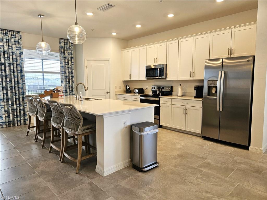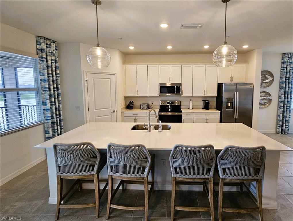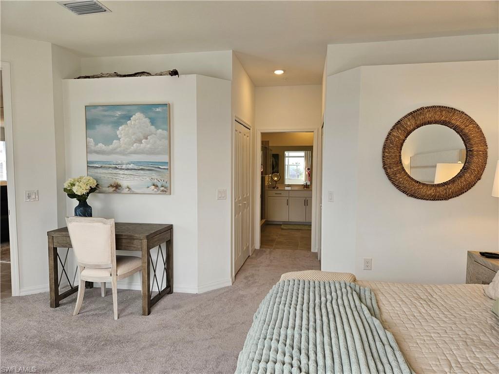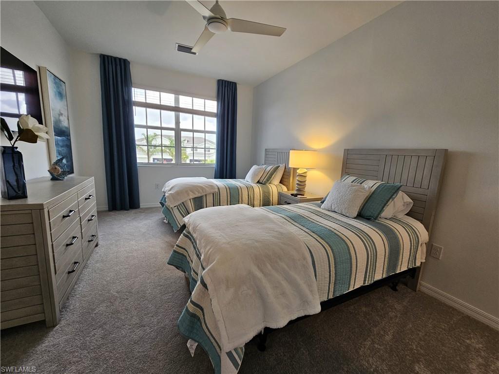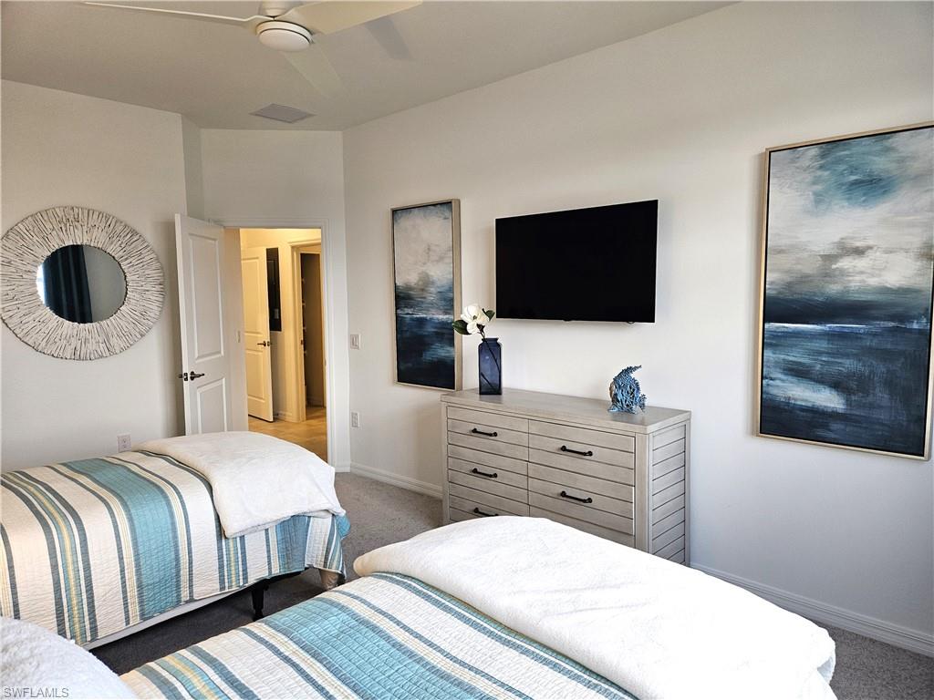 PRICED TO SELL! – TURN KEY! PLUS for the investor season is already booked, instant income! Experience luxury living in this fully furnished, turn-key Bay Creek Coach Home located at The National Golf & Country Club at Ave Maria—now available at an exceptional value. With the builder completely sold out, this is your rare opportunity to own the best deal on the market. Professionally decorated by Baer’s Furniture with over $85,000 in premium furnishings, this meticulously maintained home is truly move-in ready—just bring your clothes and toothbrush. Offering a bundled golf membership, this residence is a perfect blend of comfort, style, and privacy. Thoughtfully designed for both everyday living and effortless entertaining, the open-concept layout features a spacious great room, elegant dining area, and a chef’s kitchen with an oversized island, walk-in pantry, and high-end finishes throughout. Three generously sized bedrooms are split for ideal privacy, making it perfect for hosting guests. Step out onto the expansive screened lanai to enjoy serene lake views—your private retreat awaits. This home offers a two-car garage with an additional bump-out for golf cart parking or extra storage. Designer upgrades abound, including custom cabinetry in the laundry room, decorative ceiling features, glass-enclosed guest shower, motorized sunshades in the living room and primary suite, and refined details such as decorative mirrors, custom draperies, and entryway woodwork with coordinating hooks and mirror. Ample storage is seamlessly integrated throughout the home. As a resident, you'll enjoy a full golf membership granting access to resort-style amenities including an 18-hole championship golf course, luxurious pool with poolside bar and grill, elegant clubhouse with private dining, a full-service restaurant, and a stylish bar. For an active lifestyle, the community also offers tennis, pickleball, bocce ball, a state-of-the-art fitness center, sauna, and a full-service spa. Located within the vibrant and self-sustaining town of Ave Maria, you’ll find everything you need just moments away—including a Publix grocery store, boutique shopping, diverse dining options, beautiful parks, scenic walking trails, and even a water park. The National at Ave Maria ~ Once you get here, you "get it". Welcome home. This home also has a beautiful brand new golf cart and 2 e-bikes for sale, for an additional cost.
