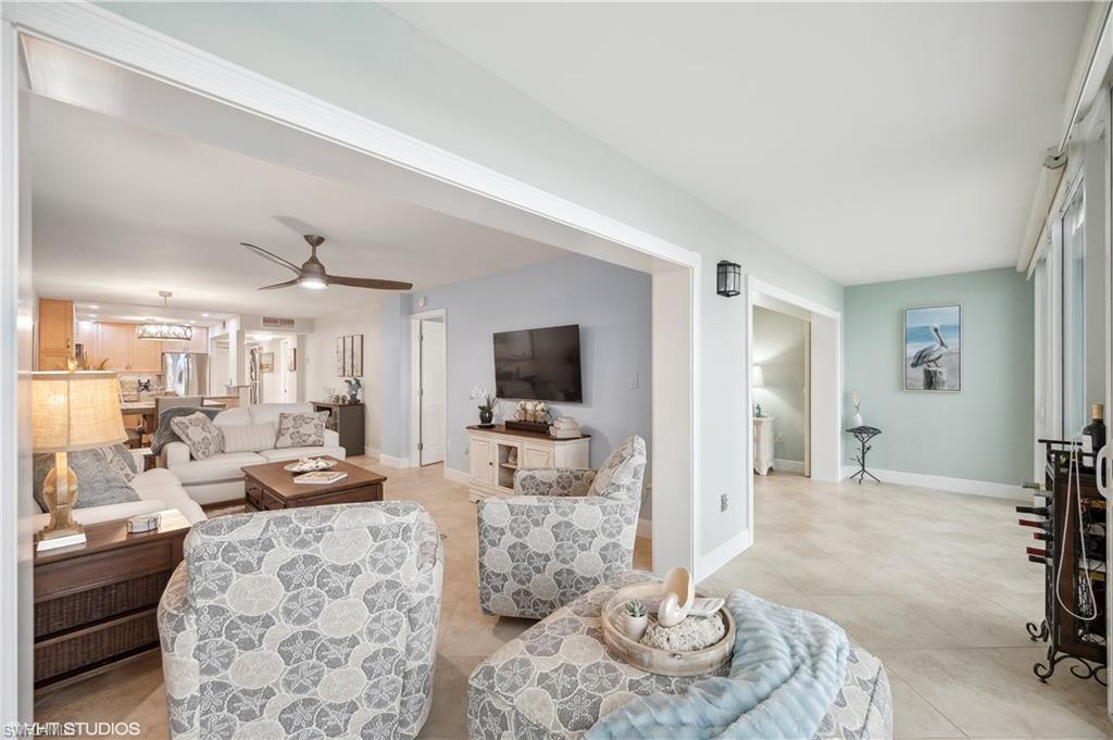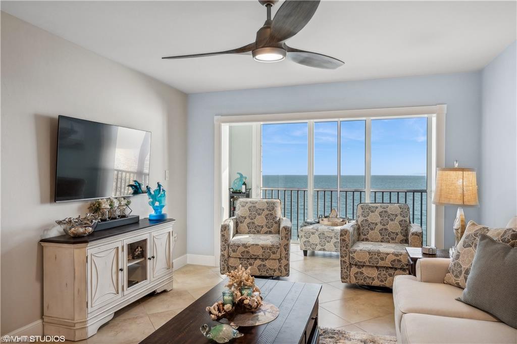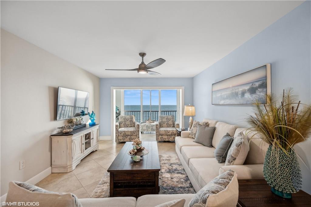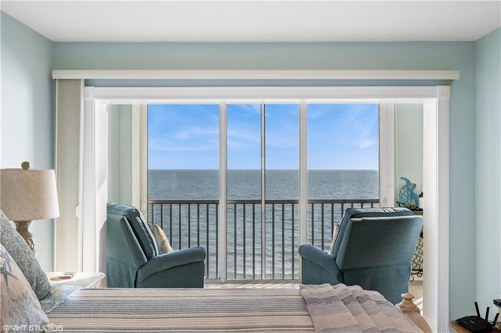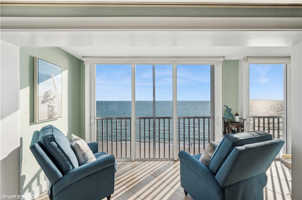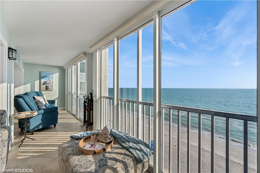 Attractively priced to sell! Paradise is yours here on the pristine Bonita Beach located between Barefoot Beach and Lover's Key. This is a 'middle stack' unit that boasts WIDE PANORAMIC Gulf views from every room! Step outside and take a seat on the beach, or take a beach walk to the end of Hickory Island for breathtaking views and amazing sunsets day after day. This beautifully updated and meticulously maintained beachfront condominium is offered furnished with all high end furnishings - not a thing to do but move in and enjoy. The updated kitchen and baths boast quality and craftmanship. The living area has been expanded to include the balcony and the addition of hurricane impact sliders which open up to the ocean breeze! No 'popcorn ceilings' here - renovated ceilings with custom recessed lighting. Enjoying the endless Gulf views and sunsets is even more outstanding with the main living and primary bedroom expansion under air. New AC Nov 2024. The Casa Bonita I amenities are currently under going renovations and will soon be newly completed and magnificent! There is a designated covered parking spot, private storage area, large patio area and newly renovated community room conveniently located next to the pool area and beach. This is an incredible opportunity to own a 'move in and enjoy' beachfront property that is priced well below market value, and also presents a great investment opportunity as well if looking to lease as a monthly vacation destination. Current pricing offered is a 'summer special' - the opportunity is NOW!