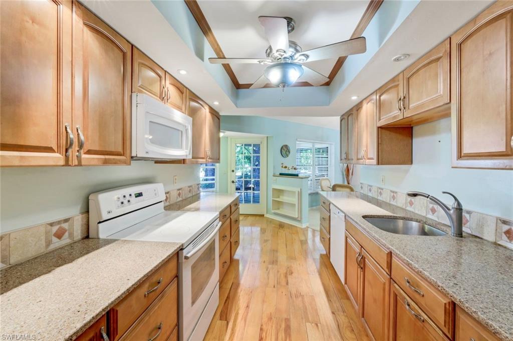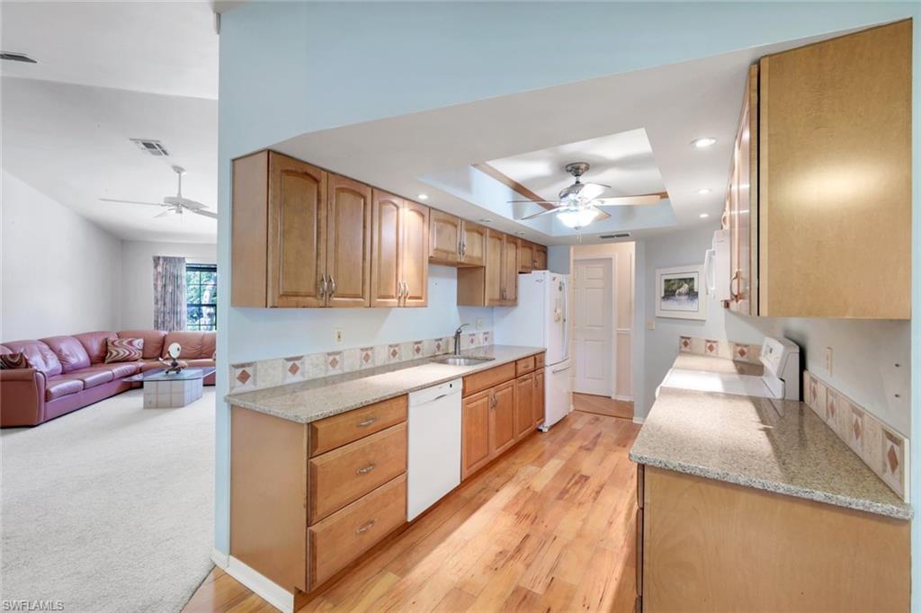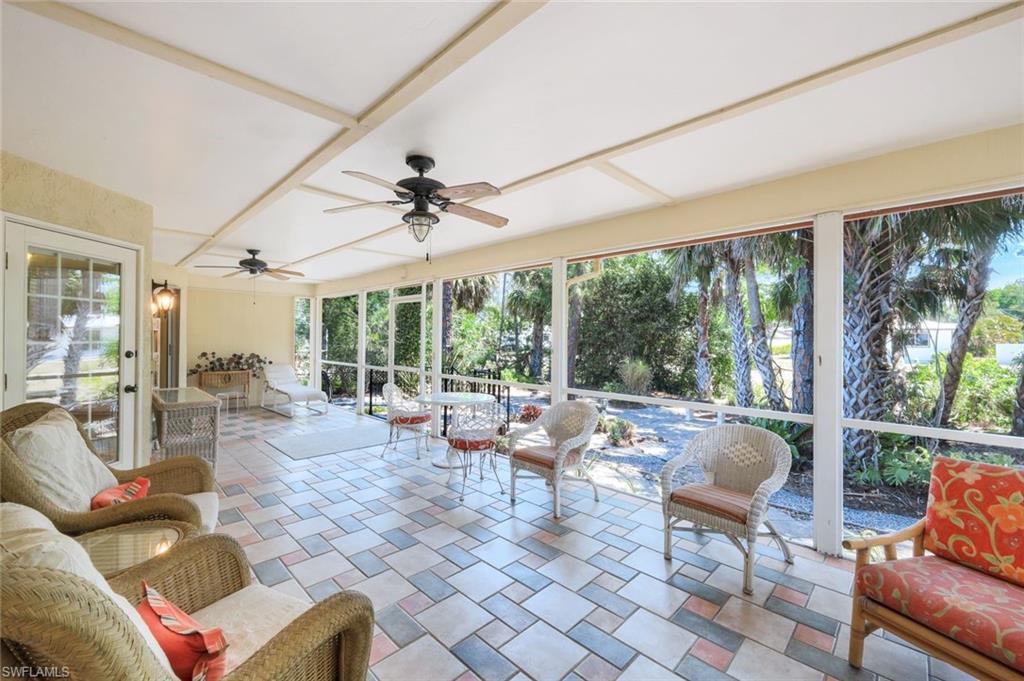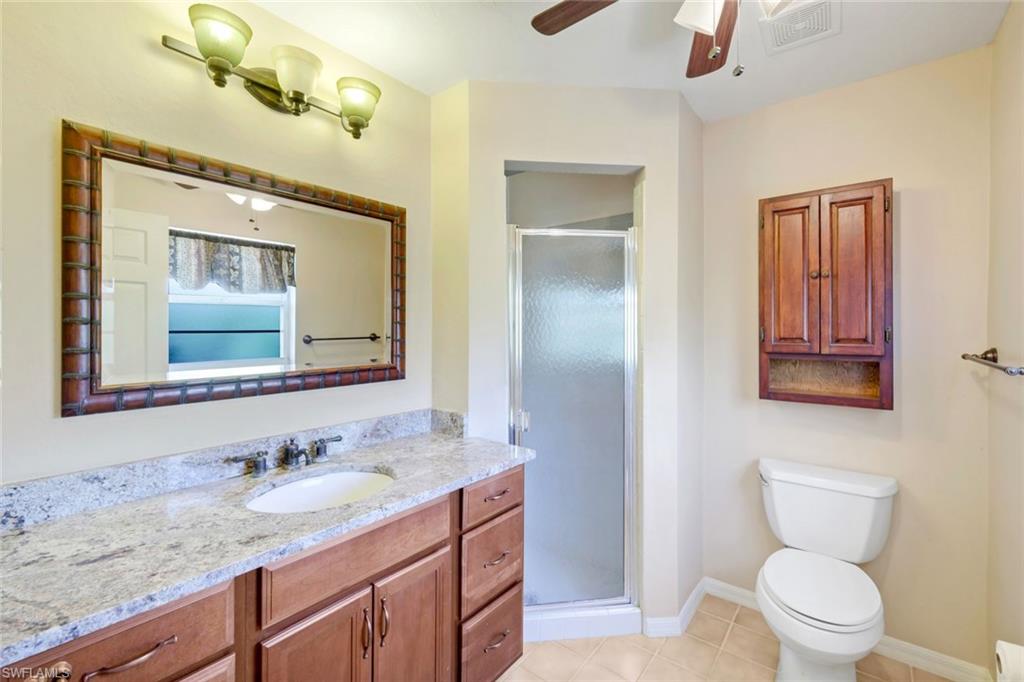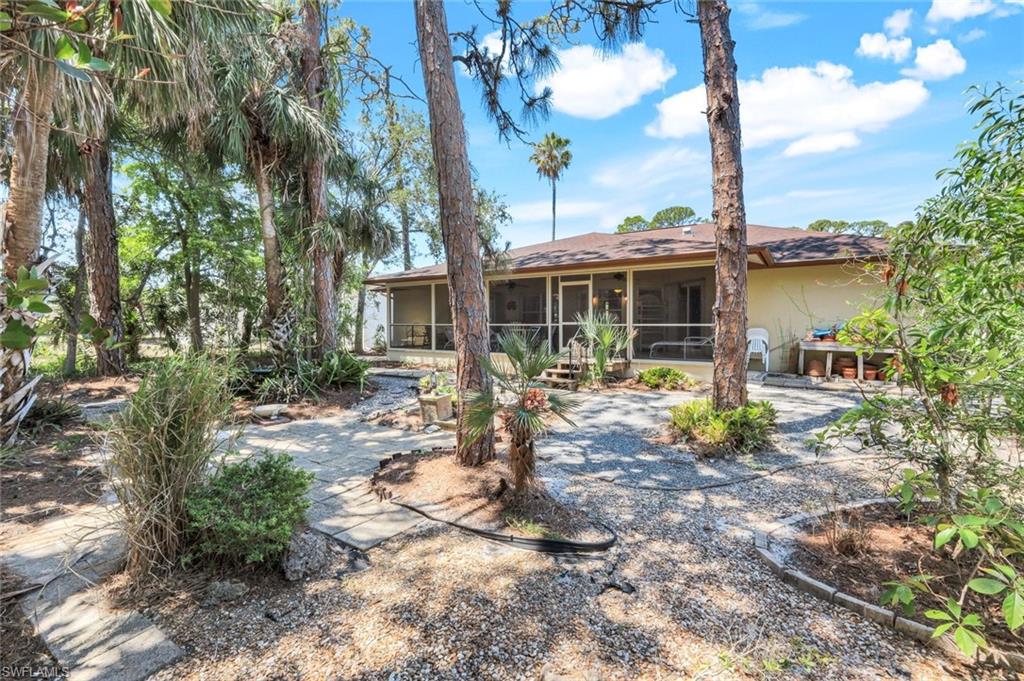 Here's a fantastic opportunity in Bonita Springs without HOA fees or deed restrictions. This split design floor plan offers a spacious living area with cathedral ceiling, huge comfortable lanai overlooks the maintenance free southwest style landscaped yard. The kitchen and master bath has newer Kraftmaid cabinets with granite counter-tops. The roof was replaced in 2018 and water heater in 2023 The home sets up high and did not flood during hurricane Ian.