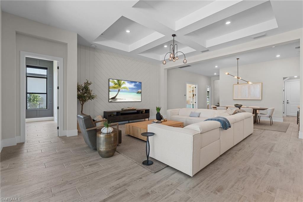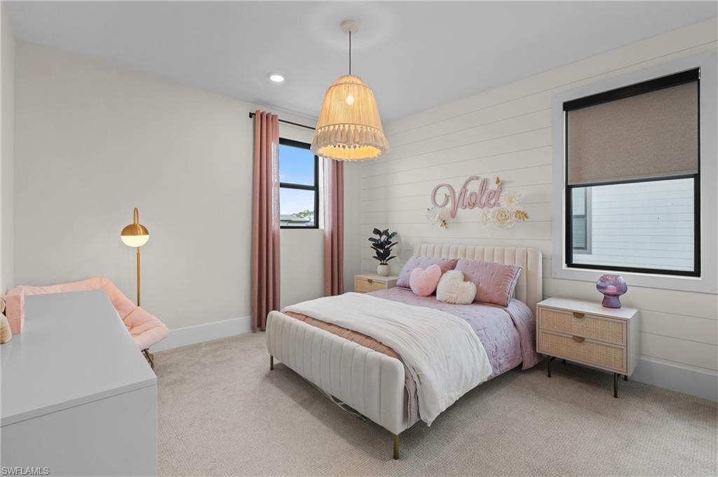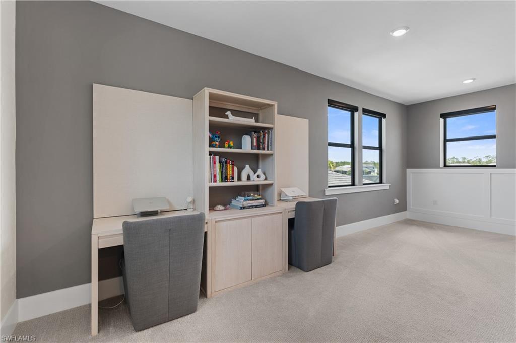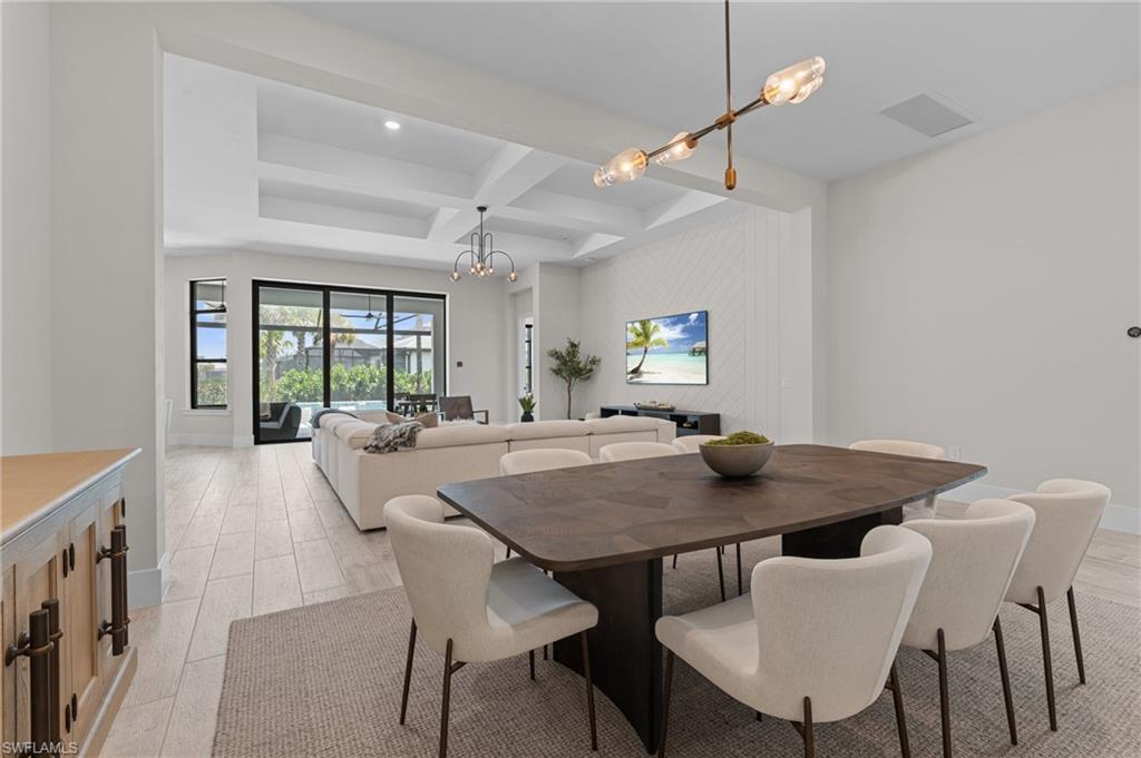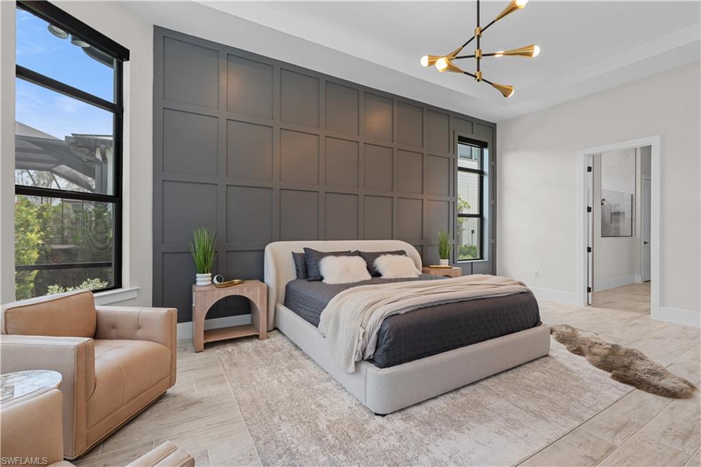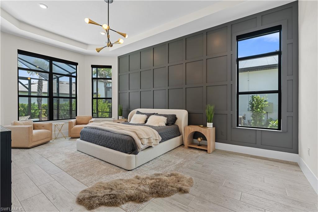 Coastal Elegance in Exclusive Ardena Step into refined coastal luxury with this pristine, 2023-built estate home in Ardena, an exclusive, low-density gated enclave in Naples. Set on a premium lot with panoramic pond views, this 4,020+ sq. ft. Layton model offers 4 bedrooms, 4.5 baths, a private custom office/den, and a spacious loft—all thoughtfully designed for elevated living. The modern coastal façade features a clay tile roof, gray stucco, and Bahama shutters. Inside, designer touches abound, including custom board and batten walls in the primary suite, guest bedroom, and loft, as well as a custom shiplap wall in the upstairs retreat. The gourmet kitchen is a showpiece, with quartz countertops, a 48” GE Monogram refrigerator, white shaker cabinetry, an expansive island with extra storage, KitchenAid appliances, gas cooktop, wall oven, and striking gold hardware. A large walk-in pantry, breakfast eat-in area, and custom lighting complete the space. The open-concept layout flows effortlessly into the great room, showcasing porcelain floors, coffered ceilings, and tranquil pond views. The first-floor primary suite is a serene haven with tray ceilings, a bay window, a walk-in oversized frameless porcelain-tiled shower, and a custom walk-in closet. Two expansive ensuite guest suites feature spa-inspired, curbless walk-in showers, blending sleek design with elevated comfort. A custom-designed office or flexible bonus room completes the first floor, offering a refined space for work, relaxation, or personalized living. Upstairs, a fourth guest suite with private bath and an open-concept loft/second family room offers flexible, private living space. Step outside to one of the largest screened-in lanais in Ardena, finished in Italian leathered marble tile. This expansive outdoor oasis features a saltwater pool with waterfall, 8-person spa, and a roughed-in outdoor kitchen with a large, covered dining and living area—perfect for alfresco entertaining. A separate pool bath with storage adds convenience. Additional luxuries include: 3-car garage with epoxy-finished floors Laundry room with new LG washer and dryer Smart home technology Impact-resistant windows Tankless water heater Whole-house water filtration system and reverse osmosis Cat6 wiring throughout Built-in speakers in the living room and lanai Custom roller shades in the bedrooms Custom solar shades in the den and loft 8-foot solid-core doors 10-year structural warranty Ardena offers low HOA fees, no CDD, and a prime location near A-rated schools, I-75, and Naples' premier shopping, dining, and white-sand beaches.