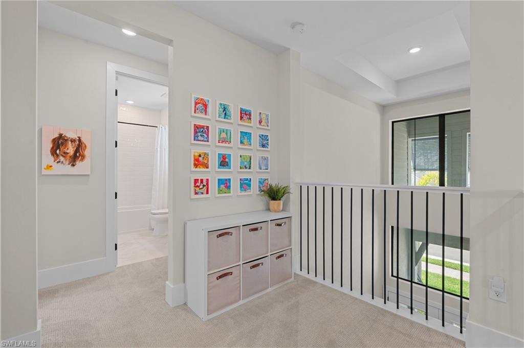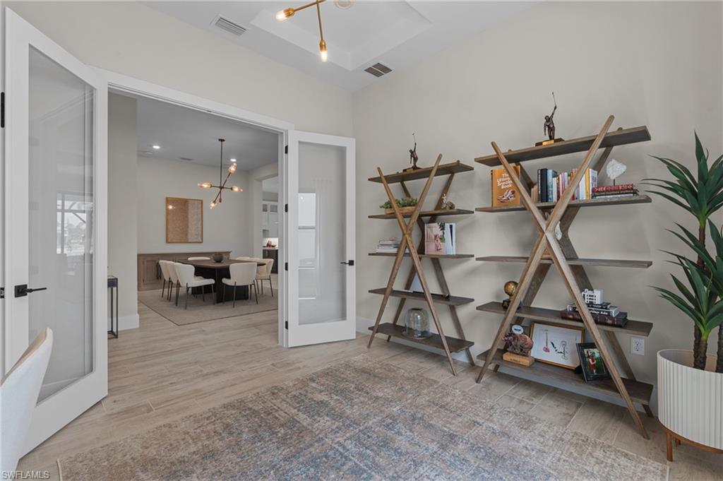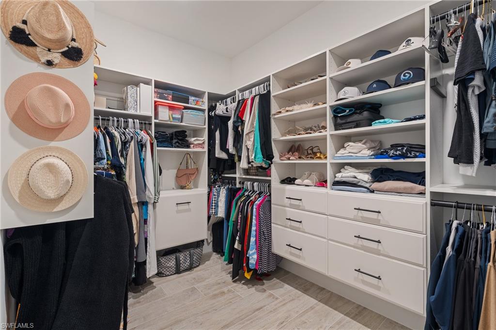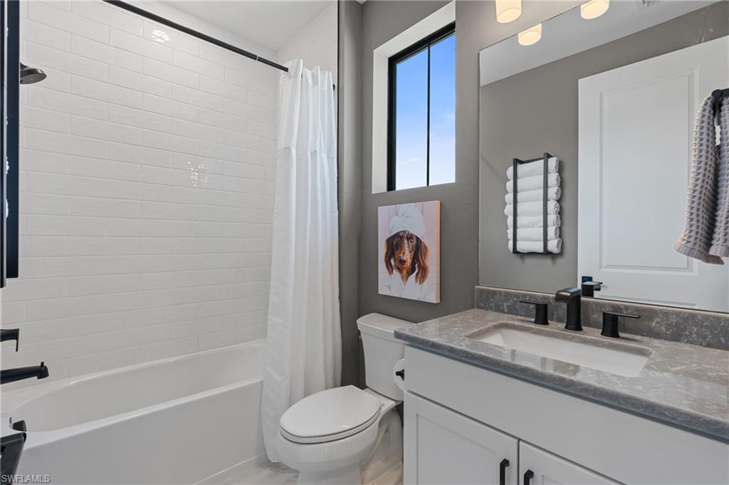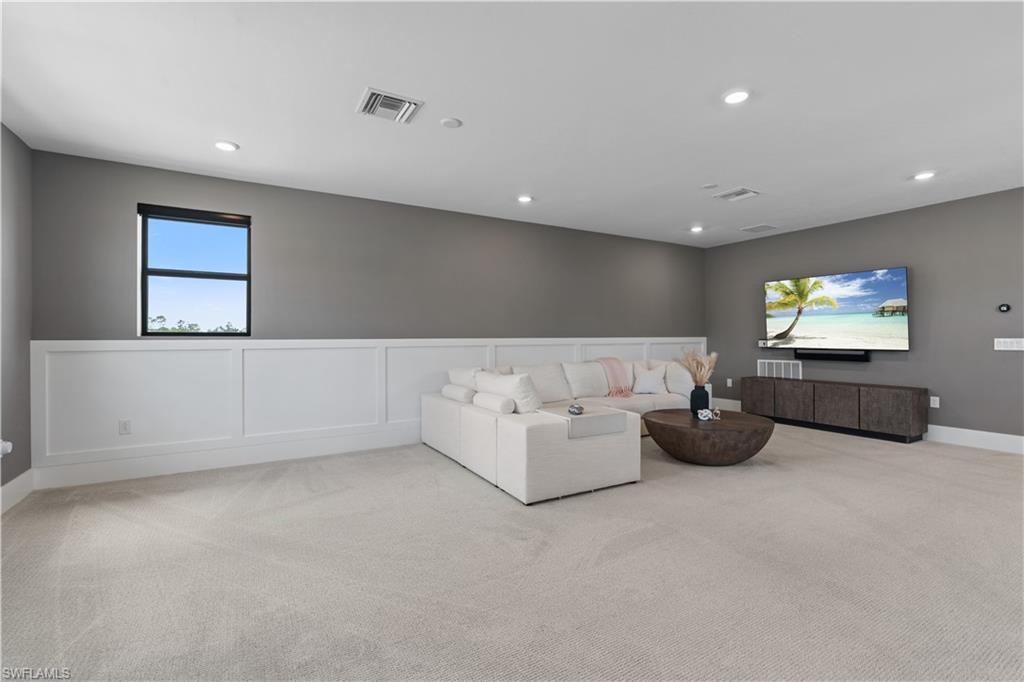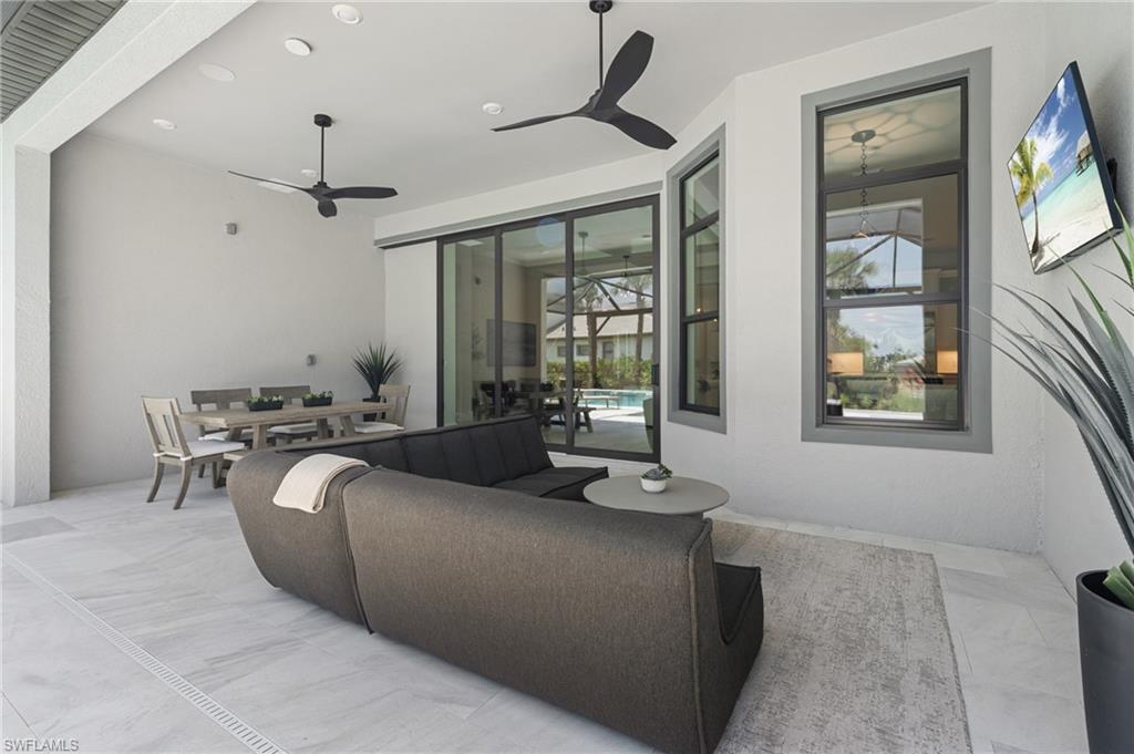Coastal Elegance in Exclusive Ardena Step into refined coastal luxury with this pristine, 2023-built estate home in Ardena, an exclusive, low-density gated enclave in Naples. Set on a premium lot with panoramic pond views, this 4,020+ sq. ft. Layton model offers 4 bedrooms, 4.5 baths, a private custom office/den, and a spacious loft—all thoughtfully designed for elevated living. The modern coastal façade features a clay tile roof, gray stucco, and Bahama shutters. Inside, designer touches abound, including custom board and batten walls in the primary suite, guest bedroom, and loft, as well as a custom shiplap wall in the upstairs retreat. The gourmet kitchen is a showpiece, with quartz countertops, a 48” GE Monogram refrigerator, white shaker cabinetry, an expansive island with extra storage, KitchenAid appliances, gas cooktop, wall oven, and striking gold hardware. A large walk-in pantry, breakfast eat-in area, and custom lighting complete the space. The open-concept layout flows effortlessly into the great room, showcasing porcelain floors, coffered ceilings, and tranquil pond views. The first-floor primary suite is a serene haven with tray ceilings, a bay window, a walk-in oversized frameless porcelain-tiled shower, and a custom walk-in closet. Two expansive ensuite guest suites feature spa-inspired, curbless walk-in showers, blending sleek design with elevated comfort. A custom-designed office or flexible bonus room completes the first floor, offering a refined space for work, relaxation, or personalized living. Upstairs, a fourth guest suite with private bath and an open-concept loft/second family room offers flexible, private living space. Step outside to one of the largest screened-in lanais in Ardena, finished in Italian leathered marble tile. This expansive outdoor oasis features a saltwater pool with waterfall, 8-person spa, and a roughed-in outdoor kitchen with a large, covered dining and living area—perfect for alfresco entertaining. A separate pool bath with storage adds convenience. Additional luxuries include: 3-car garage with epoxy-finished floors Laundry room with new LG washer and dryer Smart home technology Impact-resistant windows Tankless water heater Whole-house water filtration system and reverse osmosis Cat6 wiring throughout Built-in speakers in the living room and lanai Custom roller shades in the bedrooms Custom solar shades in the den and loft 8-foot solid-core doors 10-year structural warranty Ardena offers low HOA fees, no CDD, and a prime location near A-rated schools, I-75, and Naples' premier shopping, dining, and white-sand beaches.