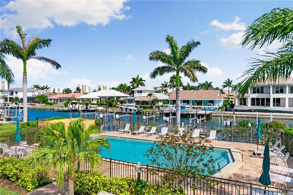 Looking to find a home where you can keep and launch your boat without worry? Vantage Point has you covered! This second floor 2 bedroom, 2 bathroom condo provides boaters with a sensational opportunity, as the unit comes with a deeded boat dock (dock #19) in water directly accessing the Gulf; no bridges! True to the namesake, the condo boasts sensational advantages with natural light and views, including end unit side windows and a screened lanai overlooking the pool and one of the Island's iconic canals. Unit benefits from impact sliders and windows, protecting your paradise. Tile in the living areas and lanai, carpet in the bedrooms. Beginning this summer, construction will start on a BRAND NEW seawall and new extended docks that will accommodate a 30 foot boat. Washer and dryer in unit. Other amenities include heated pool, social room, and picnic area with BBQ grill. This tranquil south end location encapsulates the allure of the Island...boating, beach, and tranquility.
