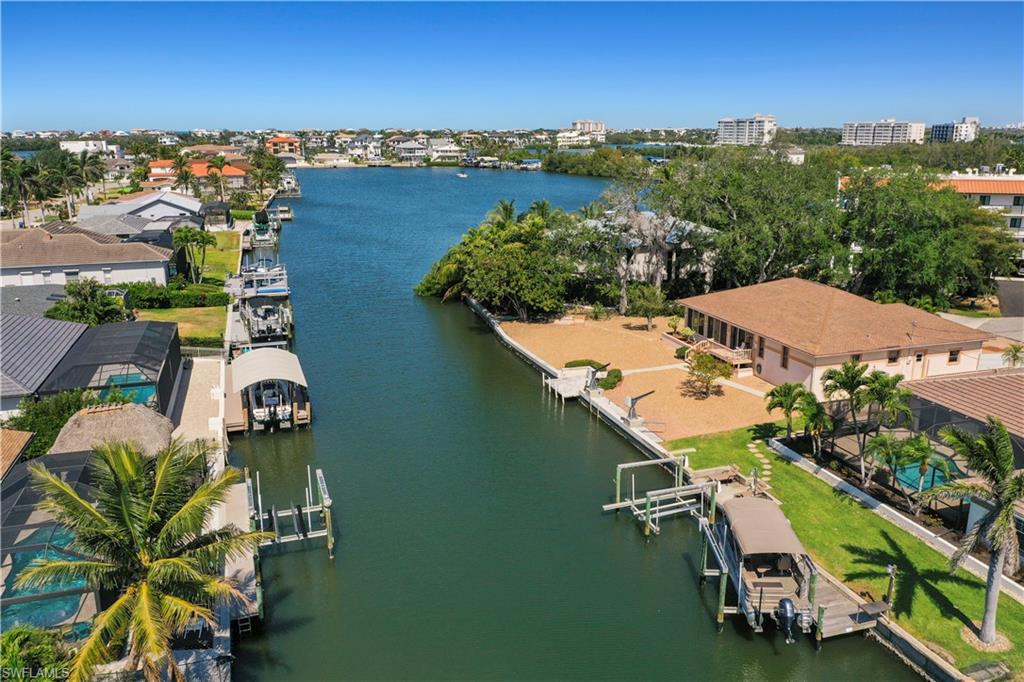 Calling all boaters looking for direct Gulf access with no bridges! Located in Collier County and just 15 minutes by boat to the Gulf. Expansive premier waterfrontage of 136 feet and close to the bay. Deep, wide canal for larger vessels. 4000 lb. davits. No HOA fees. Bike to Barefoot Beach, just 1.5 miles away. Enjoy entertaining on the huge lanai or sit in the sun on the exterior deck overlooking the water. Bring your friends and family and fish from the oversized concrete dock. Pristine and maintenance-free yard. Warm and sunny southern exposure. Step inside this elevated home and experience a freshly painted, bright, open floor plan: a spacious great room, dining area, and kitchen. Furnished. The kitchen cabinets and appliances are only 2 years old. The owner's suite is very private, has a huge closet, and sliding glass doors allowing access to the lanai and backyard. The guest bedrooms are separated from the Owners' suite, ensuring peace. There is plenty of room for a pool. A unique opportunity to turn the “salon” and ½ bath area into another private suite or office. Spacious storage area. Priced well below recent appraisal, lowest price per sq. ft., and the best deal on an oversized lot in all Little Hickory Shores and Conners. Walk to over a dozen nearby restaurants. Don’t forget, Collier County homeowners get a free beach sticker. Little Hickory Shores residents may also join the boat ramp located on 3rd St. for only $200/year. Check out the community clubhouse, where there are plenty of year-round activities such as movie nights, potlucks, book club, dances, dinners, children’s events, fundraisers, and the newly formed “Bonita Well,” which adds even more to the calendar.