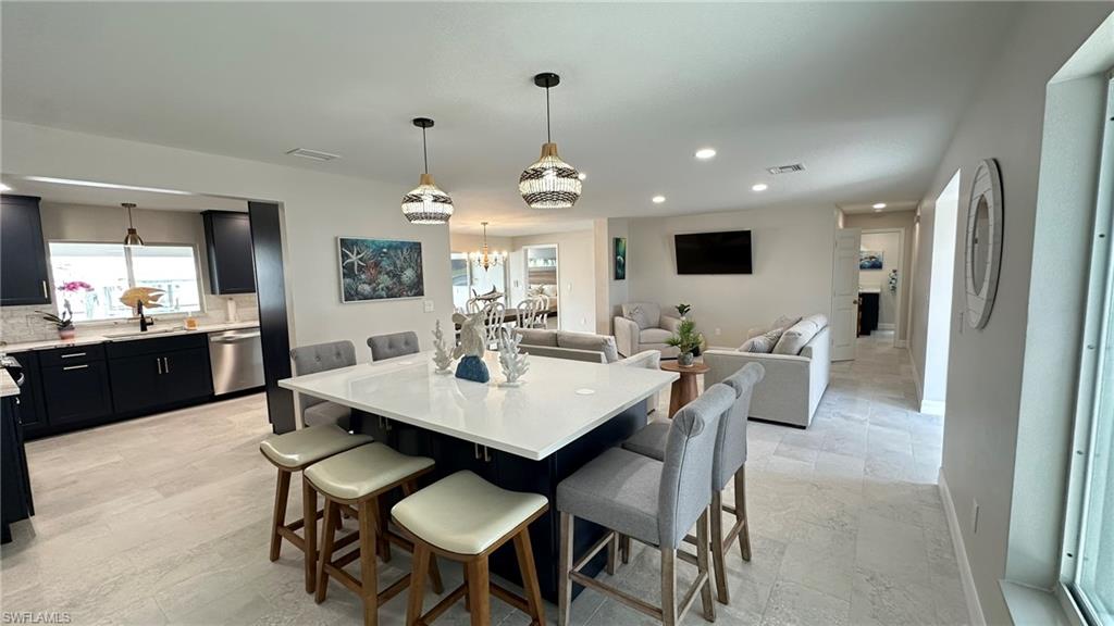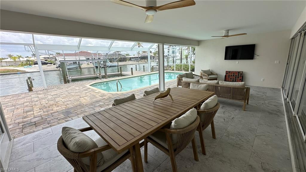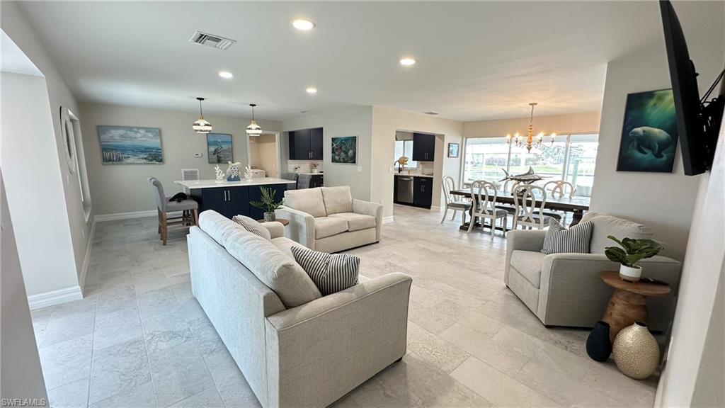 I'm excited to share a brand-new listing — a stunning four-bedroom, three-bath home designed for both relaxation and entertaining, right here on a beautiful canal with direct access to the Caloosahatchee River. From the moment you step inside, you're greeted by an open great room, a smart split-bedroom layout, and immediate views of the sparkling vanishing-edge pool — a true showpiece, finished in luxurious PebbleTec and perfectly positioned just steps from your private boat dock. Imagine being on the river in just 10 minutes via Whiskey Creek. This home has thoughtful details throughout — elegant lighting, a gas-powered jacuzzi and pool heater, and wooden French doors that open to a spacious lanai. At the heart of the home is a sleek, Scandinavian-themed stainless-steel kitchen — a minimalist design that blends beauty with function, ideal for both everyday living and elevated entertaining. Outside, a full outdoor stainless-steel kitchen invites unforgettable evenings with friends and neighbors. There’s even an in-pool sun shelf with low-slung deck chairs — perfect for lounging with your feet in the water while soaking up the Florida sunshine. With a three-car garage, four spacious bedrooms, and timeless finishes, this property is both functional and fabulous. It's not just a home — it's an escape from the everyday. Let me show you what makes this place so special. You truly walk out of the real world and into something exceptional.
