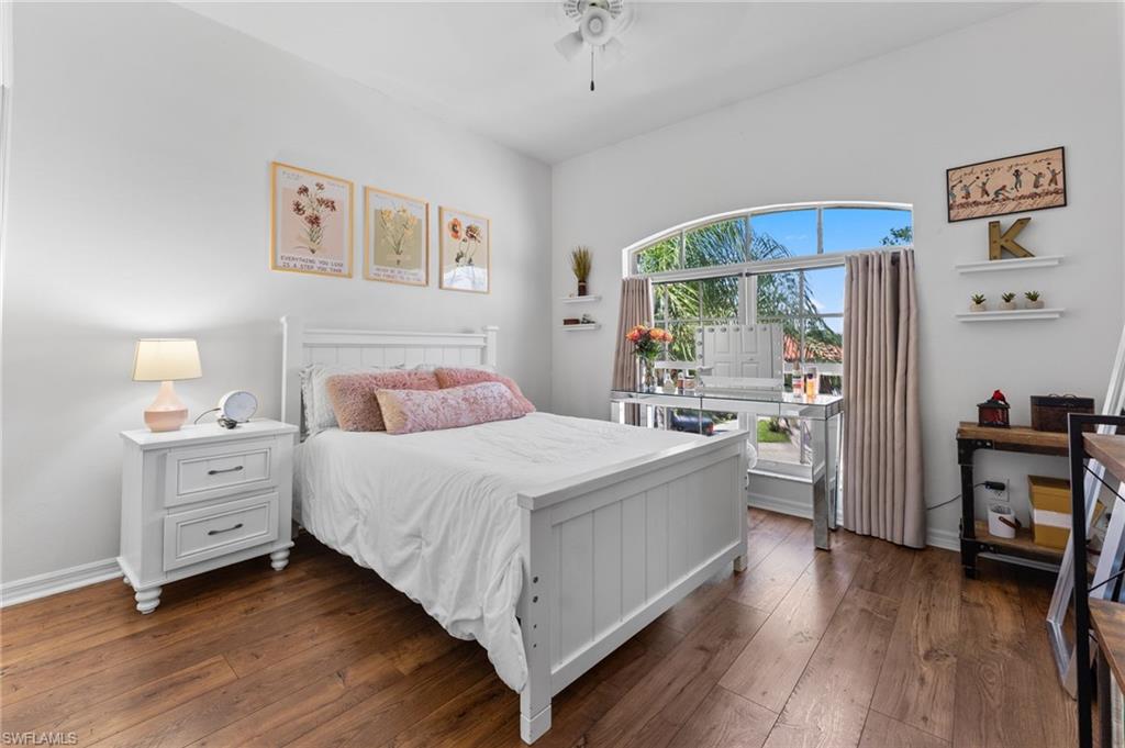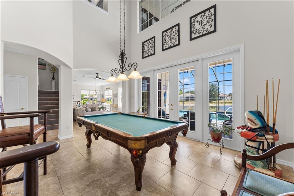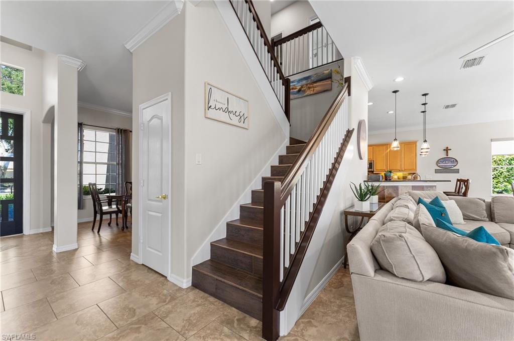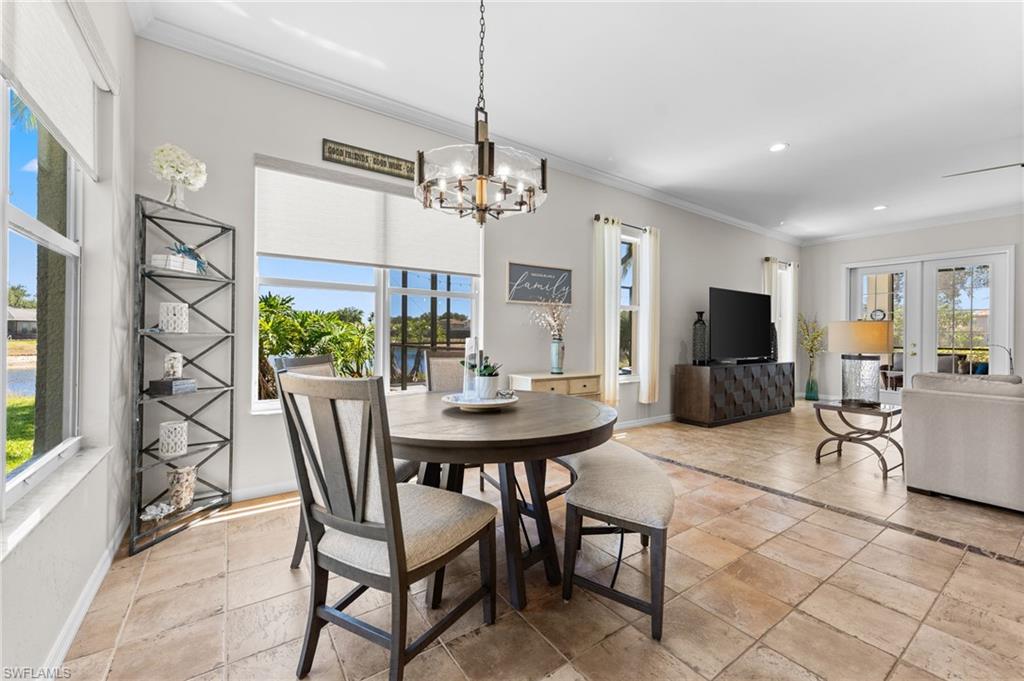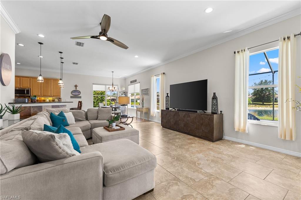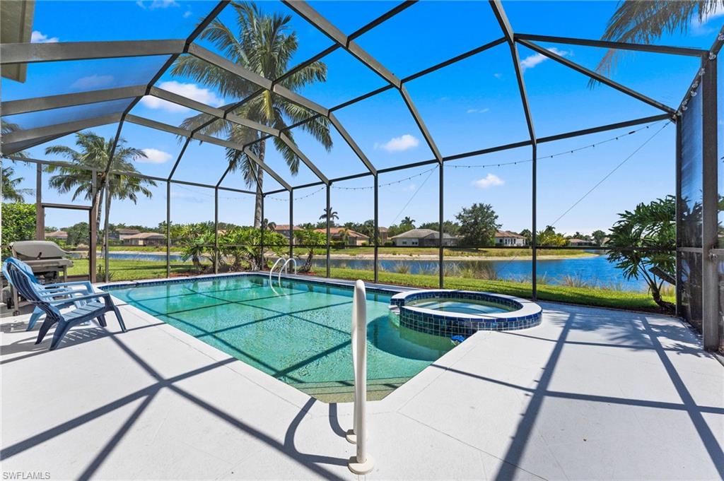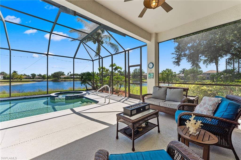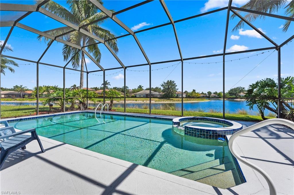 Welcome to one of Naples’ most sought-after residential communities. Perfectly situated at the end of a quiet cul-de-sac on a premium, pie-shaped pond lot, this two-story residence offers 3,713 square feet of beautifully designed living space, where sophistication meets comfort in a setting of rare tranquility and privacy. From the moment you arrive, the freshly painted exterior, lush landscaping, and elegant architecture create a warm and welcoming first impression. This home has been meticulously maintained and thoughtfully upgraded, showcasing true pride of ownership. Step inside to discover a spacious, open floor plan filled with natural light. At the heart of the home lies a chef-inspired kitchen with a large center island, stainless steel appliances, granite countertops, abundant cabinetry, and an oversized walk-in pantry. The kitchen flows seamlessly into the breakfast area and family room, offering the perfect space for casual meals or relaxed gatherings. Large windows frame sweeping views of the tranquil pond, creating an ideal environment for both everyday living and stylish entertaining. The main floor also features a formal dining room for intimate gatherings and a versatile den ideal for a home office, library, or creative space. Upstairs, a spacious bonus room offers flexibility as a media room, home gym, or playroom, with a Murphy bed for added functionality. The luxurious primary suite is a retreat, complete with a private screened balcony overlooking the pool and water views. The en-suite bathroom features dual vanities, a soaking tub, a separate shower, and a large walk-in closet. All full bathrooms have been beautifully updated with porcelain tile, new vanities, quartz countertops, lighting, and modern fixtures, creating a spa-like atmosphere throughout. The expansive screened lanai offers a resort-style pool and spa surrounded by lush landscaping for maximum privacy. Updated pool equipment adds peace of mind, making it easy to relax, entertain, or dine al fresco in your private backyard oasis. Three additional bedrooms and updated full baths offer comfort for guests or family. The garage provides generous storage space, and the seller is installing a Class 2 electric vehicle charger for added convenience. Located in a top-rated school district and adjacent to Oak Ridge Middle via private community access, residents enjoy amenities like a clubhouse, fitness center, and resort-style pool—all with low HOA fees. Don’t miss this rare opportunity to own one of Indigo Lakes' finest homes, blending timeless design, modern upgrades, and a stunning pond setting.