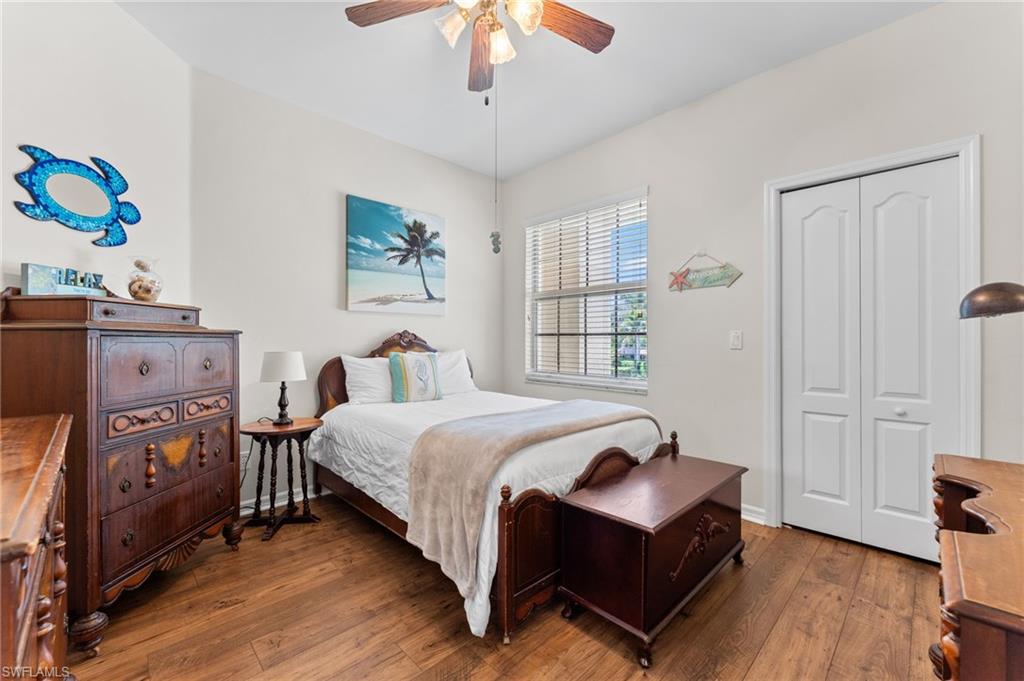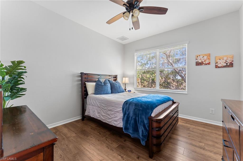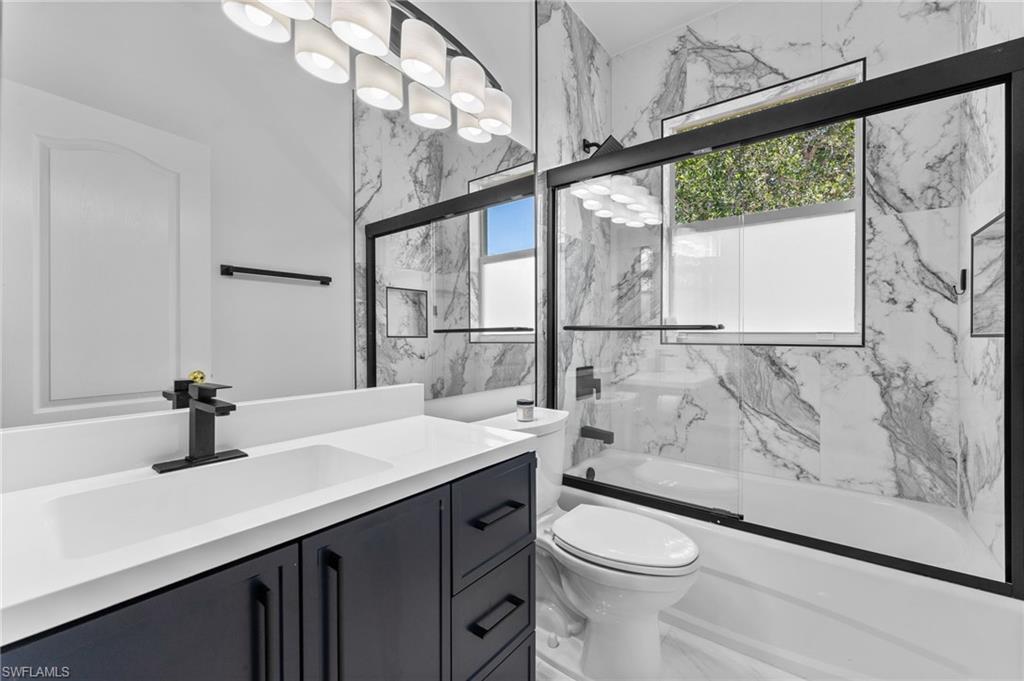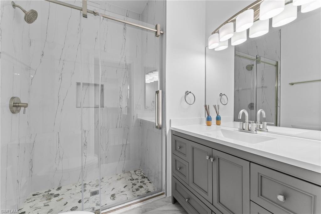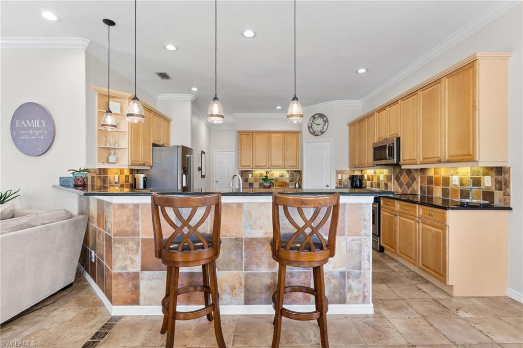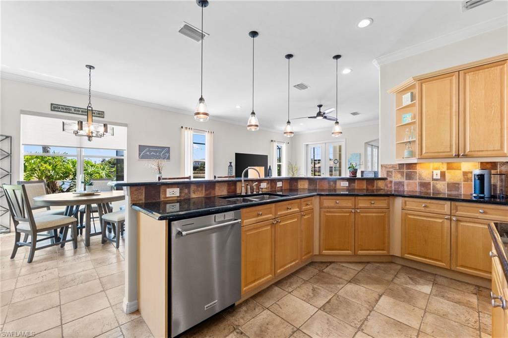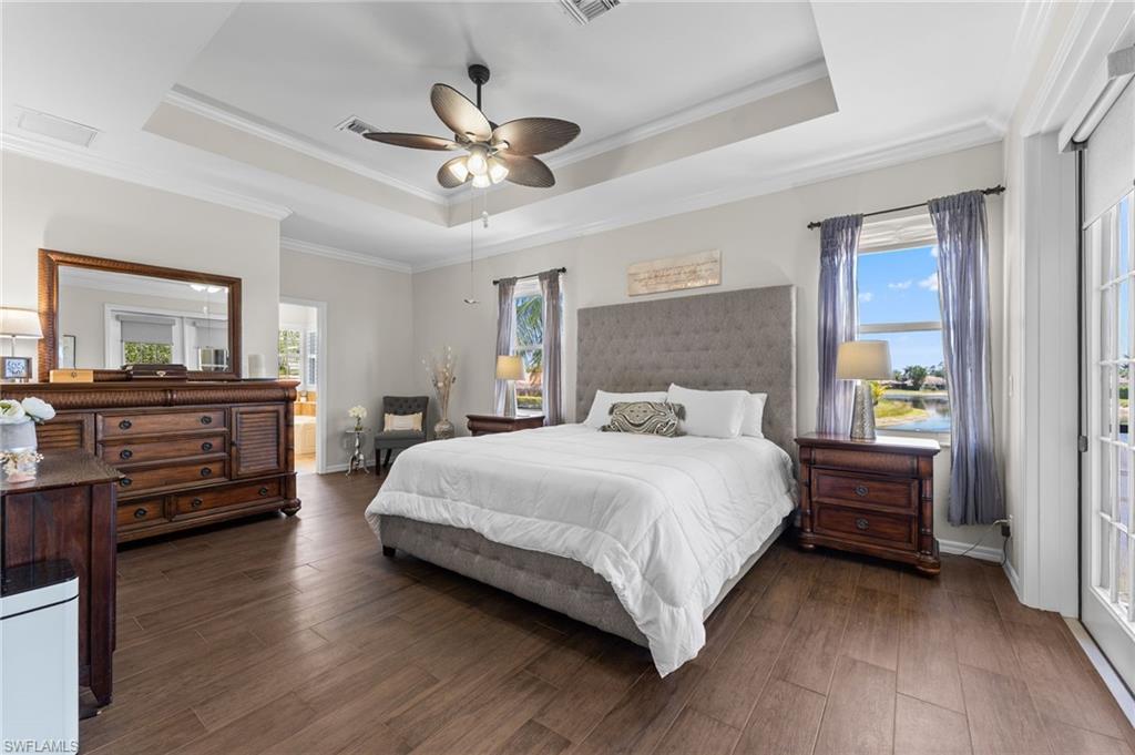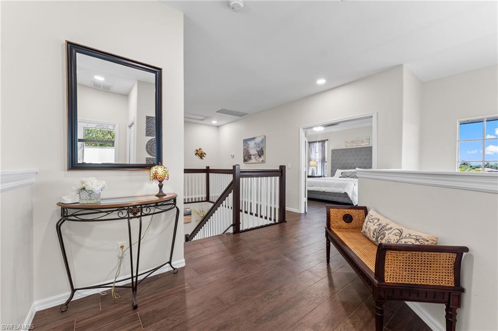 Welcome to one of Naples’ most sought-after residential communities. Perfectly situated at the end of a quiet cul-de-sac on a premium, pie-shaped pond lot, this two-story residence offers 3,713 square feet of beautifully designed living space, where sophistication meets comfort in a setting of rare tranquility and privacy. From the moment you arrive, the freshly painted exterior, lush landscaping, and elegant architecture create a warm and welcoming first impression. This home has been meticulously maintained and thoughtfully upgraded, showcasing true pride of ownership. Step inside to discover a spacious, open floor plan filled with natural light. At the heart of the home lies a chef-inspired kitchen with a large center island, stainless steel appliances, granite countertops, abundant cabinetry, and an oversized walk-in pantry. The kitchen flows seamlessly into the breakfast area and family room, offering the perfect space for casual meals or relaxed gatherings. Large windows frame sweeping views of the tranquil pond, creating an ideal environment for both everyday living and stylish entertaining. The main floor also features a formal dining room for intimate gatherings and a versatile den ideal for a home office, library, or creative space. Upstairs, a spacious bonus room offers flexibility as a media room, home gym, or playroom, with a Murphy bed for added functionality. The luxurious primary suite is a retreat, complete with a private screened balcony overlooking the pool and water views. The en-suite bathroom features dual vanities, a soaking tub, a separate shower, and a large walk-in closet. All full bathrooms have been beautifully updated with porcelain tile, new vanities, quartz countertops, lighting, and modern fixtures, creating a spa-like atmosphere throughout. The expansive screened lanai offers a resort-style pool and spa surrounded by lush landscaping for maximum privacy. Updated pool equipment adds peace of mind, making it easy to relax, entertain, or dine al fresco in your private backyard oasis. Three additional bedrooms and updated full baths offer comfort for guests or family. The garage provides generous storage space, and the seller is installing a Class 2 electric vehicle charger for added convenience. Located in a top-rated school district and adjacent to Oak Ridge Middle via private community access, residents enjoy amenities like a clubhouse, fitness center, and resort-style pool—all with low HOA fees. Don’t miss this rare opportunity to own one of Indigo Lakes' finest homes, blending timeless design, modern upgrades, and a stunning pond setting.