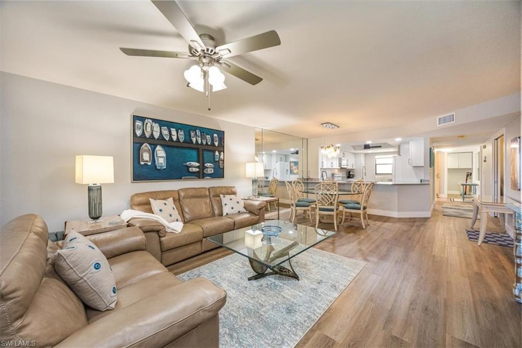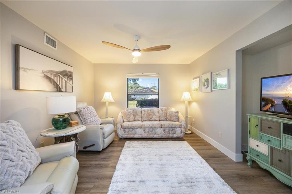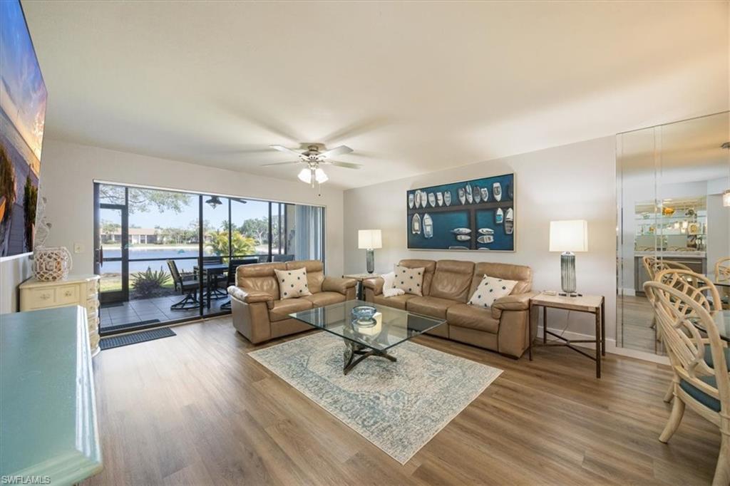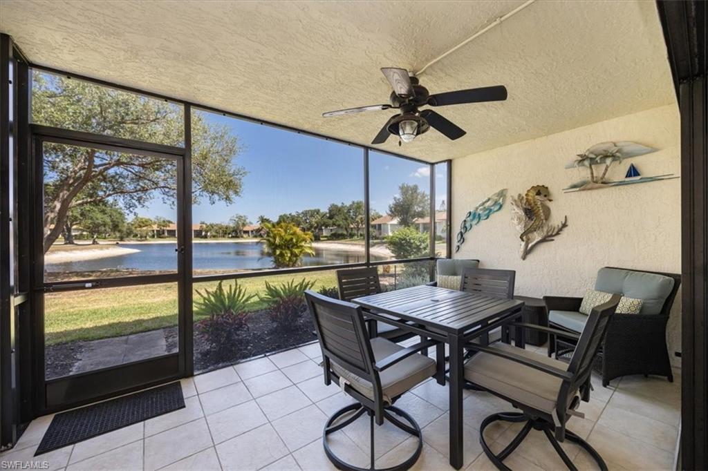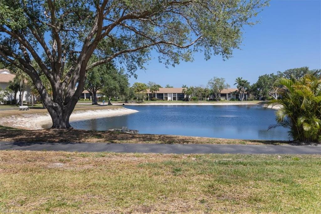 Welcome to Your Dream Retreat! This beautifully remodeled first-floor end unit offers breathtaking lake views from the living room, dining area, kitchen, and primary suite. It’s the perfect place to relax and unwind. This charming 2-bedroom, plus den, 2-bathroom home comes with a detached 1-car garage and is being offered turnkey, with just a few exceptions for artwork. The light-filled, open floor plan invites you to enjoy every space to the fullest. Special features include stunning Cortec vinyl plank flooring throughout, with tile accents in the bathrooms. The kitchen, remodeled within the last year, boasts gorgeous quartz countertops, brand-new Whirlpool appliances, soft-close kitchen cabinets, and a sleek gray Blanco-style sink. The primary suite is a true sanctuary, complete with a stylish bathroom featuring a granite vanity with dual sinks and a custom-designed glass-enclosed shower. Bar with new 2 drawer beverage refridg. Start your mornings on the newly rescreened lanai, with easy-to-maintain tiled flooring, and take in the natural beauty that surrounds you. Exciting news: A new driveway will be installed from May 3rd to 11th, making your home even more welcoming. The Retreat offers scenic walkways with wooden bridges along the wildlife estuary that winds along miles of bike and jogging paths. Minutes to Vanderbilt, Bonita, or Wiggins State Park white sandy beaches. the Retreat is a gated and 24hr. patrolled community, w/back gate off Vanderbilt for easy access. One small pet up to 25lb is allowed. Enjoy the heated/Saltwater Community pool w/grills and spa just steps away from unit. Bring your family and start making new memories today!