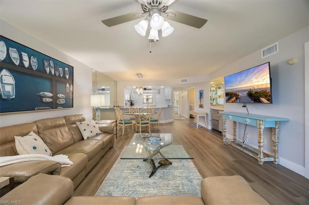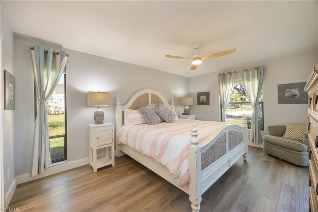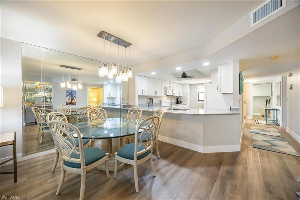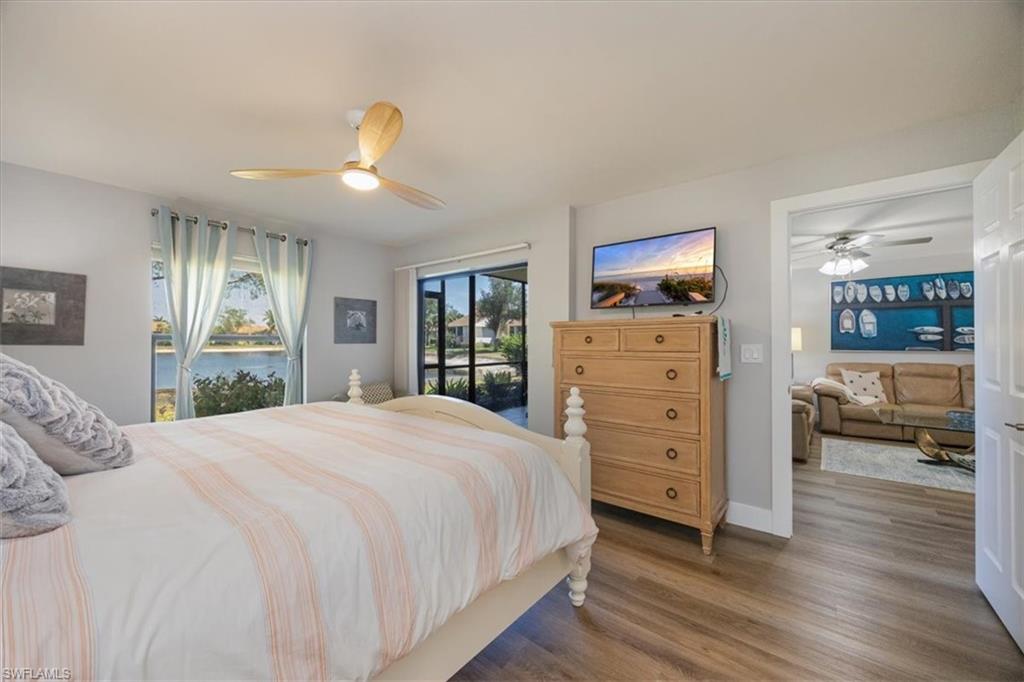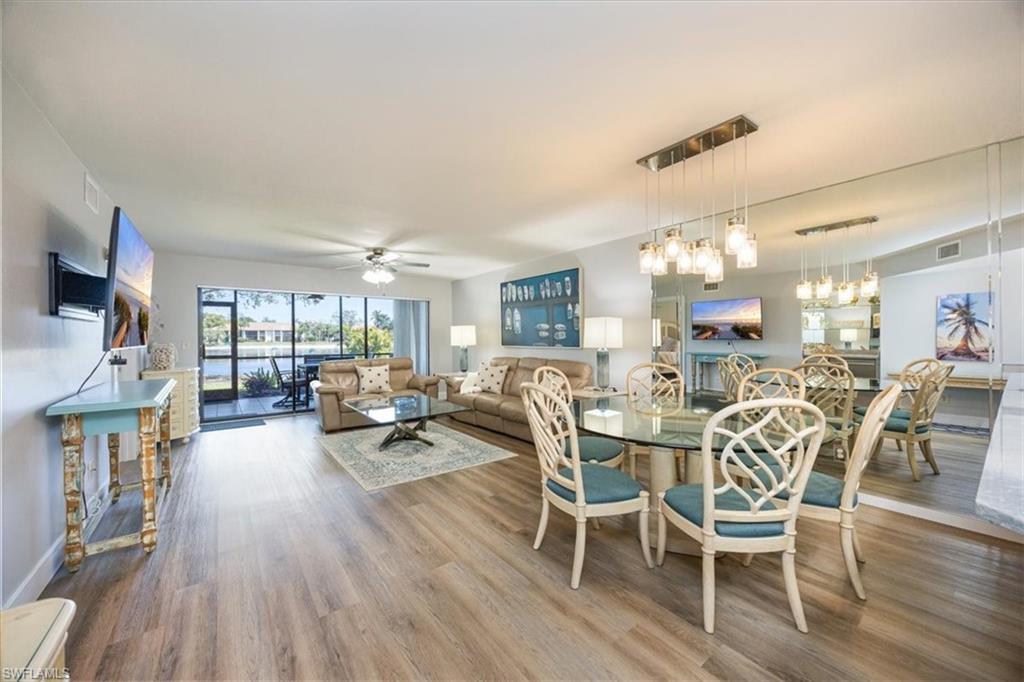 Welcome to Your Dream Retreat! This beautifully remodeled first-floor end unit offers breathtaking lake views from the living room, dining area, kitchen, and primary suite. It’s the perfect place to relax and unwind. This charming 2-bedroom, plus den, 2-bathroom home comes with a detached 1-car garage and is being offered turnkey, with just a few exceptions for artwork. The light-filled, open floor plan invites you to enjoy every space to the fullest. Special features include stunning Cortec vinyl plank flooring throughout, with tile accents in the bathrooms. The kitchen, remodeled within the last year, boasts gorgeous quartz countertops, brand-new Whirlpool appliances, soft-close kitchen cabinets, and a sleek gray Blanco-style sink. The primary suite is a true sanctuary, complete with a stylish bathroom featuring a granite vanity with dual sinks and a custom-designed glass-enclosed shower. Bar with new 2 drawer beverage refridg. Start your mornings on the newly rescreened lanai, with easy-to-maintain tiled flooring, and take in the natural beauty that surrounds you. Exciting news: A new driveway will be installed from May 3rd to 11th, making your home even more welcoming. The Retreat offers scenic walkways with wooden bridges along the wildlife estuary that winds along miles of bike and jogging paths. Minutes to Vanderbilt, Bonita, or Wiggins State Park white sandy beaches. the Retreat is a gated and 24hr. patrolled community, w/back gate off Vanderbilt for easy access. One small pet up to 25lb is allowed. Enjoy the heated/Saltwater Community pool w/grills and spa just steps away from unit. Bring your family and start making new memories today!