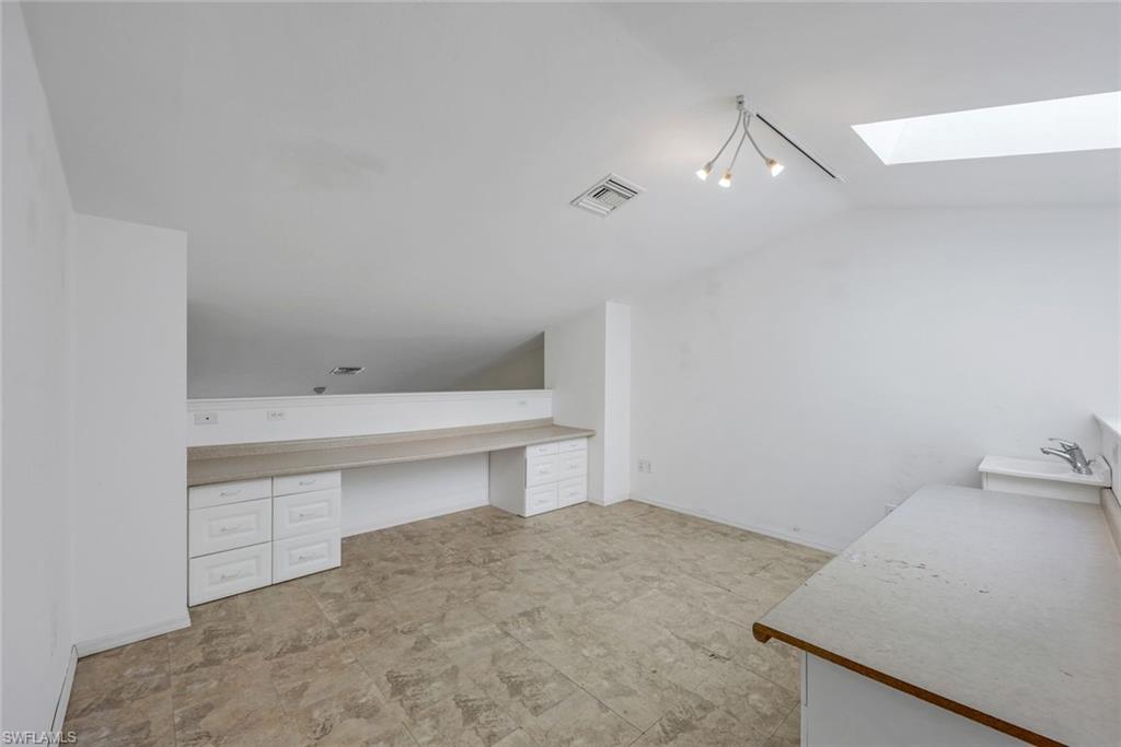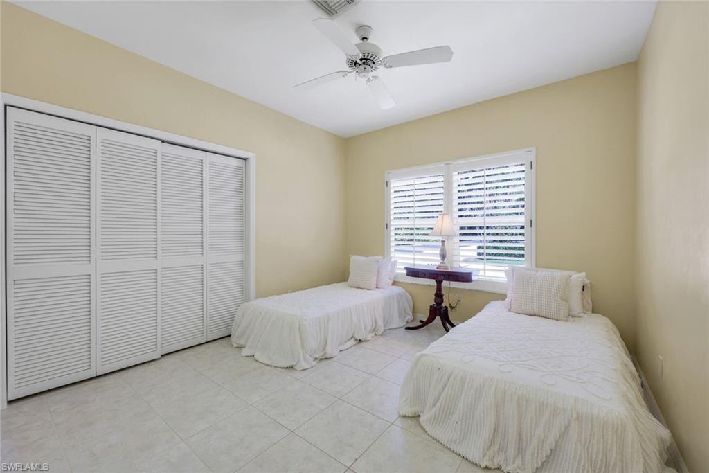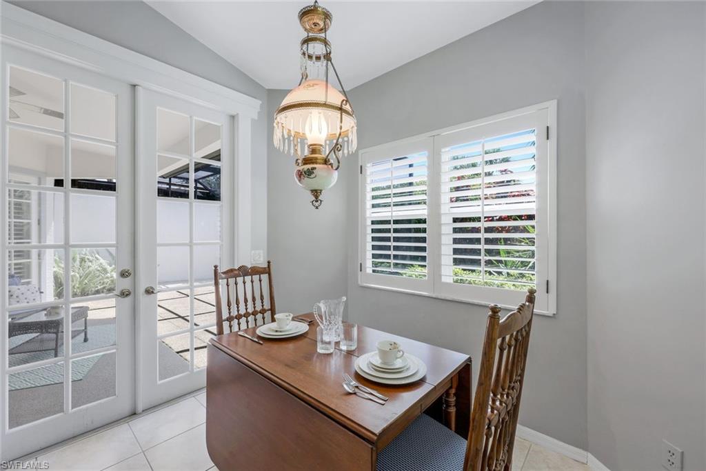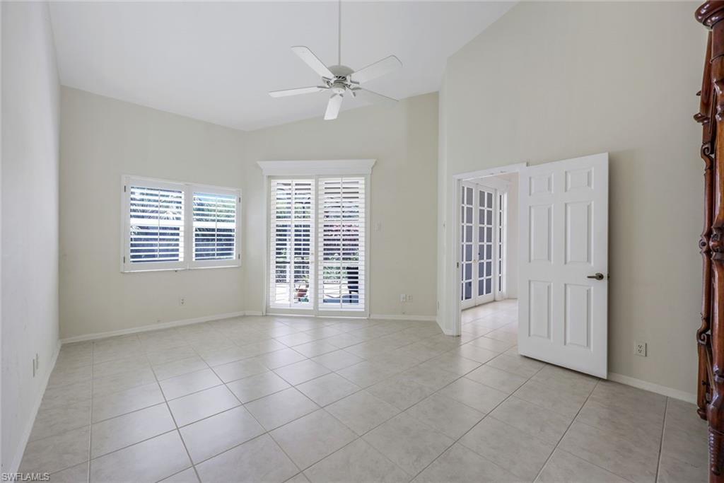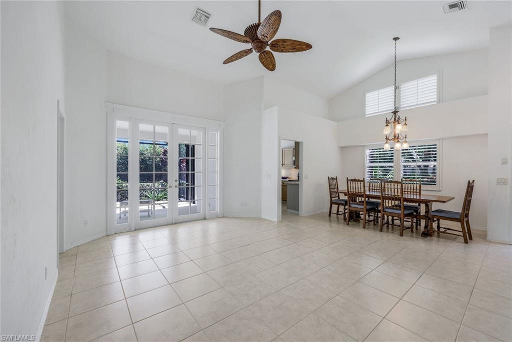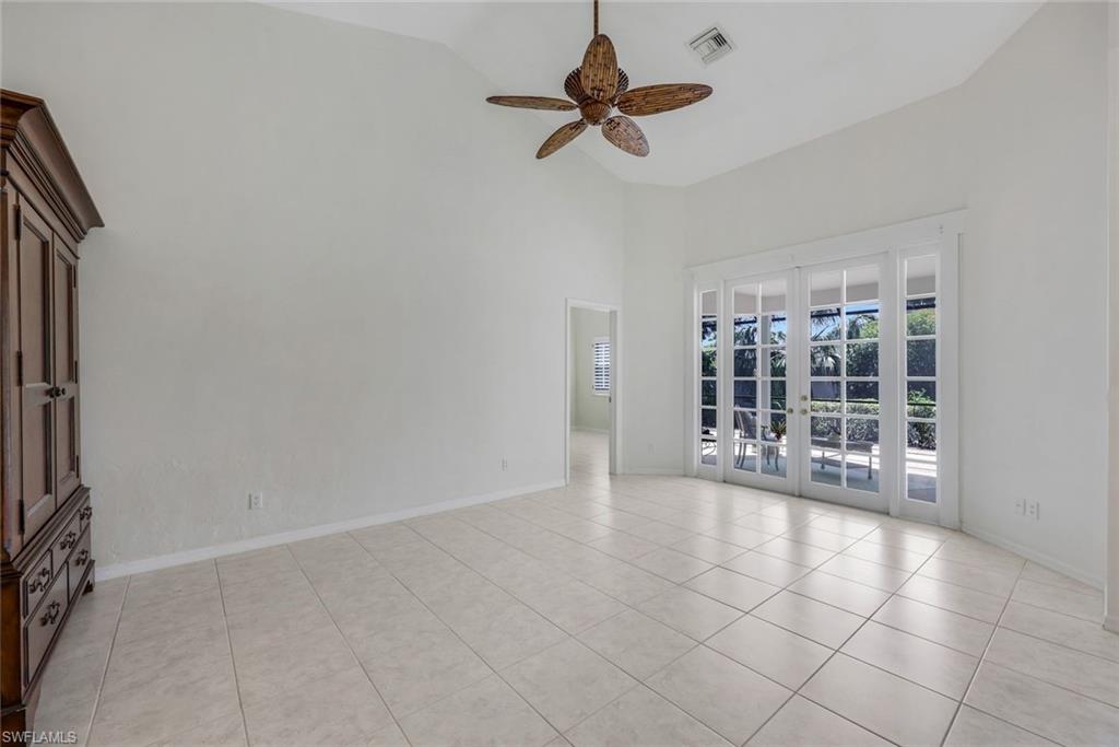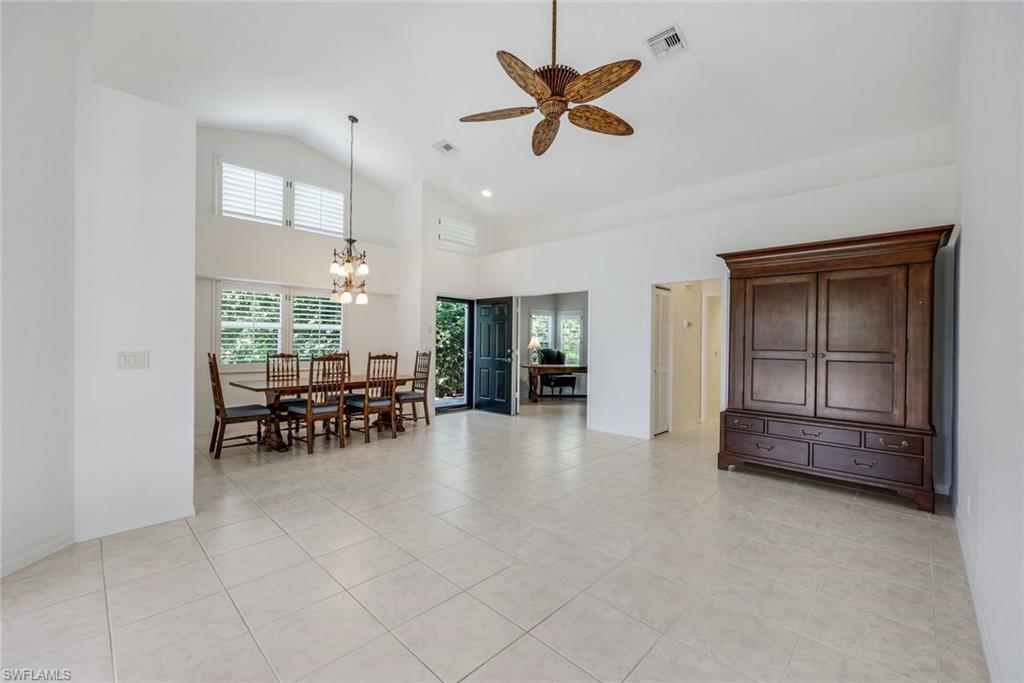 Burning Tree in Bonita Bay is an intimate neighborhood that captures the charm of old Florida. Quaintly nestled among mature oak trees, this home features two bedrooms, a den, a loft/bonus/art studio with skylight, and two bathrooms. The kitchen features wood cabinets, tile countertops, and all appliances, along with a sunlit breakfast nook. The volume ceilings contribute to the spacious feel of the casual dining room and great room, which opens onto an oversized lanai. The spacious main bedroom features access to the lanai through sliding glass doors and includes a main bathroom, as well as two walk-in closets. Adjacent to the great room is the den, while the guest bedroom is located down the hall with a full bathroom, providing privacy for your guests. The home has impact glass windows and plantation shutters. Additionally, there is a two-car garage for storing your toys and tools. The Burning Tree neighborhood provides a heated swimming pool with a pavilion. You can easily walk to nearby restaurants and attractions like the Promenade, Publix, and Bonita's famous Farmers Market. Bonita Bay boasts miles of hiking and biking trails, three waterfront parks offering canoe and kayak access, a private marina with an on-site restaurant, a private beach club, and numerous other activities. Optional membership to the Bonita Bay Club offers access to three championship golf courses, dining, a fitness center, a tennis and pickleball complex, a resort-style pool, and much more.