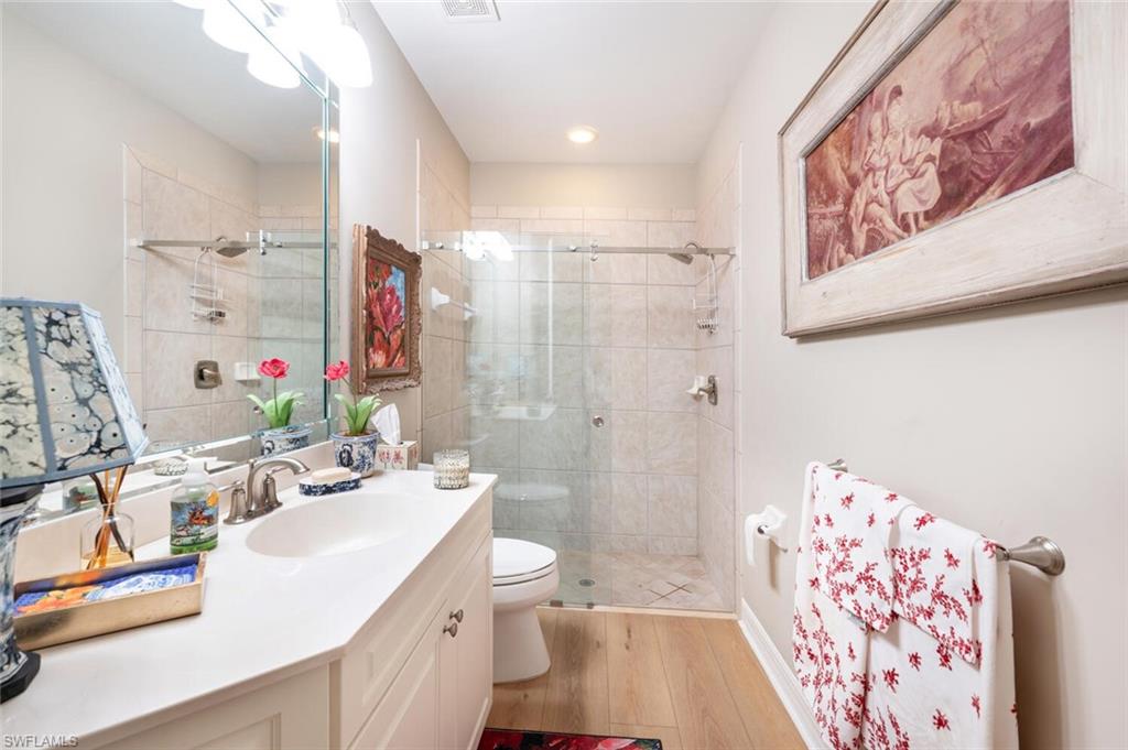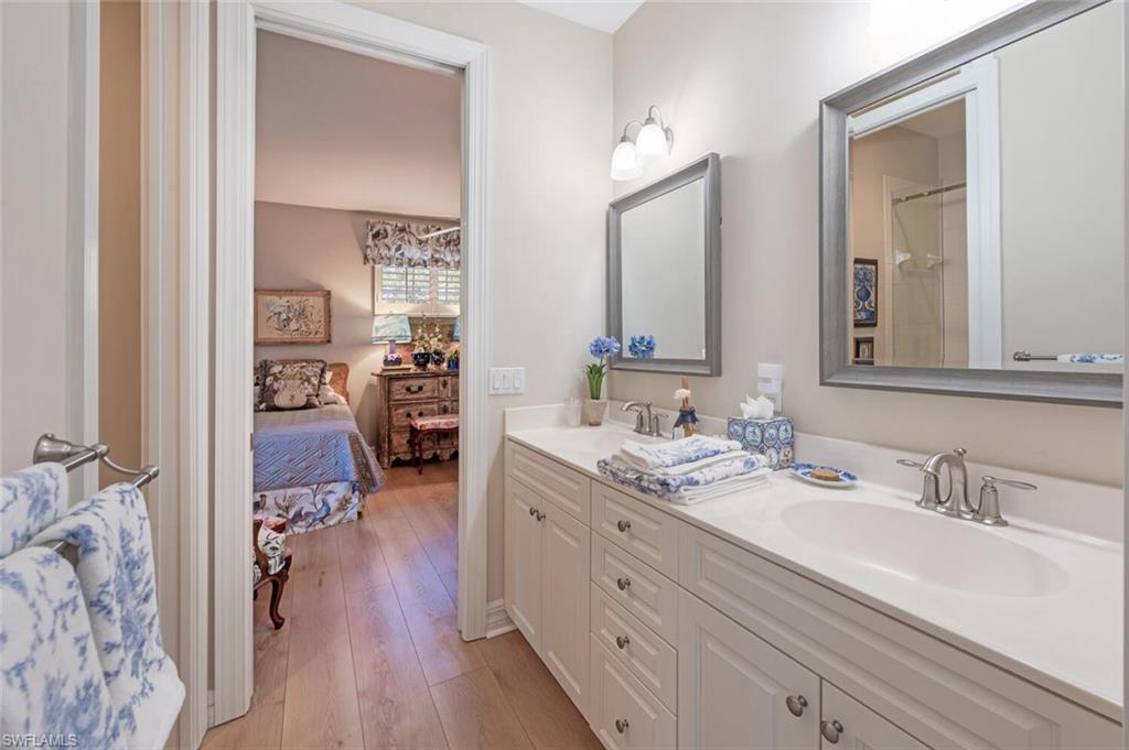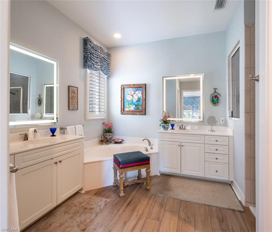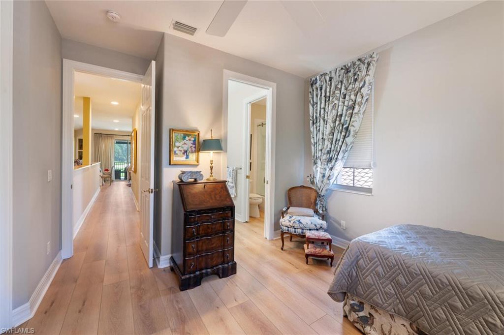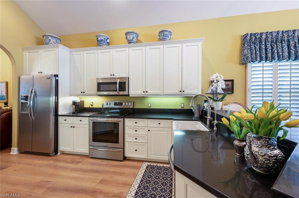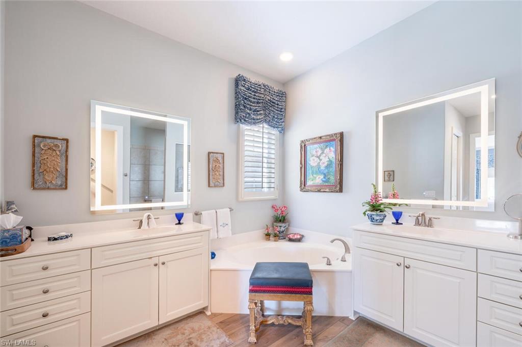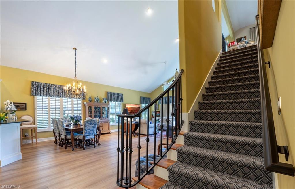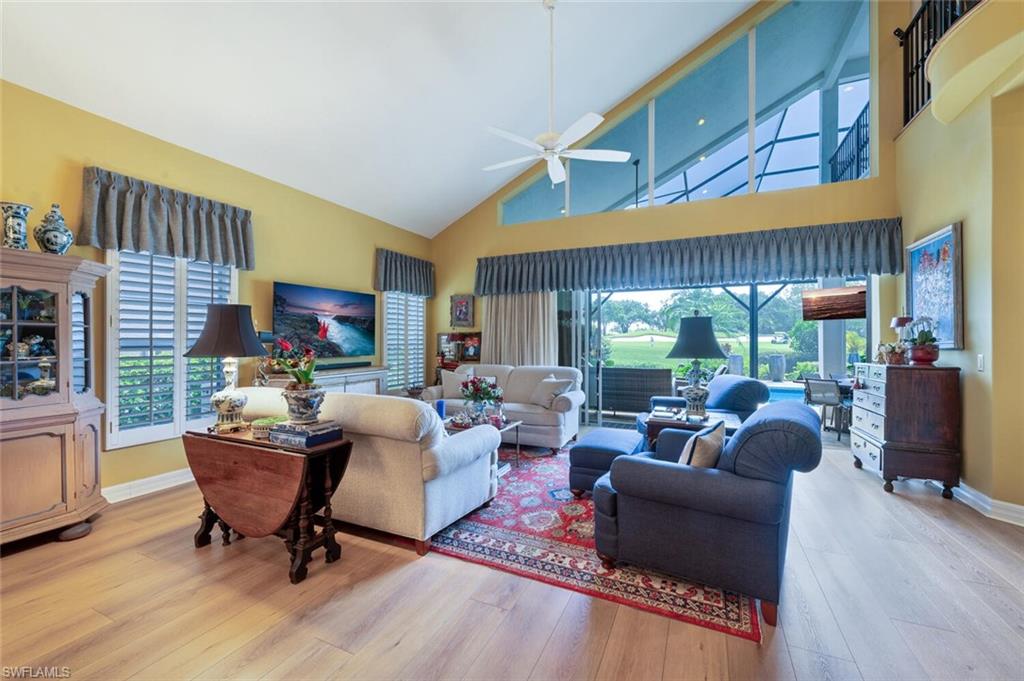 With commanding views of Kensington’s prized golf course, this extensively renovated 4-bed, 3-bath home in Canterbury Greens delivers 2,845 square feet of refined living, where every space, inside and out, reflects a commitment to style, function, and lasting value. New COREtec wood floors extend throughout the entire residence, creating a seamless sense of warmth and cohesion, elevated by soaring ceilings and a sunlit great room that opens effortlessly to the lanai. The recently remodeled kitchen features stylish cabinetry, modern countertops, and custom pantry storage. The ground floor also features a guest room, a fully remodeled guest bath, and a spacious primary suite complete with a remodeled bath and custom designer closets. Upstairs, two additional guest rooms share a second renovated bath and enjoy their own family room loft and balcony—creating a private haven for guests or family. The expansive lanai boasts a refreshed pool and spa, upgraded pavers, and a screened enclosure designed for all-day enjoyment. Covered lounging areas offer shaded comfort, while sun-drenched spaces invite you to relax and take in panoramic golf course views. This home has been meticulously upgraded inside and out with a newer roof, freshly painted interior and exterior, all-new wrought iron stair and balcony railings, stair carpeting, designer landscaping front and rear with LED lighting, and new window tinting on all rear-facing glass for added comfort and energy efficiency. Additional highlights include a new garage door with smart opener, custom cabinetry in the garage and primary suite, a Mitsubishi garage A/C, a whole-home GENERAC 24K generator, a water treatment and RO drinking system, propane tank monitoring, and a full security system with cameras and fire monitoring. Located in the sought-after, gated Kensington community, this property combines timeless design, state-of-the-art functionality, and the peace of mind only a truly updated home can provide.