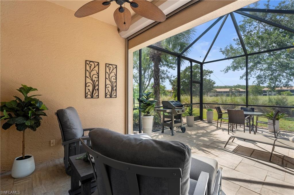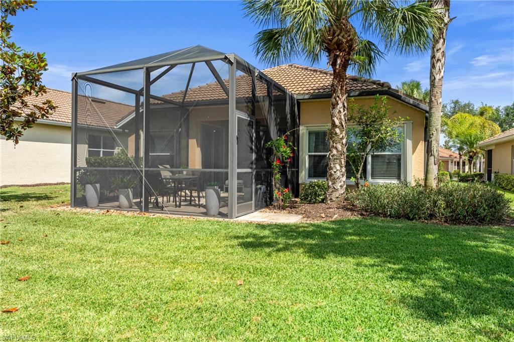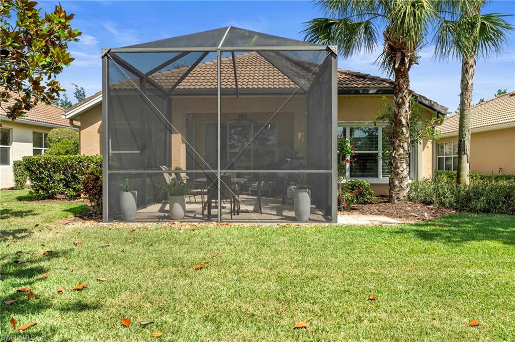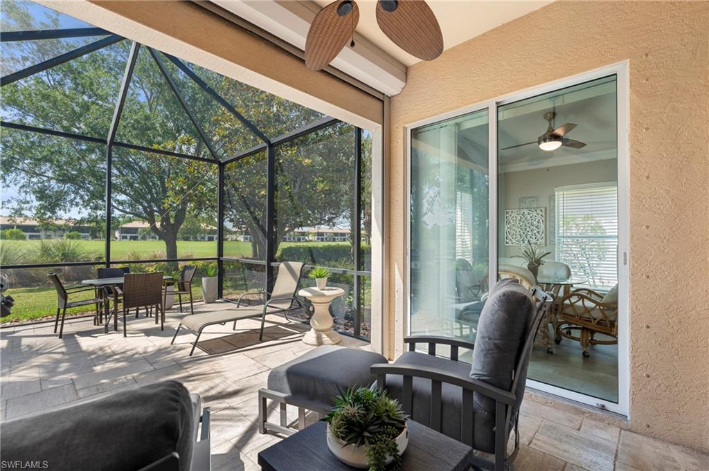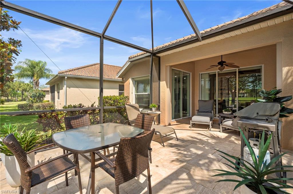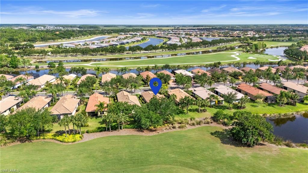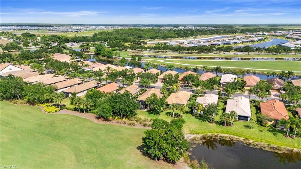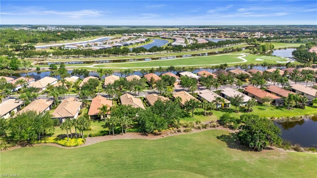 Welcome to this beautifully updated and turnkey "Brentwood" model from the Garden/Scenic Series in the highly sought-after 55+ active community of Del Webb at Ave Maria. Perfectly situated on a premium golf course lot, this home offers stunning views of the 6th hole and a seamless blend of comfort, style, and resort living. This fully furnished, move-in-ready home features 3 bedrooms, 2 full bathrooms, a 2-car garage, and a Social Membership. Inside, you'll find volume ceilings that enhance the spacious open floor plan, updated interior and exterior paint, luxury vinyl plank flooring, and newer carpeting in the primary and second bedrooms. The kitchen has been enhanced with expanded soft-close cabinetry, granite countertops, a tile backsplash, and stainless steel appliances — all updated within the past few years. The open floor plan is complemented by crown molding throughout most of the home. The second bathroom has been fully renovated with modern finishes. Enjoy Florida living at its best from the extended screened-in lanai, perfectly positioned to take in breathtaking sunset views over the golf course. The backyard also offers plenty of space to add a pool, making it easy to create your own private outdoor retreat. Additional features include an electric roll-down shutter for the lanai, accordion hurricane shutters on all windows, a portable generator hook-up in the garage, and a golf cart available for purchase. For added convenience, lawn care is included through the HOA. Residents of Del Webb enjoy world-class amenities at the Oasis Club, including a resort-style pool, lap pool, spa, fitness center, pickleball and tennis courts, bocce, a catering hall, golf simulator, billiards room, and a full calendar of activities. The semi-private championship golf course offers a pro shop, on-site golf pro, and restaurant. Offering an active lifestyle in a vibrant community, this turnkey property is ready for you to enjoy. Come experience all that Ave Maria has to offer!