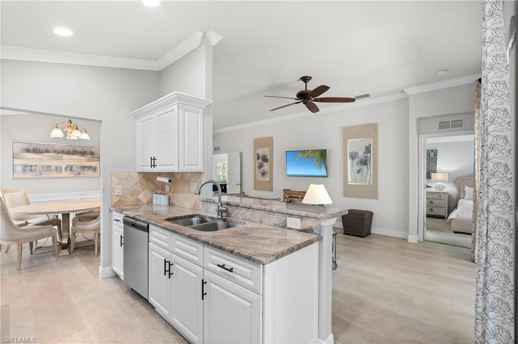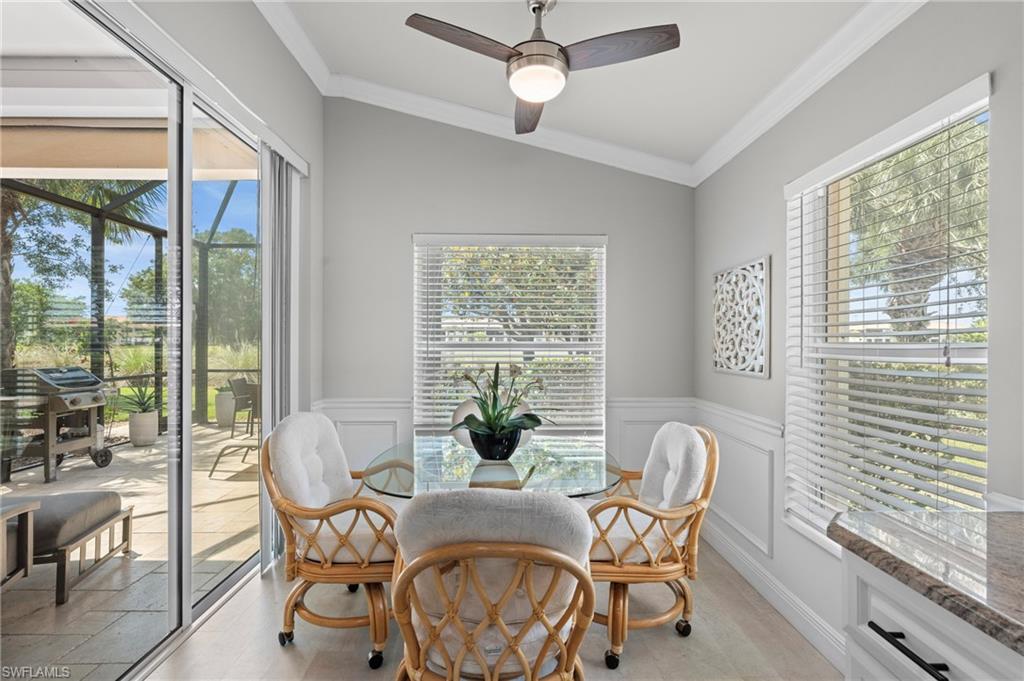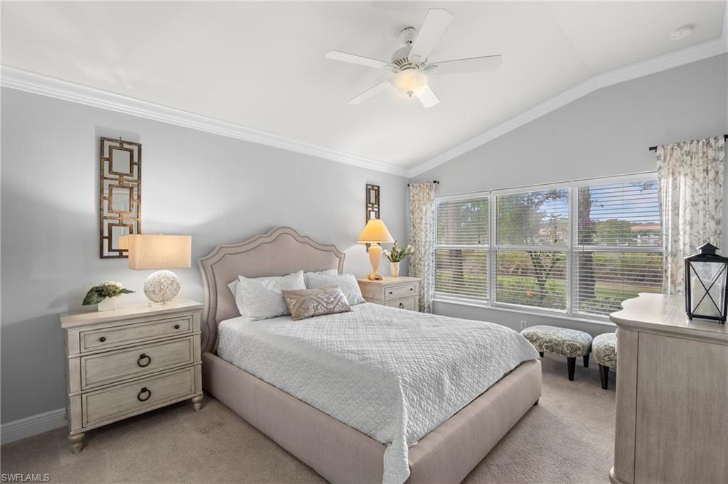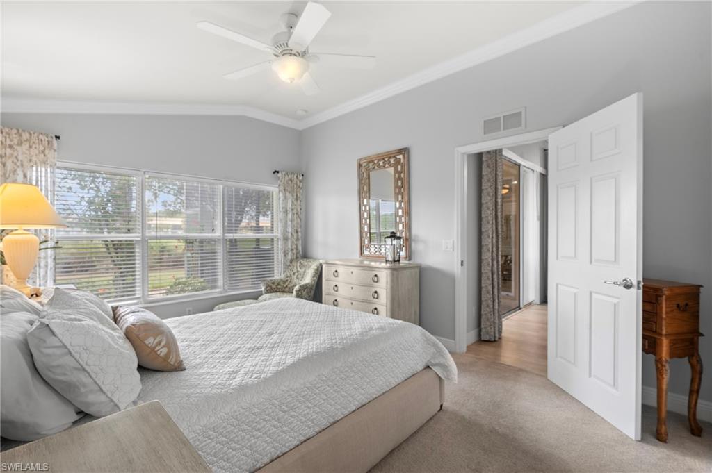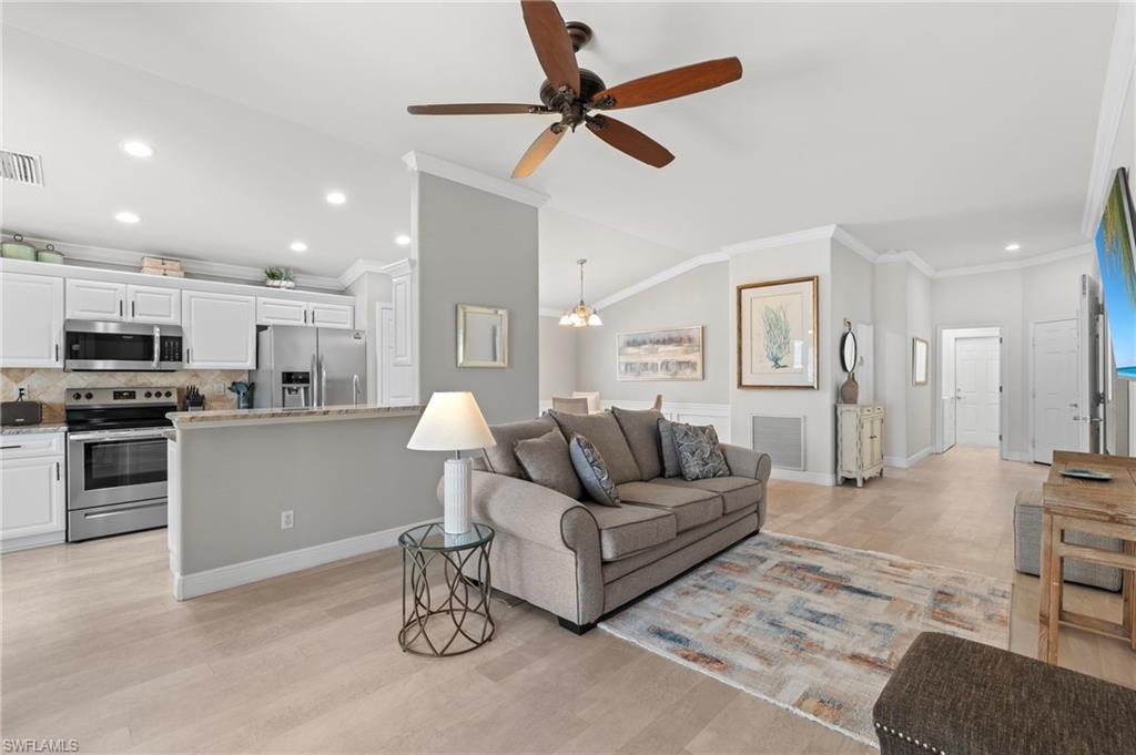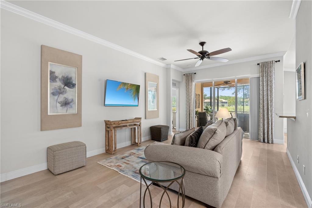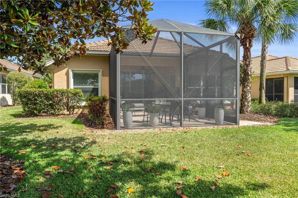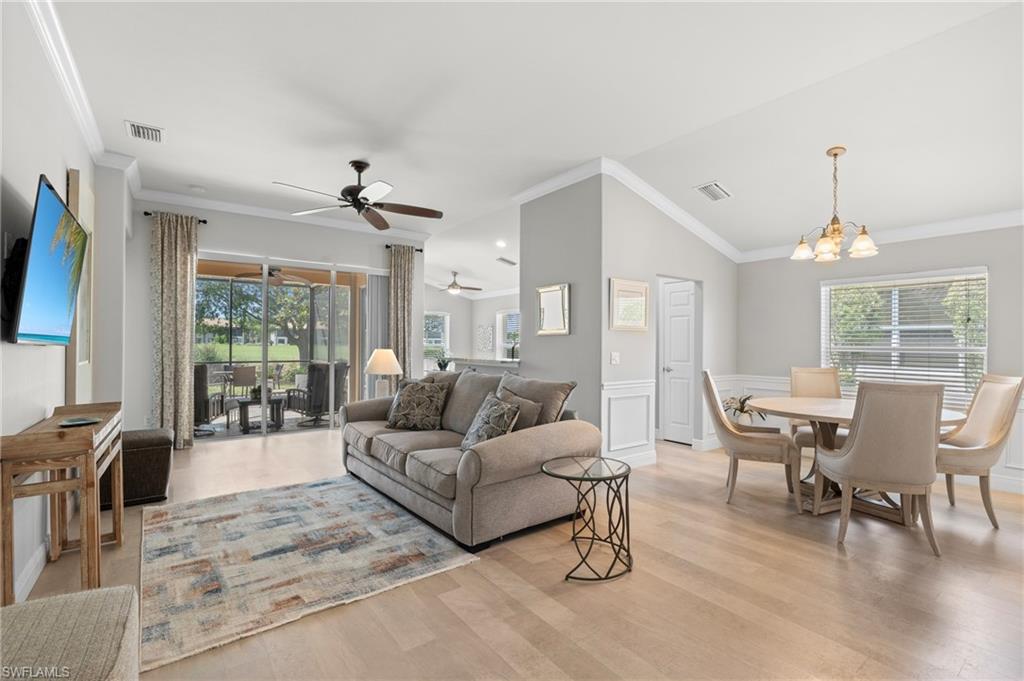 Welcome to this beautifully updated and turnkey "Brentwood" model from the Garden/Scenic Series in the highly sought-after 55+ active community of Del Webb at Ave Maria. Perfectly situated on a premium golf course lot, this home offers stunning views of the 6th hole and a seamless blend of comfort, style, and resort living. This fully furnished, move-in-ready home features 3 bedrooms, 2 full bathrooms, a 2-car garage, and a Social Membership. Inside, you'll find volume ceilings that enhance the spacious open floor plan, updated interior and exterior paint, luxury vinyl plank flooring, and newer carpeting in the primary and second bedrooms. The kitchen has been enhanced with expanded soft-close cabinetry, granite countertops, a tile backsplash, and stainless steel appliances — all updated within the past few years. The open floor plan is complemented by crown molding throughout most of the home. The second bathroom has been fully renovated with modern finishes. Enjoy Florida living at its best from the extended screened-in lanai, perfectly positioned to take in breathtaking sunset views over the golf course. The backyard also offers plenty of space to add a pool, making it easy to create your own private outdoor retreat. Additional features include an electric roll-down shutter for the lanai, accordion hurricane shutters on all windows, a portable generator hook-up in the garage, and a golf cart available for purchase. For added convenience, lawn care is included through the HOA. Residents of Del Webb enjoy world-class amenities at the Oasis Club, including a resort-style pool, lap pool, spa, fitness center, pickleball and tennis courts, bocce, a catering hall, golf simulator, billiards room, and a full calendar of activities. The semi-private championship golf course offers a pro shop, on-site golf pro, and restaurant. Offering an active lifestyle in a vibrant community, this turnkey property is ready for you to enjoy. Come experience all that Ave Maria has to offer!