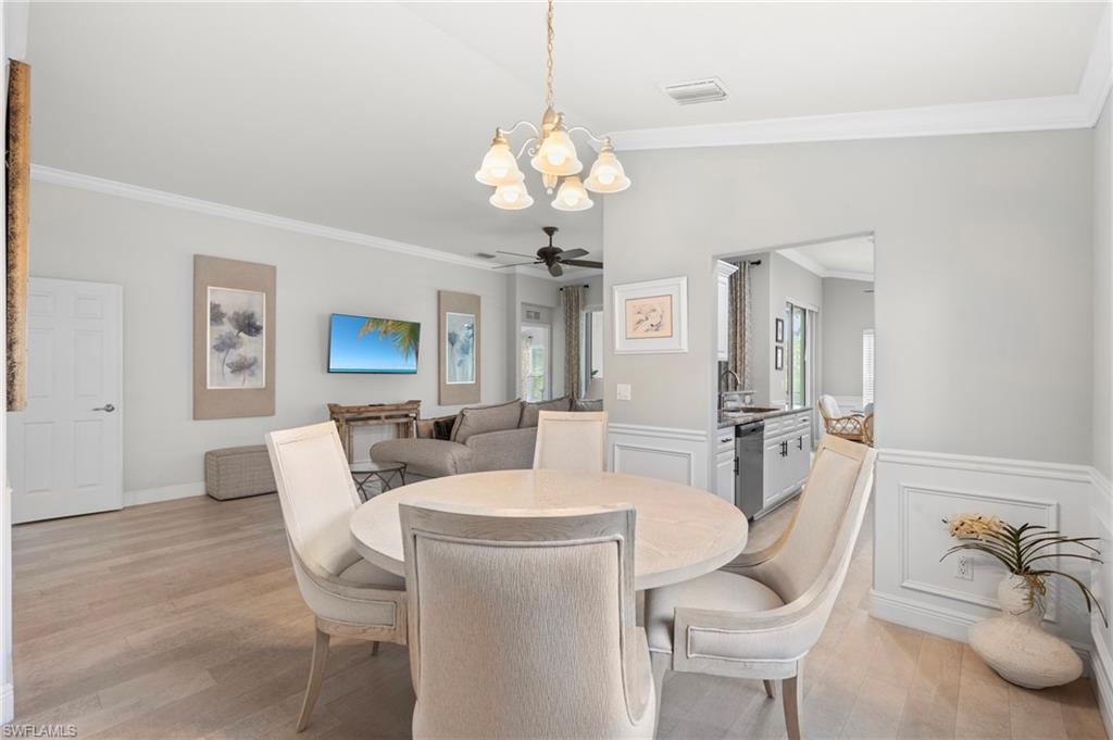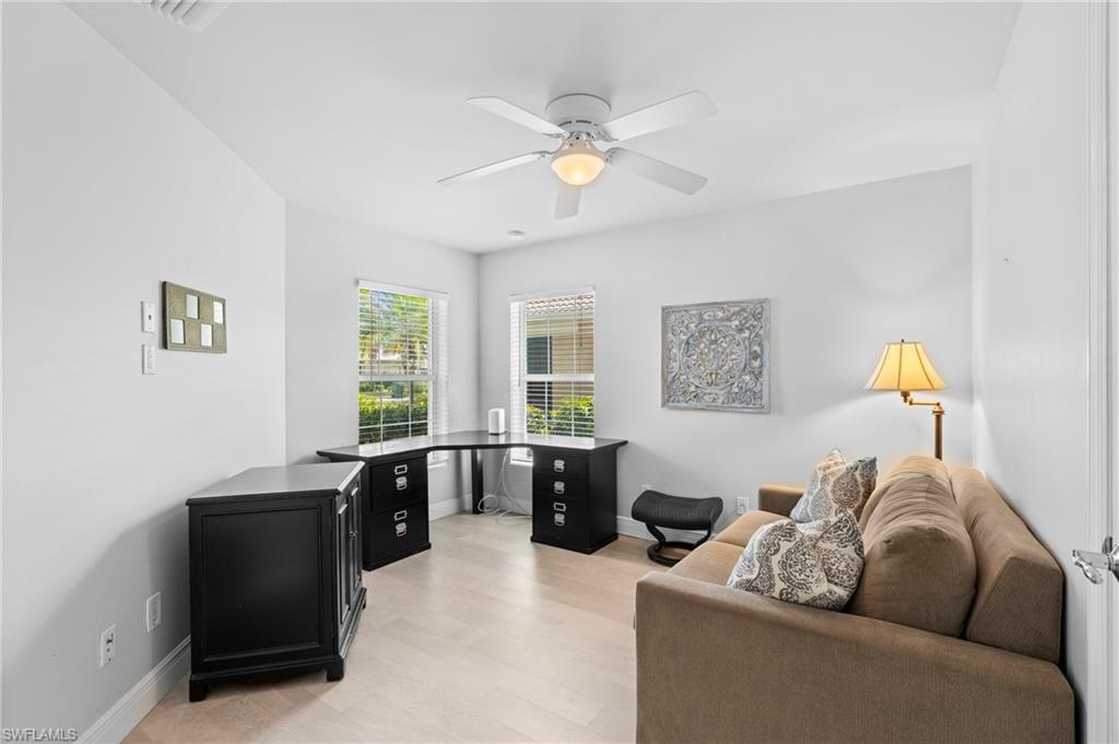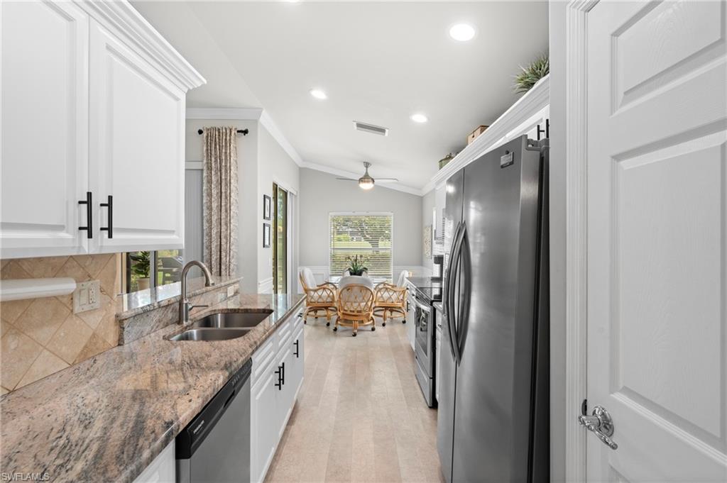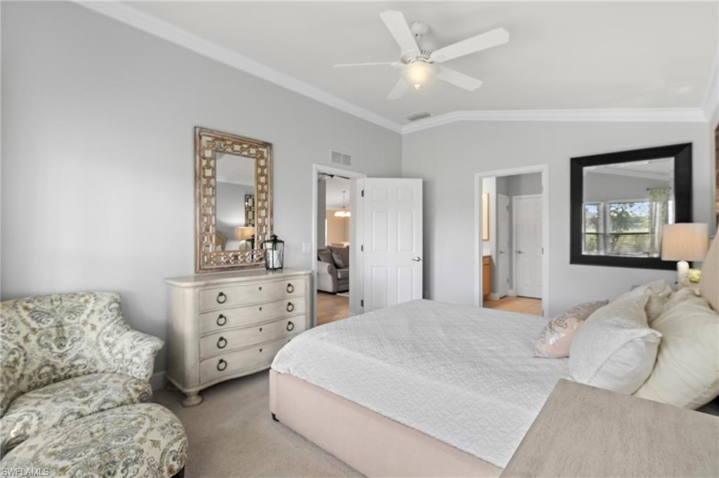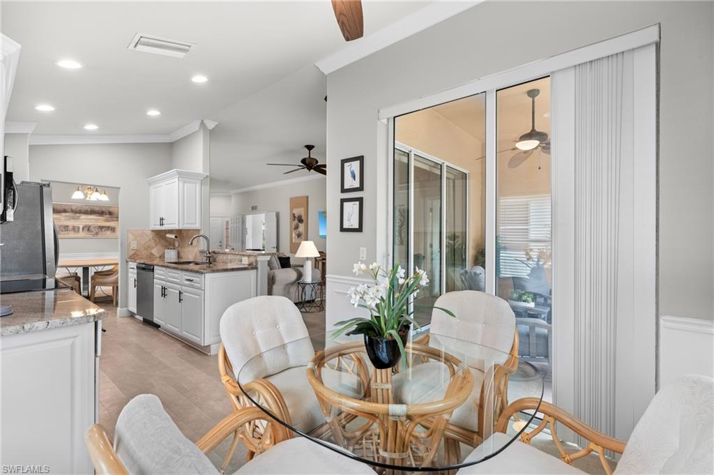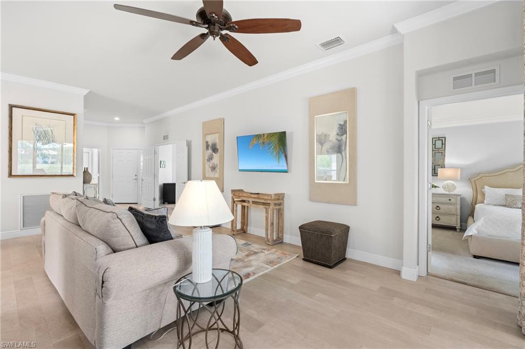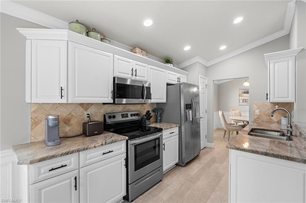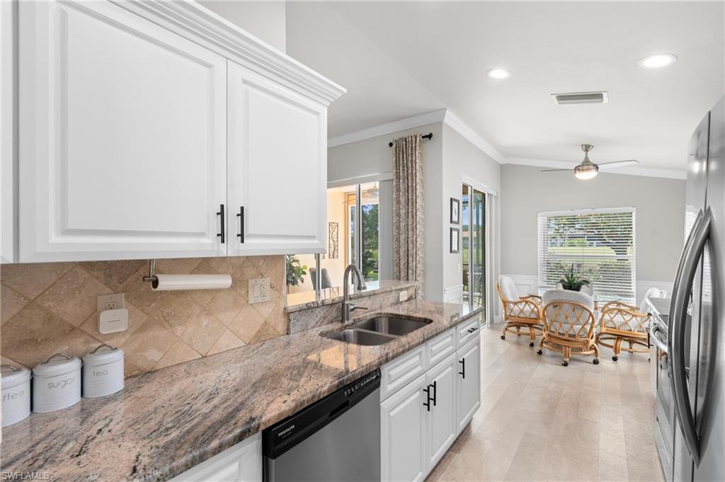 Welcome to this beautifully updated and turnkey "Brentwood" model from the Garden/Scenic Series in the highly sought-after 55+ active community of Del Webb at Ave Maria. Perfectly situated on a premium golf course lot, this home offers stunning views of the 6th hole and a seamless blend of comfort, style, and resort living. This fully furnished, move-in-ready home features 3 bedrooms, 2 full bathrooms, a 2-car garage, and a Social Membership. Inside, you'll find volume ceilings that enhance the spacious open floor plan, updated interior and exterior paint, luxury vinyl plank flooring, and newer carpeting in the primary and second bedrooms. The kitchen has been enhanced with expanded soft-close cabinetry, granite countertops, a tile backsplash, and stainless steel appliances — all updated within the past few years. The open floor plan is complemented by crown molding throughout most of the home. The second bathroom has been fully renovated with modern finishes. Enjoy Florida living at its best from the extended screened-in lanai, perfectly positioned to take in breathtaking sunset views over the golf course. The backyard also offers plenty of space to add a pool, making it easy to create your own private outdoor retreat. Additional features include an electric roll-down shutter for the lanai, accordion hurricane shutters on all windows, a portable generator hook-up in the garage, and a golf cart available for purchase. For added convenience, lawn care is included through the HOA. Residents of Del Webb enjoy world-class amenities at the Oasis Club, including a resort-style pool, lap pool, spa, fitness center, pickleball and tennis courts, bocce, a catering hall, golf simulator, billiards room, and a full calendar of activities. The semi-private championship golf course offers a pro shop, on-site golf pro, and restaurant. Offering an active lifestyle in a vibrant community, this turnkey property is ready for you to enjoy. Come experience all that Ave Maria has to offer!