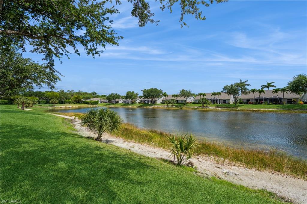 Enjoy peaceful water views from this beautifully maintained 3-bedroom, 2-bath villa in the gated community of Mandalay Bay. Featuring an open floor plan, high ceilings with solar tubes in the kitchen and living area, a spacious kitchen designed for functionality and style with ample cabinetry and sleek coutertops, and a private screened lanai overlooking the water, this home is perfect for relaxed Florida living.The primary suite offers peaceful views, a well-equipped walk-in closet, and a large en-suite bath. Additional perks include a two-car garage, in-unit laundry, a recently replaced roof and access to community amenities— all just minutes from Naples’ beaches, shopping, and dining.