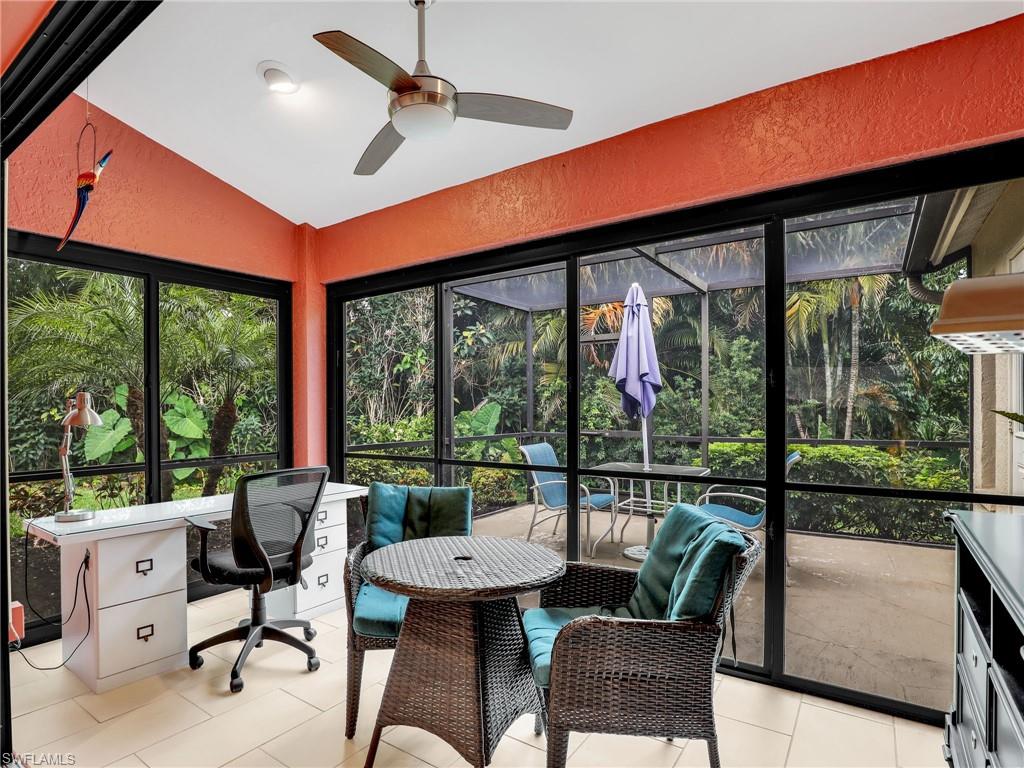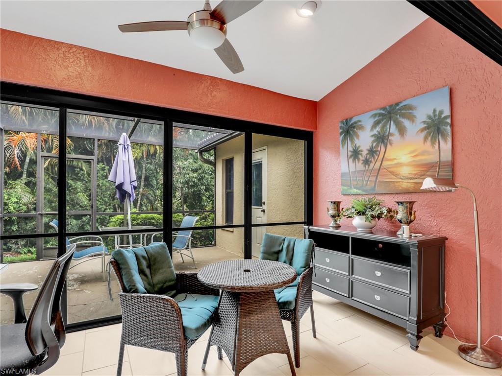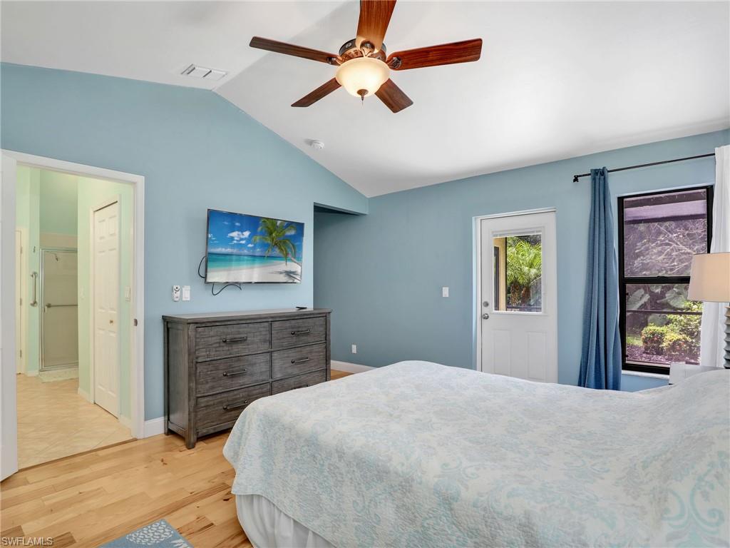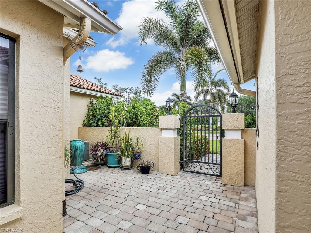 Lowest Priced Villa in Hunters Ridge!This is an incredible opportunity to own in one of Bonita Springs' most desirable gated golf and tennis communities. Priced to sell, this attached corner villa is ready for a new owner to customize to their own taste and style. Offered turnkey furnished, the home features vaulted ceilings, large windows, and an abundance of natural light throughout the day. With 3 bedrooms featuring hardwood floors and tile in the main living areas, it offers a perfect blend of comfort and durability. The kitchen and bathrooms have been updated with granite countertops, and the spacious living room opens to a private lanai overlooking a beautifully landscaped area—perfect for relaxing or entertaining. This villa lives like a single-family home and is just minutes from RSW Airport, Barefoot Beach, and top-notch shopping and dining in vibrant Bonita Springs. Don’t miss your chance to get into Hunters Ridge at the best price!