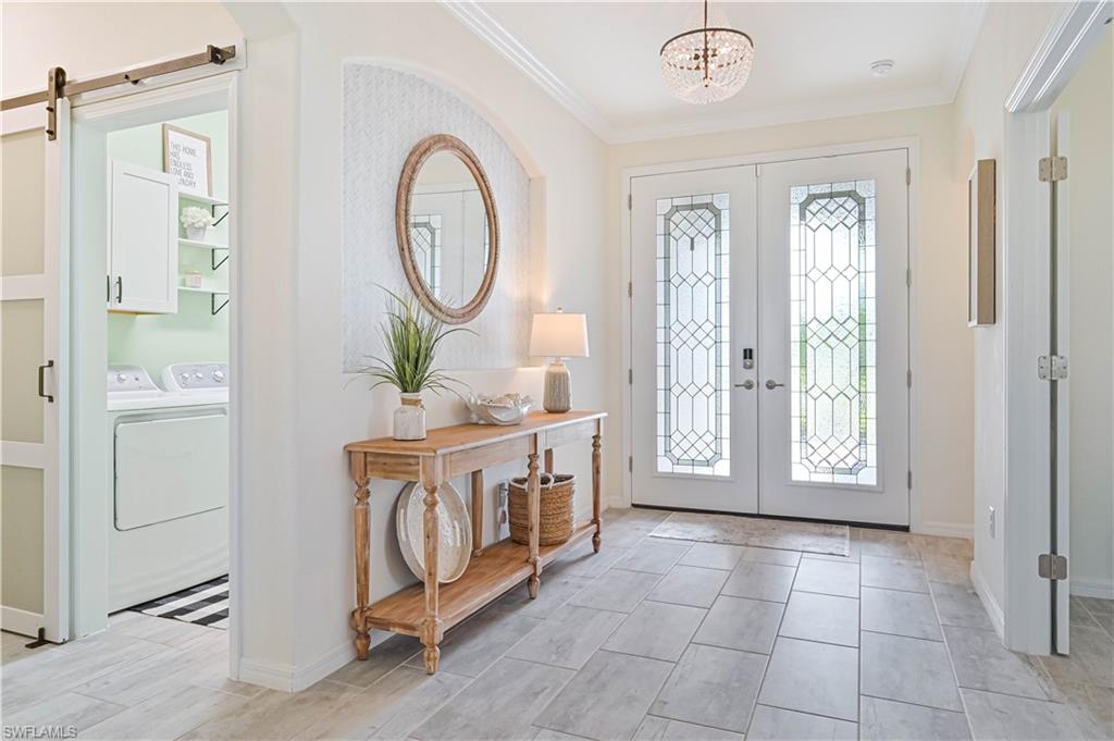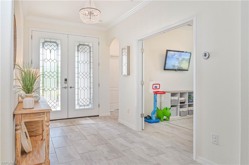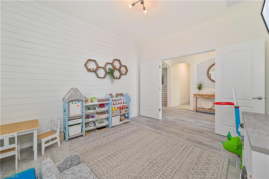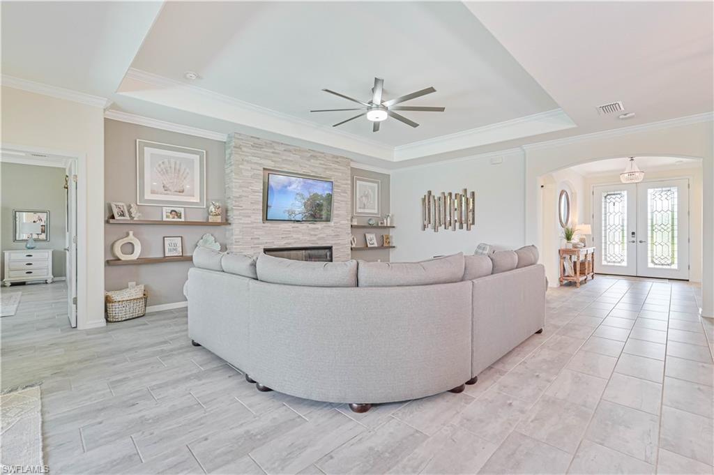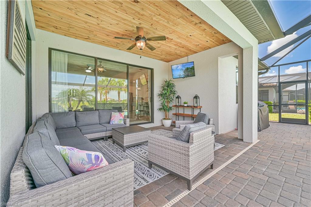Experience luxury living at its finest in this stunning home located in The Place at Corkscrew, an exclusive resort-style community! Nestled on an oversized lot with sought-after western exposure, this 3-bedroom plus den, 3-bathroom residence offers breathtaking sunset views over a serene preserve. The outdoor oasis features a pristine saltwater pool and a panoramic lanai screen, perfectly blending indoor and outdoor living. Elegant luxury wood paneling accents the patio ceiling, adding a touch of sophistication. Inside, the chef’s kitchen impresses with a spacious island, white shaker cabinetry, stainless steel appliances, and stylish finishes — ideal for both everyday living and entertaining. The living room offers a cozy ambiance with a dramatic tile accent wall and built-in fireplace. Additional upgrades include all-tile flooring throughout, custom closets, upgraded laundry cabinetry, a generator transfer switch panel, and an AC-equipped, fully insulated 3-car garage — perfect for car enthusiasts or a home gym. This home is not located in a flood zone. Residents of The Place at Corkscrew enjoy world-class amenities including a resort-style zero-entry pool with a 100-foot waterslide, waterfalls, a fire pit, splash pad, indoor and outdoor dining, bourbon bar, café and ice cream shop, two-story fitness center, childcare center, yoga room, massage services, pickleball, tennis, basketball, bocce, playground, dog park, and so much more. Plus, a brand-new Publix plaza with nail salon, dunkin donuts, and italian restaurant is just a mile away for added convenience. Don't miss this rare opportunity — schedule your private tour today and experience the lifestyle you deserve!