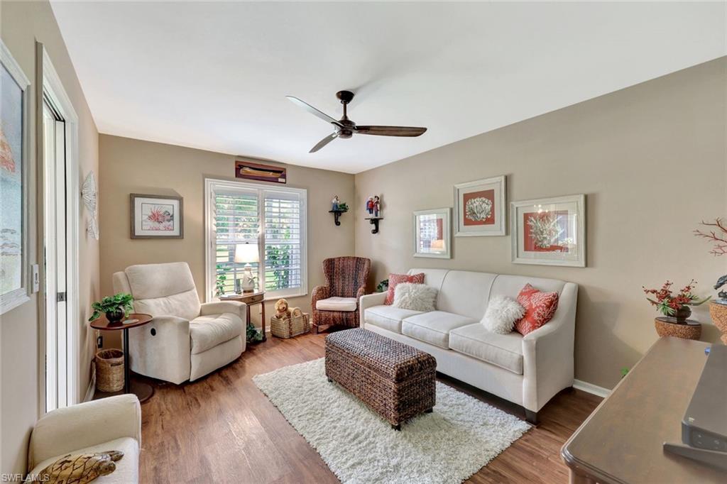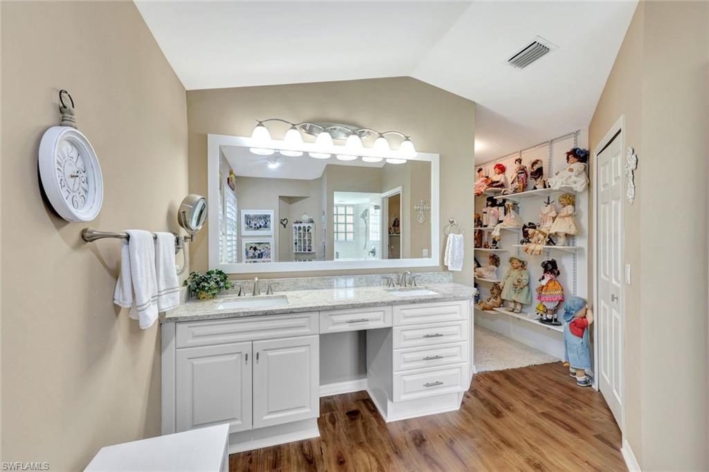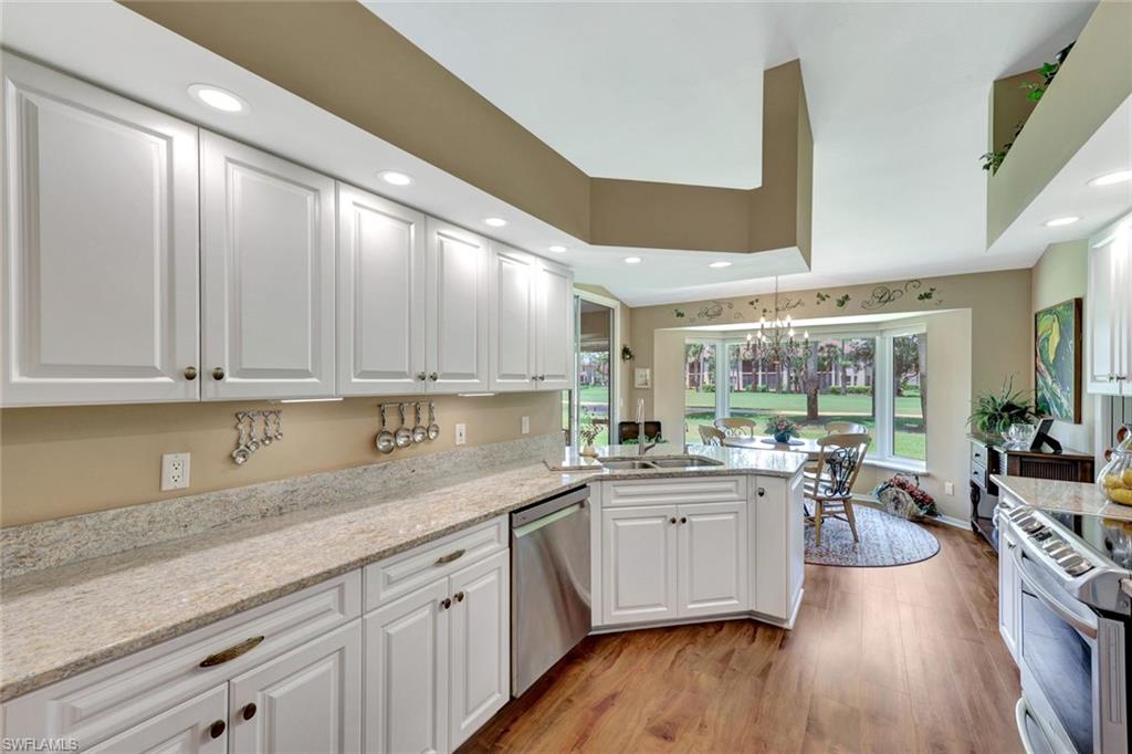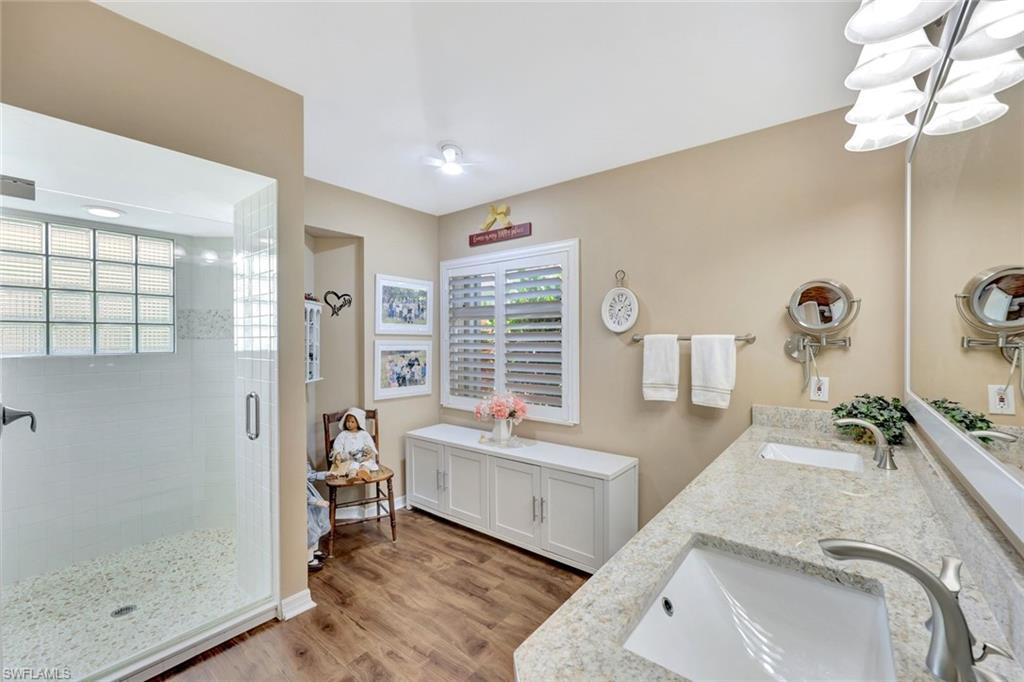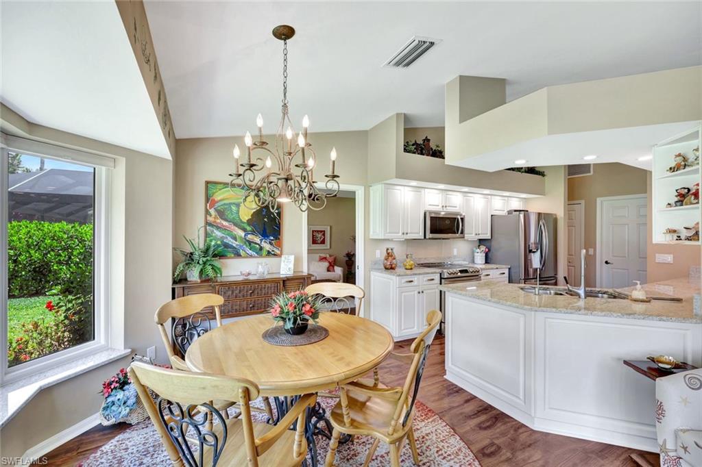 Totally updated and move-in ready! Enjoy serene golf course views from this beautifully updated single-family home in the gated community of Hunters Ridge. Backing up to the 18th hole, this home offers a peaceful setting and a host of thoughtful upgrades. Inside you'll find LVP flooring throughout, plantation shutters, and a comfortable layout with excellent natural light. The kitchen features refaced cabinets, new granite countertops, new SS appliances, and a charming bay window installed with an impact glass upgrade. The primary suite includes a remodeled bathroom with a walk-in shower in place of the original tub. Additional features include updated showers in both baths, full home repipe (3–4 years ago), electric shutters, newer water heater, and . Enjoy resort-style amenities and optional golf membership in this active, well-maintained community. Residents enjoy an array of premier amenities, including a private 18-hole championship golf course, state-of-the-art golf simulators, a resort-style pool, a fitness and activity center, elegant clubhouse with fine dining and a casual grill room, a charming poolside café, as well as tennis and pickleball courts, and more.