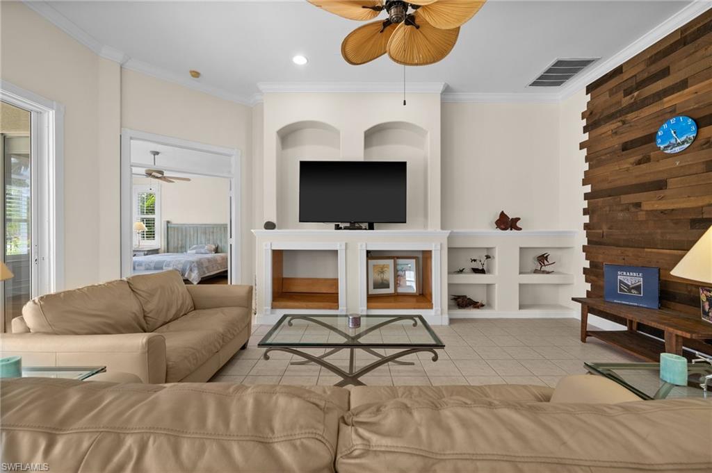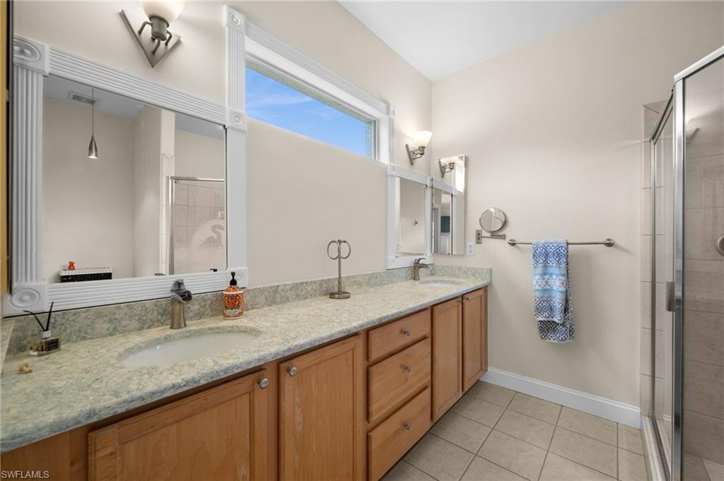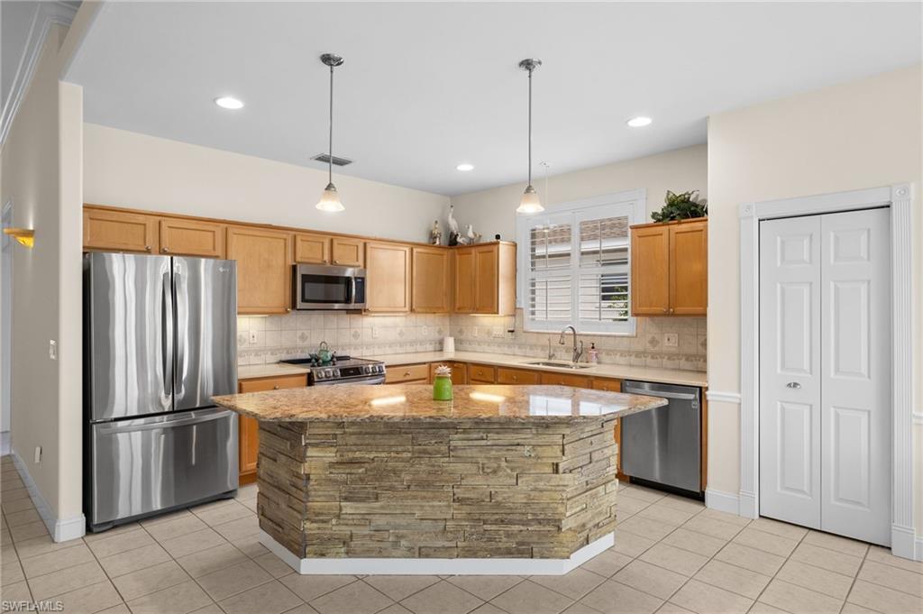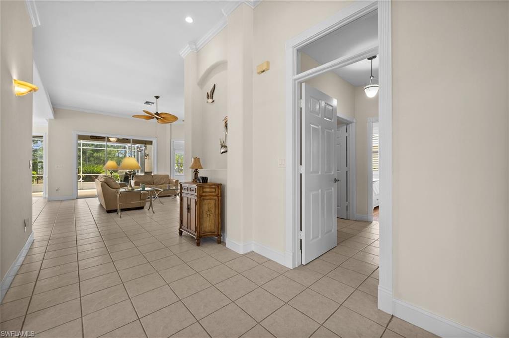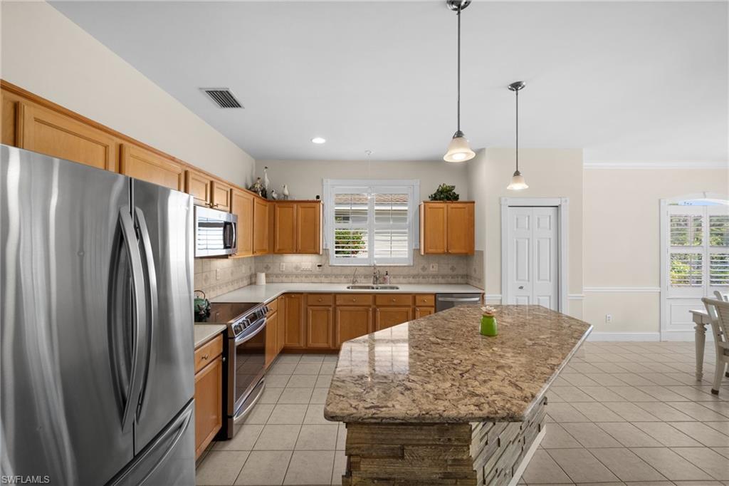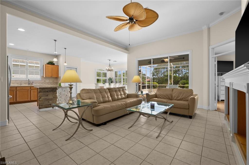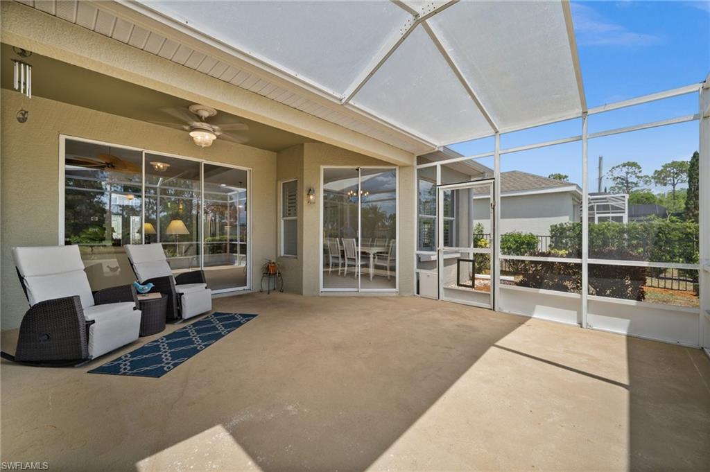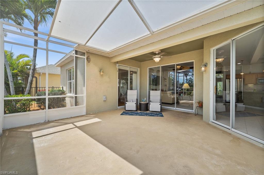 Presenting an exquisite opportunity to reside in one of Estero’s most desirable communities, this elegantly appointed 3-bedroom, 2-bathroom single-story residence in Marsh Landing combines timeless sophistication with serene natural beauty. Perfectly positioned on a prime lakefront homesite, this property offers an unparalleled lifestyle defined by privacy, comfort, and effortless convenience. Upon entering, you are greeted by an expansive, light-filled interior where soaring ceilings, refined crown molding, and custom window and door casings create a distinguished sense of space. The gourmet kitchen is a true culinary delight, showcasing polished granite countertops, premium stainless steel appliances, and abundant storage designed to meet the needs of the modern entertainer. The primary suite is a sanctuary of tranquility, offering captivating views of the shimmering lake and lush preserve. The spa-inspired ensuite bath features sleek Silestone quartz countertops, dual vanities, and an oversized walk-in shower, providing the perfect setting for relaxation and rejuvenation. This exceptional home is further enhanced by a host of thoughtful upgrades, including a NEW ROOF installed in 2023, a recently replaced A/C system (2018), and a brand-NEW WATER HEATER. An oversized 2.5-car garage provides generous space for vehicles and additional storage, while a spacious screened lanai and private, fully fenced backyard offer the ideal backdrop for alfresco living amid nature’s quiet splendor. Residents of Marsh Landing enjoy access to an array of outstanding amenities, including a beautifully renovated clubhouse, state-of-the-art fitness center, heated Olympic-sized pool and spa, tennis courts, pickleball, bocce ball, and a welcoming library. The community’s vibrant social calendar ensures a lively and enriching lifestyle. Located just moments from the premier shopping, dining, and entertainment of Coconut Point Mall, and mere minutes to the white sands of Barefoot Beach Preserve, this home offers an unrivaled location. Southwest Florida International Airport, Bonita Beach, and the cosmopolitan centers of Naples and Fort Myers are all easily accessible, placing the best of Southwest Florida within effortless reach. For those seeking a refined yet relaxed lifestyle, in a setting of natural beauty and modern convenience, this home at Marsh Landing is truly without equal. Schedule your private tour today and discover the art of living well.