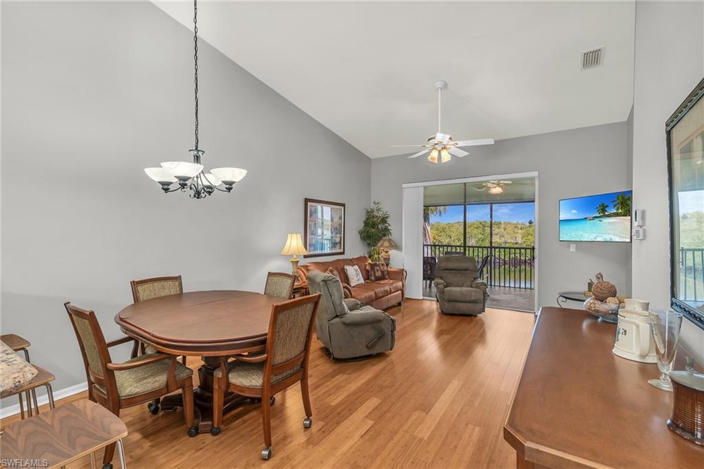 Waterfront Living Meets Modern Comfort – Best Value at $399,000! Welcome to your slice of paradise in Port of the Islands, Naples. This beautifully updated 2-bedroom, 2-bath second-floor condo offers serene canal, mangrove, and manicured lawn views—Florida living at its finest. Vaulted ceilings and a mix of bamboo wood and tile flooring create a spacious, airy feel throughout. The kitchen was tastefully updated with granite countertops, stainless steel appliances, and modern tile flooring—ready for entertaining or easy everyday living. Both bathrooms shine with new vanities, granite surfaces, and beautifully tiled showers. The in-unit laundry adds convenience, and the screened lanai - with electric storm shutter - is the perfect place to unwind and watch the water. Additional highlights include a single-car garage with built-in storage and an electric door opener, plus a newly constructed boat dock in 2023 with water and electric access and 2 fish cleaning stations - a boater’s dream! Pet lovers rejoice: the association welcomes two furry companions. Residents also enjoy a heated community pool and cabana, plus included internet, cable, and landscaping services. Affordable, updated, and move-in ready - this is the best waterfront value in the area!