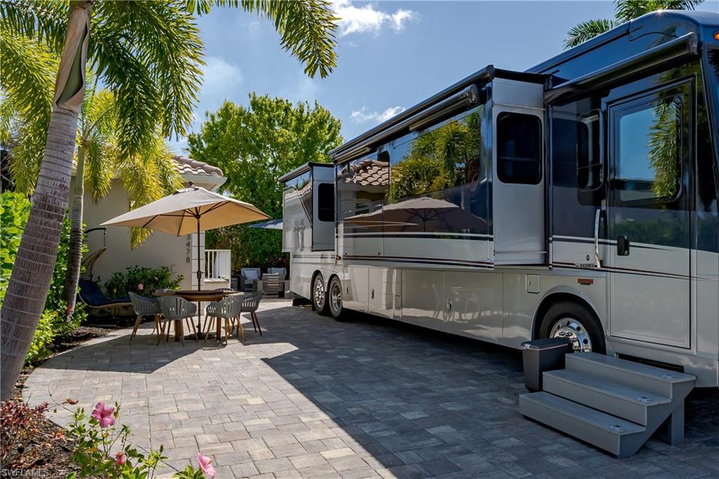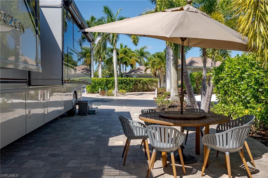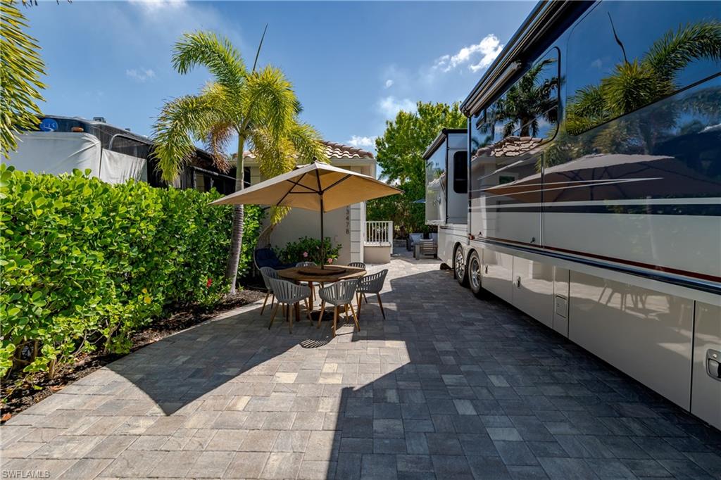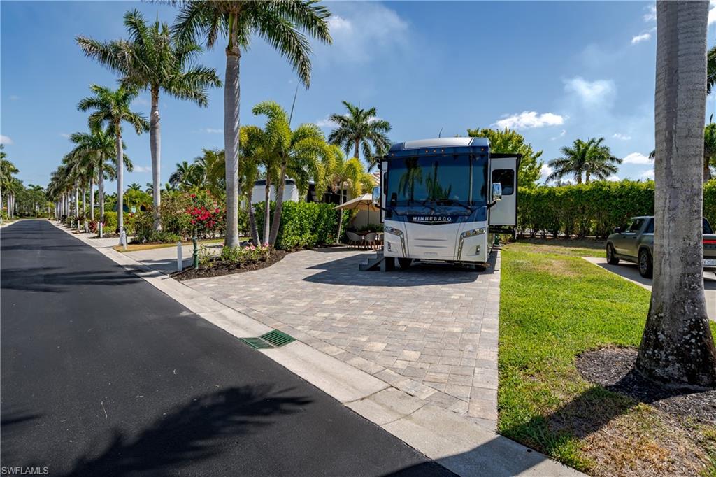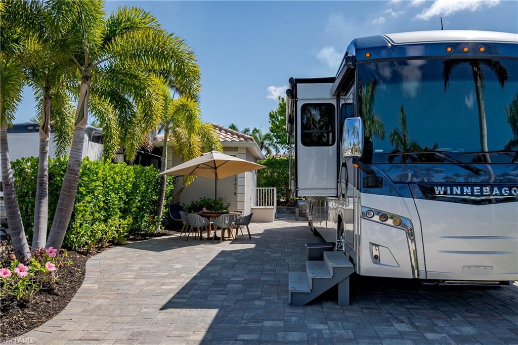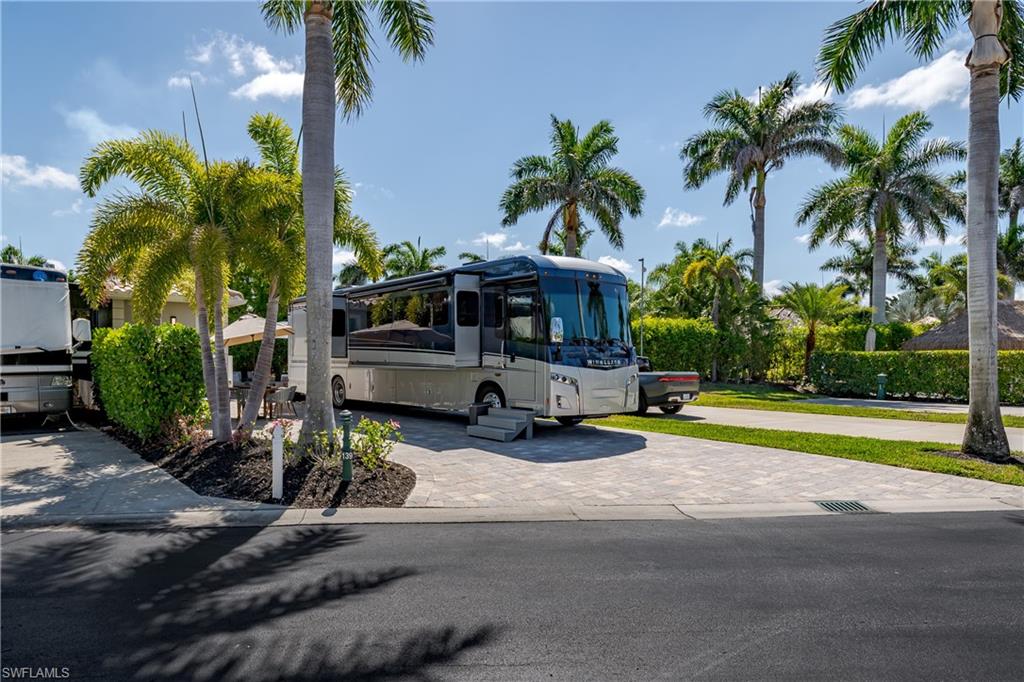 Lot 139 - Welcome to the beautiful gated community of Naples Motorcoach Resort! As you approach the gate you are welcomed by the beautiful flowers and fountains. Once the gate opens you are facing a magnificent fountain and landscaping that fronts the circle drive for the clubhouse. You turn left and then immediately right and head to your oasis. You back your coach into your paradise. After you set up your coach you immediately go outside and settle into your private sanctuary to relax. You feel and hear the beautiful breezes as you look at your landscaping. You decide to invite friends over this evening and share in your beautiful oasis. You head to your well appointed casita and decide a martini tasting is in order for the evening (well you are the martini expert..). You make a few different types of martinis and put them in the fridge. You now assemble a few charcuterie boards for friends to snack on. Once again you marvel at this casita, an amazing living space with a pull out couch for relaxing, the wall color just perfect to bring out that inner calm. The kitchen with its amazing tile backsplash how it ties the countertops and flooring together, hmm.. must of been a professional decorator who put this space together, and you are grateful. Perhaps your most favorite is the huge shower.... So nice to have all of this room. As you exit, the freshly painted color scheme and new light fixtures just highlight your wonderful space. You have arrived in Paradise, time to have the friends over and share in your luxury! Naples Motorcoach Resort is a Boutique Class A only resort and boasts a beautiful infinity pool, spa, exercise room, men and ladies' saunas, pickleball courts and a catering kitchen that owners can use. A clubhouse for events that are sponsored by the resort or you can reserve for your own gathering. Two satellite pools each with a spa their own rest rooms and a laundry room. We can't forget your furry best friend; the resort also has a dog park! Perhaps the most unique feature is that this is the only Class A Resort in Naples with it's own (inside the gates) gulf access via the community boat ramp. Don't have your own boat? No worries.. take one of the community kayaks and explore the area, head to the gulf, stop at one of the islands and admire the wildlife. The options are endless in this paradise..... Call today and make your dreams a reality