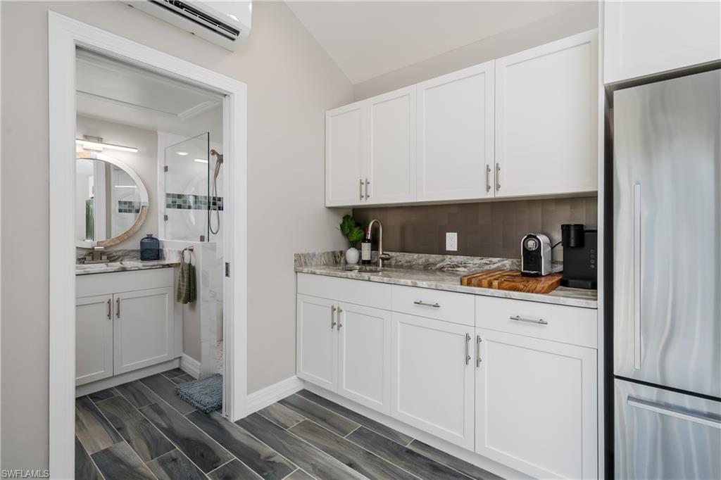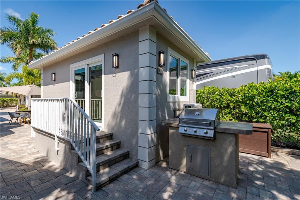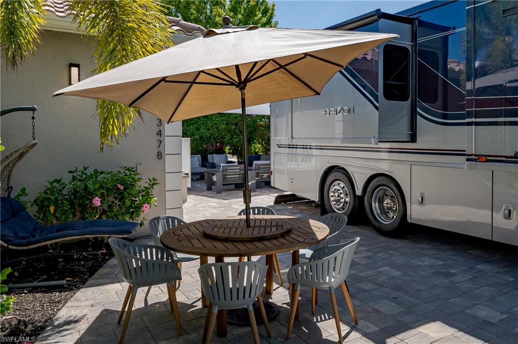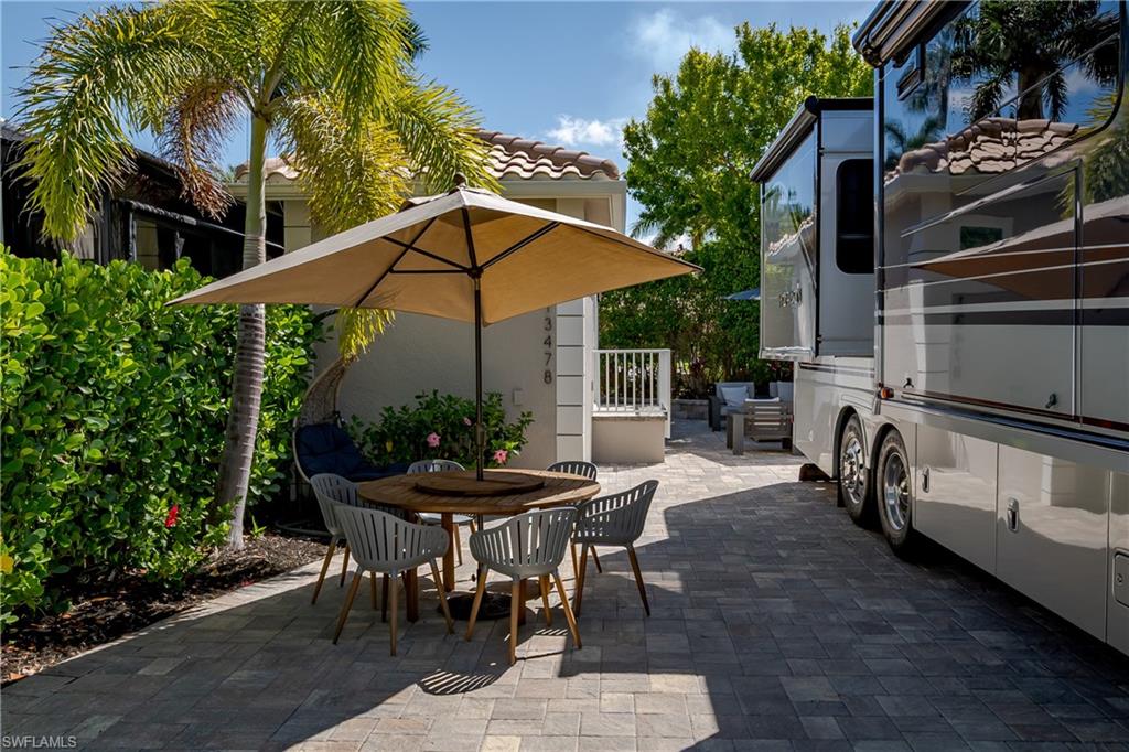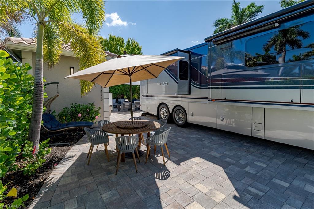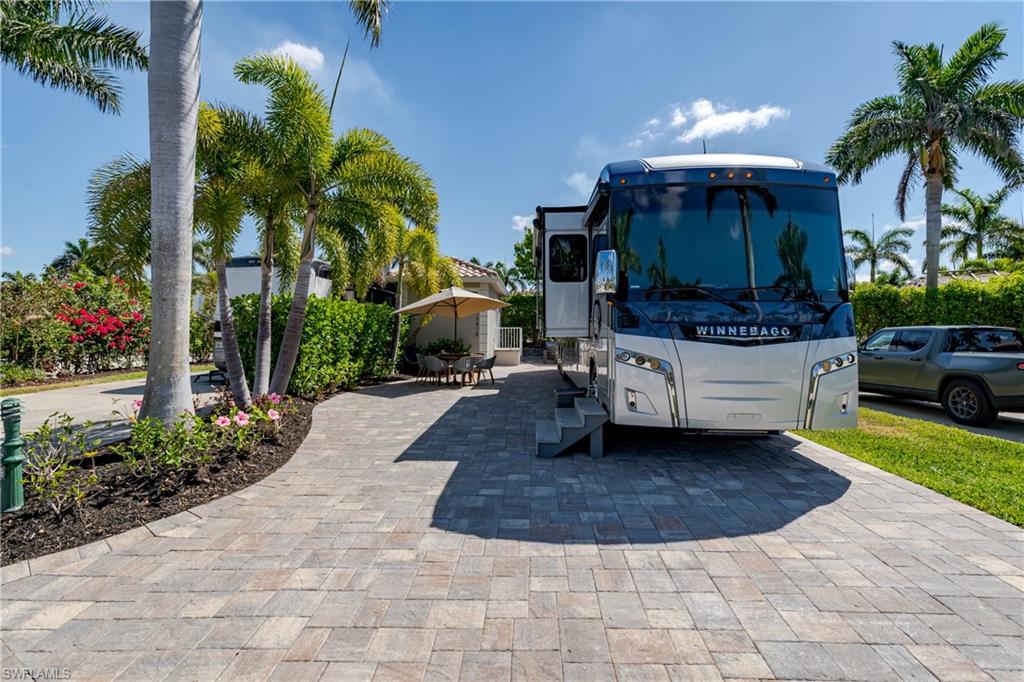 Lot 139 - Welcome to the beautiful gated community of Naples Motorcoach Resort! As you approach the gate you are welcomed by the beautiful flowers and fountains. Once the gate opens you are facing a magnificent fountain and landscaping that fronts the circle drive for the clubhouse. You turn left and then immediately right and head to your oasis. You back your coach into your paradise. After you set up your coach you immediately go outside and settle into your private sanctuary to relax. You feel and hear the beautiful breezes as you look at your landscaping. You decide to invite friends over this evening and share in your beautiful oasis. You head to your well appointed casita and decide a martini tasting is in order for the evening (well you are the martini expert..). You make a few different types of martinis and put them in the fridge. You now assemble a few charcuterie boards for friends to snack on. Once again you marvel at this casita, an amazing living space with a pull out couch for relaxing, the wall color just perfect to bring out that inner calm. The kitchen with its amazing tile backsplash how it ties the countertops and flooring together, hmm.. must of been a professional decorator who put this space together, and you are grateful. Perhaps your most favorite is the huge shower.... So nice to have all of this room. As you exit, the freshly painted color scheme and new light fixtures just highlight your wonderful space. You have arrived in Paradise, time to have the friends over and share in your luxury! Naples Motorcoach Resort is a Boutique Class A only resort and boasts a beautiful infinity pool, spa, exercise room, men and ladies' saunas, pickleball courts and a catering kitchen that owners can use. A clubhouse for events that are sponsored by the resort or you can reserve for your own gathering. Two satellite pools each with a spa their own rest rooms and a laundry room. We can't forget your furry best friend; the resort also has a dog park! Perhaps the most unique feature is that this is the only Class A Resort in Naples with it's own (inside the gates) gulf access via the community boat ramp. Don't have your own boat? No worries.. take one of the community kayaks and explore the area, head to the gulf, stop at one of the islands and admire the wildlife. The options are endless in this paradise..... Call today and make your dreams a reality