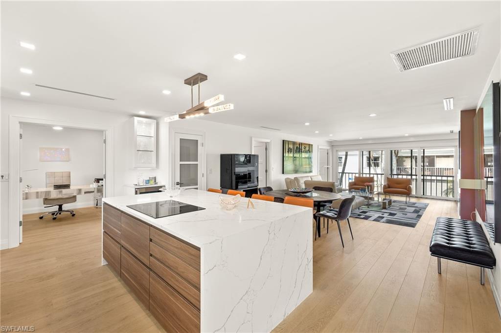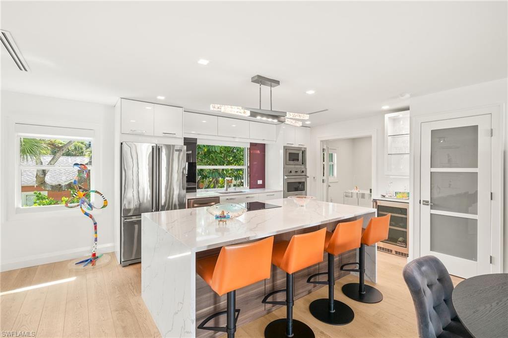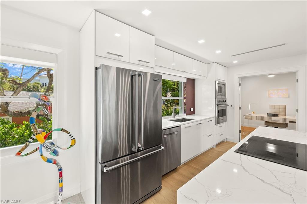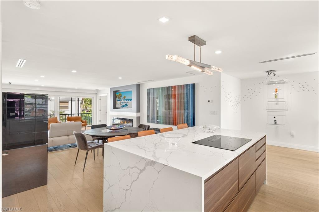 Welcome to Ashley Court in premier Olde Naples location. This exceptional 3-bedroom, 2-bathroom corner end unit residence that feels like a house has been masterfully redesigned for today’s modern living. A true chef’s eat-in kitchen ideal for entertaining replete with Viking appliances including induction cooktop, bar area with wine refrigerator, oversized quartz island with waterfall edges and European style flat panel contemporary cabinetry. Spacious living room with wall of glass and a dramatic 74 inch linear fireplace complemented by an OLED-TV. Master suite oasis with spacious bedroom leads to a spa-like bath with oversized walk-in shower, separate vanities and a 12 foot long walk-in closet with illuminated shoe display. Gorgeous Legno Bastogne white oak hardwood flooring imported from France. Perfect location merely a block away from the elegant dining and shopping of 3rd Street South, and just 3 blocks from the pristine shores of the Gulf. Completely transformed in 2018, the home features a modern open floor plan with elevated ceilings and contemporary design elements throughout. Ashley Court, a charming residential boutique building of only 8 units offers the perfect blend of sophistication and comfort in an unparalleled location. Convenient to Naples and Fort Myers airports as well as I-75.