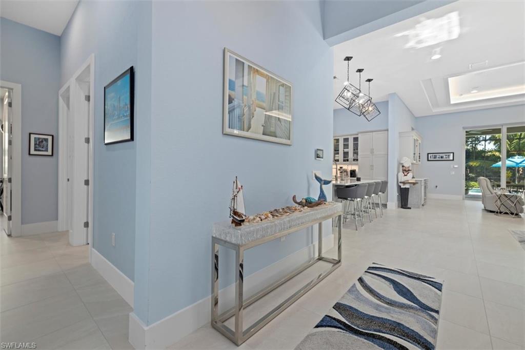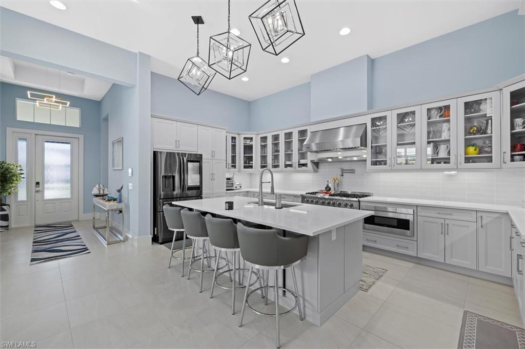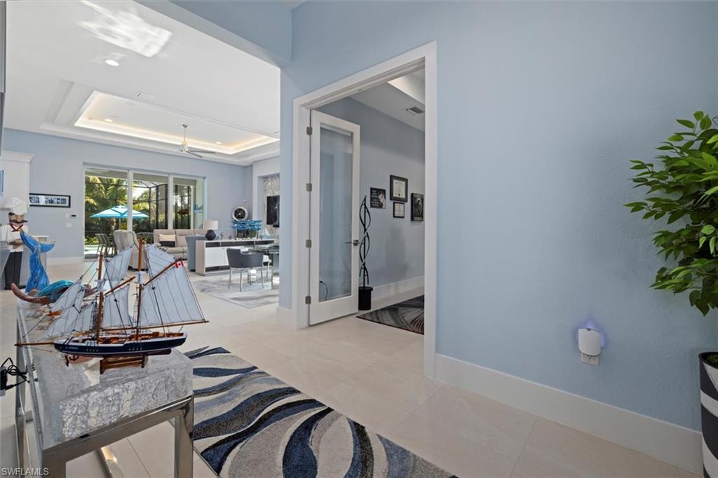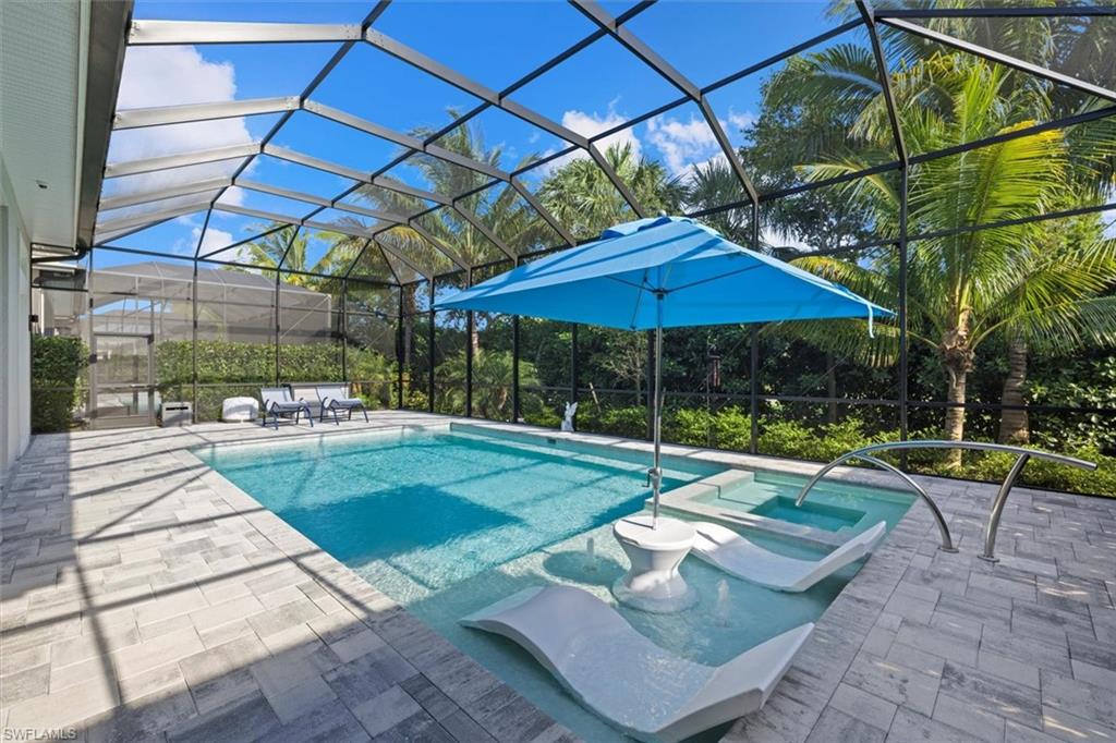 STOCK DEVELOPMENT Luxury local home builder! CDD paid in FULL! GORGEOUS newer home, 3 bedrooms plus den Cambria model with many upgrades. Gorgeous outdoor lanai with large pool featuring a sun shelf for lounging. Inside the home is a large open kitchen/dining/living space with a chef's style kitchen featuring a 48" Thor gas stove top with double ovens and a red-light warming shelf. Alongside the kitchen and living room is a built-in dry bar with lit shelving and a wine refrigerator; great when entertaining. Throughout the living area and master are custom tray ceilings with Cove accent lighting and surround sound including the lanai. Each room has custom Smart blinds and the closets are completed with custom California closets. Relax in the master bath heated and bubbling aromatherapy spa tub. The layout of the home is perfect while having guests in the front guest bedrooms and the master bedroom in the back of the home overlooking the lanai. The large, covered lanai is a perfect spot for sitting by the fire and cooking on the gas grill at the outdoor kitchen area.This home has a full-house generator and Kinetico water system. All systems in the home are seamlessly digitally controlled for your convenience and peace of mind. The community is about 4,000 acres within the gates providing a full-service clubhouse with resort style pool, dining, fitness, spa, tennis, pickleball, bocce and a playground. Tarpon Beach Club and Marina are available for optional membership to Fiddler 's Creek residents only. Fiddler's Creek Golf Club has optional membership. Fiddler's Creek is conveniently located to nearby Marco Island and downtown Naples.