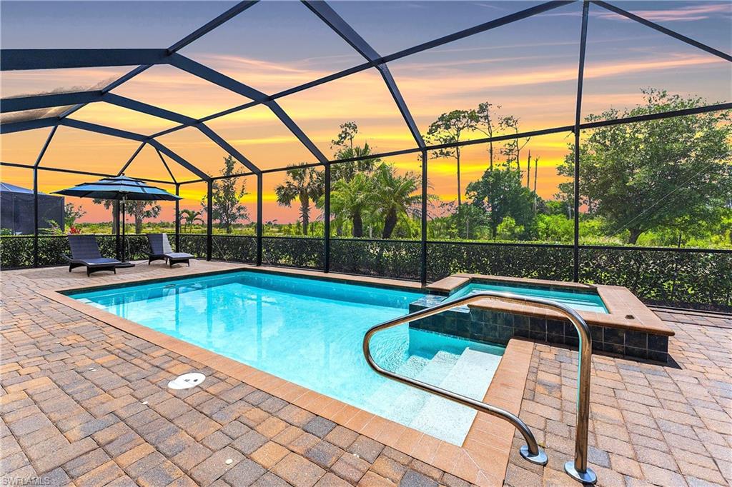 HIGHLY DESIRABLE "SORRENTO" MODEL with POOL/SPA ON PEACEFUL PRESERVE is AVAILABLE NOW IN THE PLACE AT CORKSCREW!... This 2-story residence built by Lennar Homes in 2018 offers 5 Bedrooms + Loft/Flex/Open Den, 4 Full Baths (one full bath is also a POOL BATH), Powder Bath, 3 Car Split Garage, 3,357sf living area. This home showcases a POOL AND SPA with SOUTHWEST rear exposure overlooking a PRIVATE PRESERVE (NO NEIGHBORS Behind You). Pet lovers… there is ample room for you to add a fence behind the pool cage for your furry friends to play. The flexible layout of this home boasts a 2 STORY GREATROOM, Formal Living and Dining areas and a GUEST BEDROOM equipped with a MURPHY BED and FULL BATH (also serves as a POOL BATH) downstairs. Upstairs you'll find the SPACIOUS PRIMARY SUITE with dual closets and a Primary Bath with double sinks and a separate soaking tub and shower. The Primary Suite is joined by 3 additional Guest Bedrooms, 2 Full Baths (one guest bedroom is ensuite), and an Open Loft that can be utilized as a Den. This home showcases Plank Porcelain Tile, White Cabinetry, Crown Molding, Granite Tops, Decorative Light Fixtures, and a Custom Backsplash. PROPERTY IS HIGH AND DRY AND LOCATED IN FLOOD ZONE X... NO FLOOD INSURANCE REQUIRED! The amenities at The Place at Corkscrew are second to none!... Resort Pool w/100' Waterslide & Spa, Indoor Restaurant and Bourbon Bar, Cafe, Outdoor Bar, Fitness Center, Movement Studio, Tennis, Pickleball, Bocce, Basketball, Playground, Dog Park, Childwatch, Spa Services, 2 Entry Gates. Just Minutes to Schools, Shopping, Restaurants, Airport, Beaches. For GOLF ENTHUSIASTS, the highly rated Jack Nicklaus designed OLD CORKSCREW GOLFCLUB is open to the public and located directly across the street from the community entrances! NEW PUBLIX GROCERY STORE PLAZA, JUST 1.4 MILES AWAY! OTHER TENANTS INCLUDE DUNKIN DONUTS, UPS STORE, LEGNO ITALIAN RESTAURANT, NAIL SALON, DENTAL OFFICE, AND MORE!
