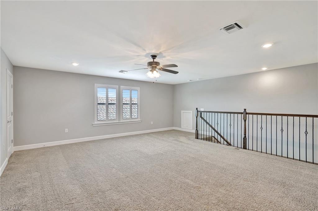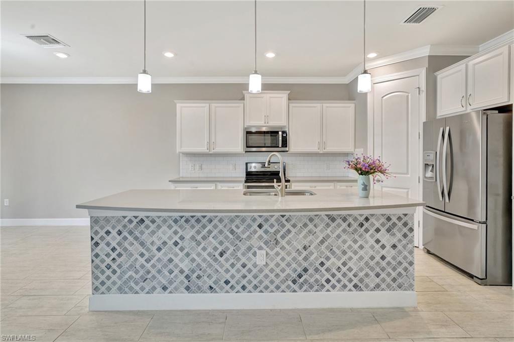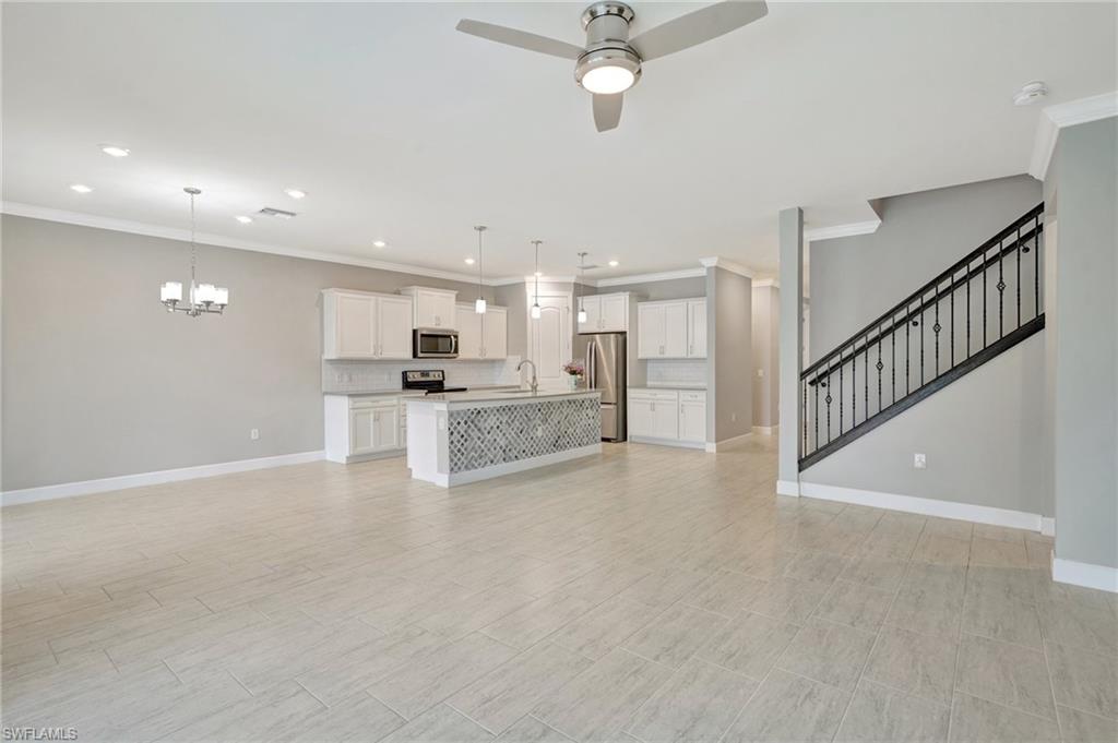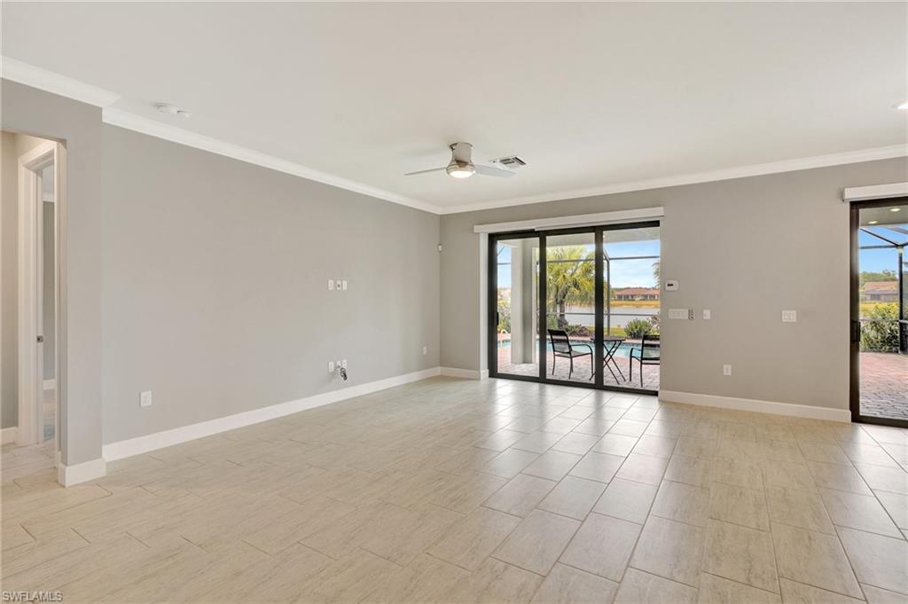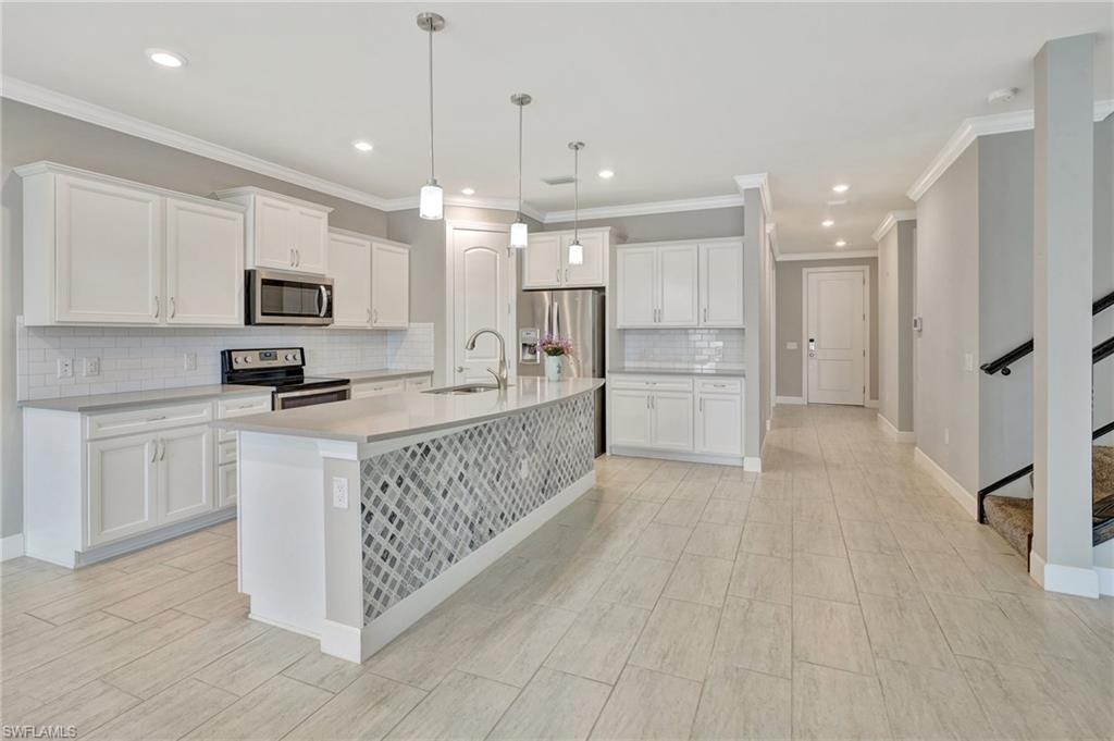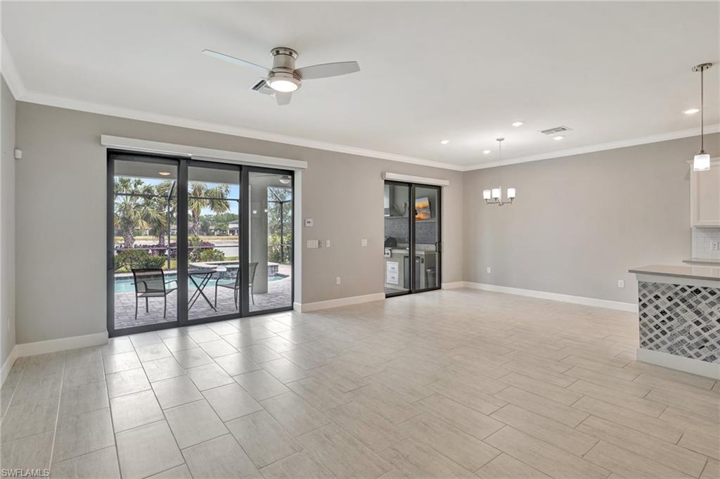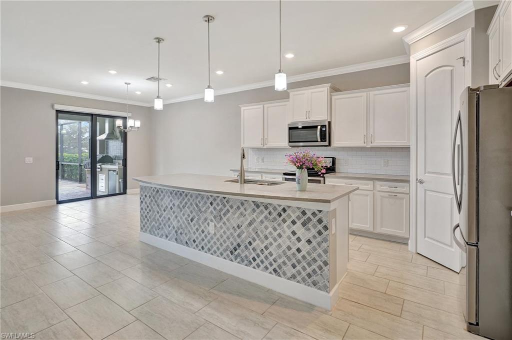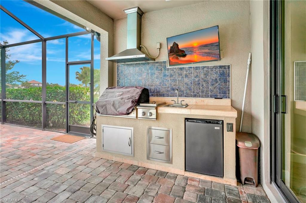 Experience luxury living in this stunning 2-story home, perfectly positioned on a premium lot with sweeping views of the tranquil lake, saltwater pool, and spa—framed by unforgettable Florida sunsets. Spanning over 2,850 square feet, this beautifully designed residence features 4 bedrooms plus a den, 2.5 bathrooms, and an expansive loft ideal for a second living space, playroom, or media area. The open-concept main floor welcomes you with elegant tile flooring throughout and an abundance of natural light streaming through wide impact-resistant glass sliding doors. These doors open seamlessly to the outdoor living area, offering the best of Florida’s indoor-outdoor lifestyle, where living begins. At the heart of the home, the gourmet kitchen boasts stainless steel appliances, a walk-in pantry, and a generous center island—perfect for both everyday meals and entertaining. The private main-floor owner’s suite offers a spacious retreat with an oversized walk-in closet, dual vanities, and a beautifully tiled walk-in shower. Upstairs, you'll find a versatile loft space, three additional bedrooms, and a full bathroom—ideal for family or guests. Step outside to your own backyard oasis, complete with a fully equipped summer kitchen featuring a built-in grill, sink, refrigerator, pavers, and a wall-mounted TV—perfect for alfresco dining and entertaining. Additional highlights include a 2-car attached garage, full hurricane impact glass for peace of mind, and access to resort-style amenities within the highly sought-after gated community of The Place at Corkscrew. Enjoy world-class facilities including a lagoon-style pool, on-site restaurant and bourbon bar, fitness center, tennis and pickleball courts, spa services, and more. All just minutes from Miromar Outlets, FGCU, Hertz Arena, I-75, and RSW International Airport—this is Southwest Florida living at its finest, where living begins.