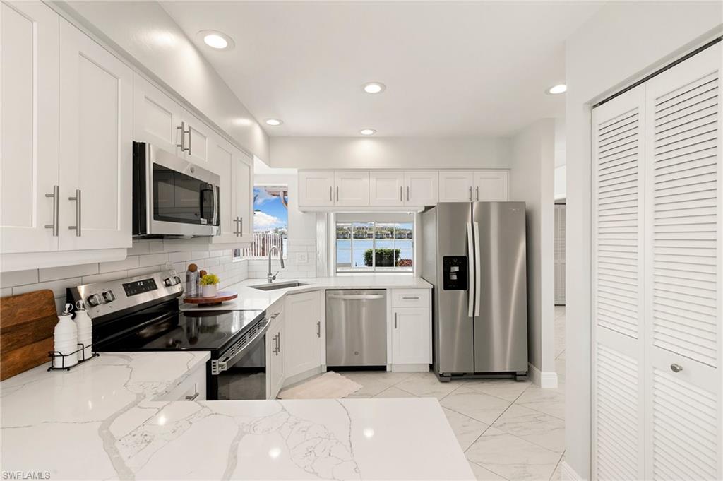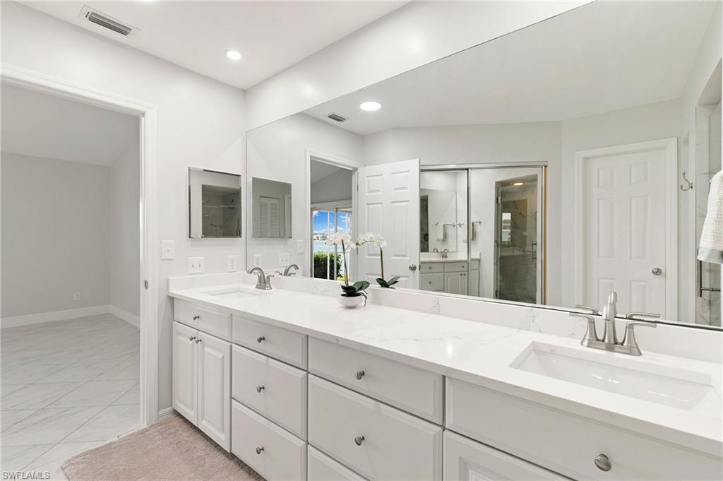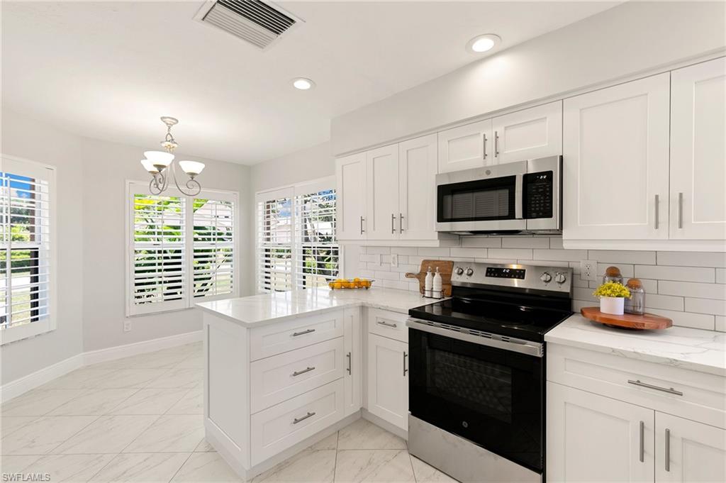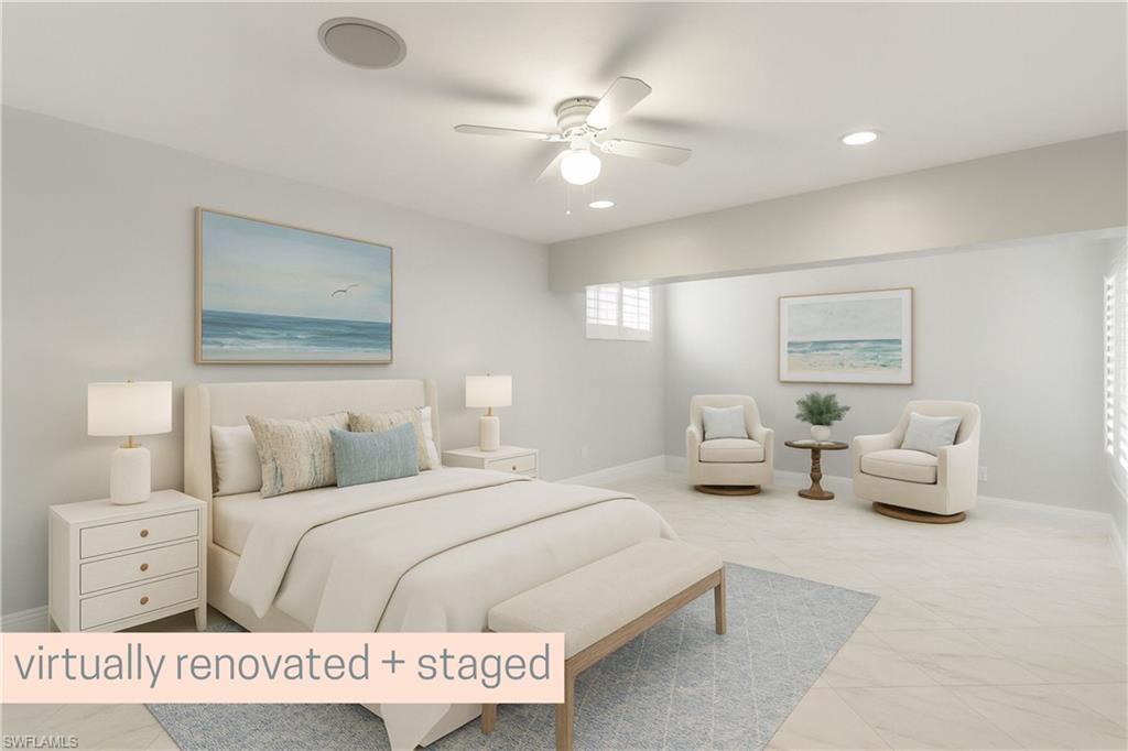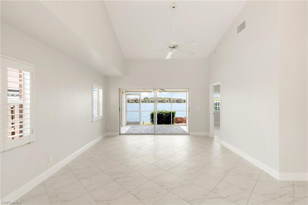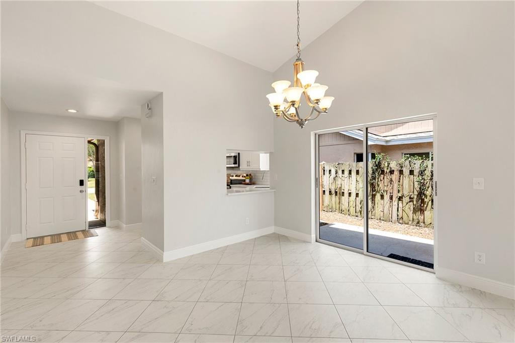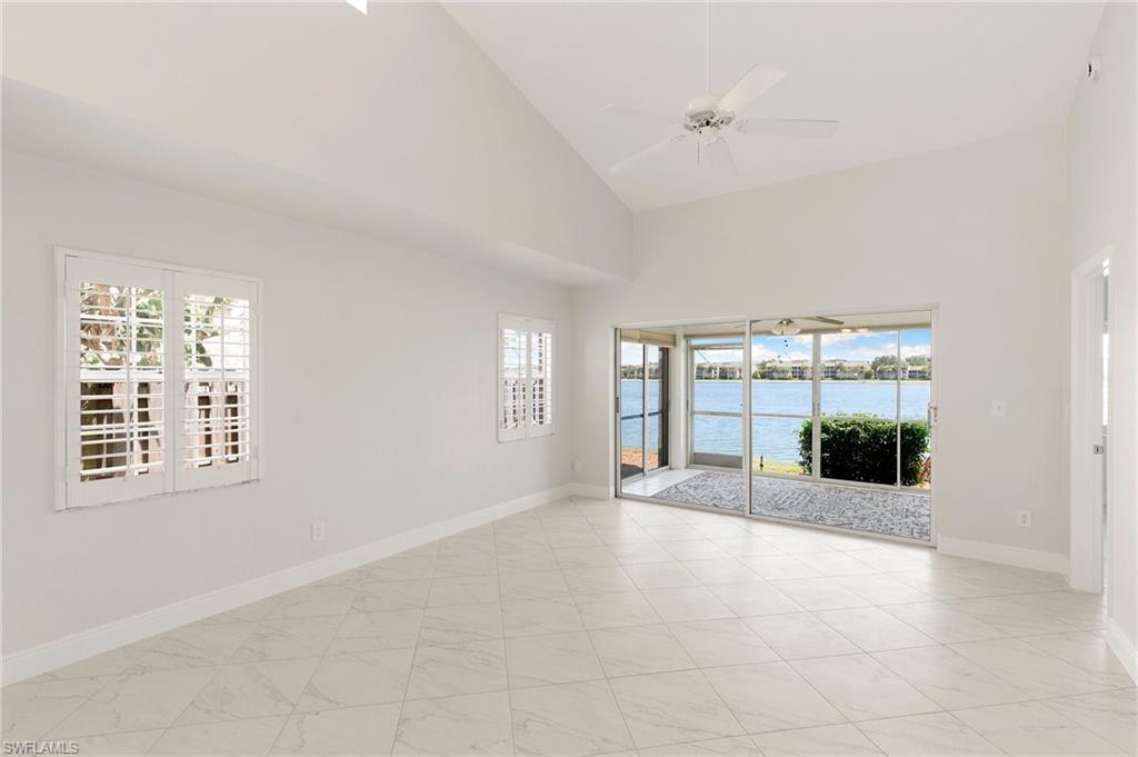 This lakefront villa offers stunning southern views of a 42-acre lake from the kitchen, living room, dining room, and primary bedroom. It’s bright and airy with vaulted ceilings, fresh paint, and a recently renovated kitchen featuring quartz countertops with stainless steel appliances. The ENTIRE home was been re-piped (Oct 2025) + a new AC has been installed (Oct 2025)! Both bedrooms are oversized, and the updated bathrooms also have sleek quartz finishes. Enjoy the breeze in the screened lanai or keep the glass closed and enjoy the warm sun. The 2-bedroom, 2-bath layout includes a 1-car garage and sits in a gated community just 4 miles from the beach plus it’s walkable to the farmers market, grocery stores, bakeries, and gyms. The community itself is a hidden gem, with two swimming pools, a weight room, five clay tennis courts, a playground, shuffleboard, bocce, and basketball courts. There’s also a 1.5-mile walking path shaded by mature trees and surrounded by lush tropical landscaping. Low HOA fees make it even more appealing.
