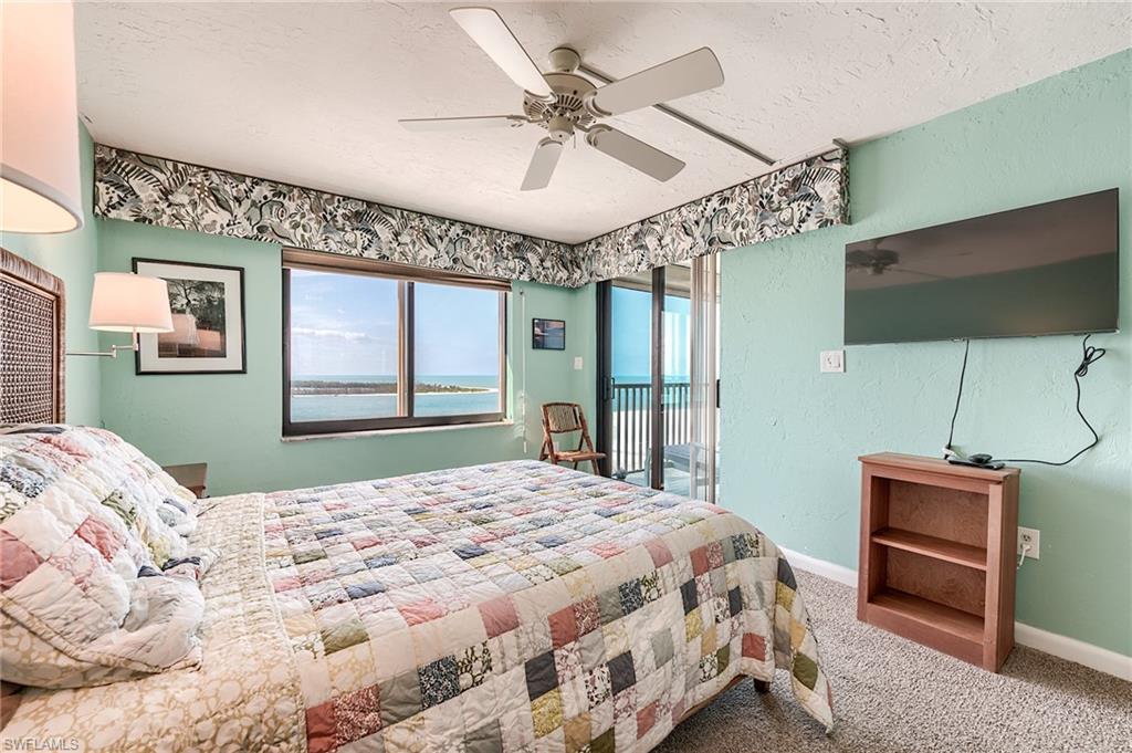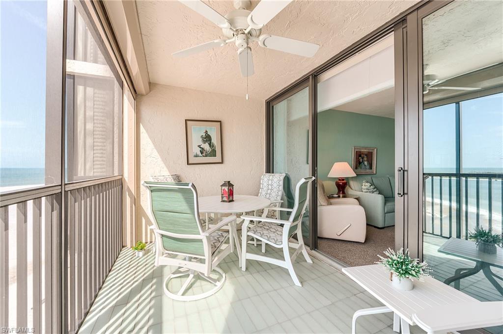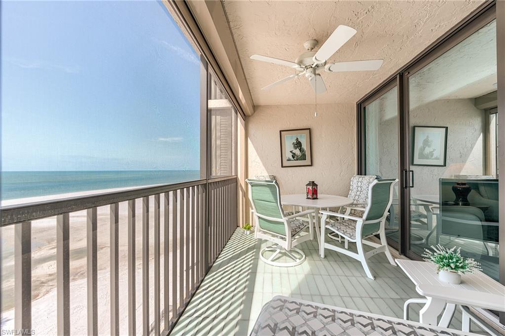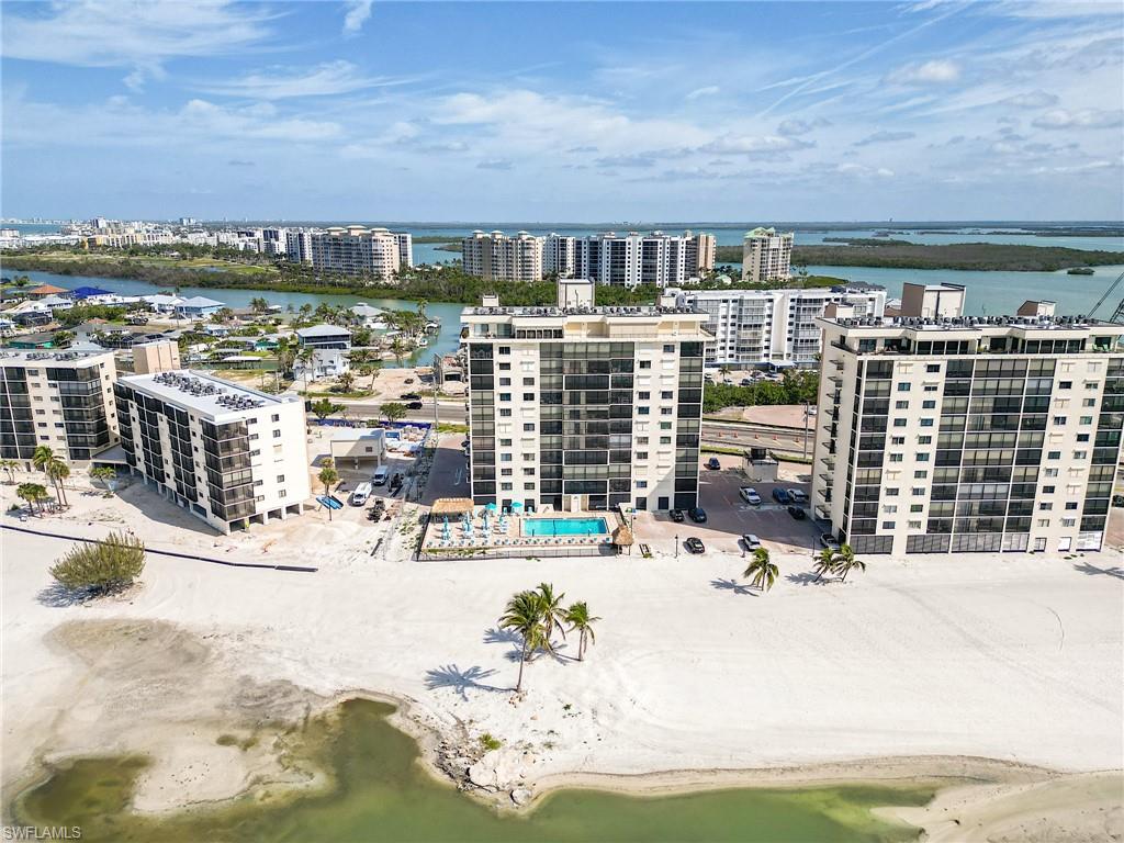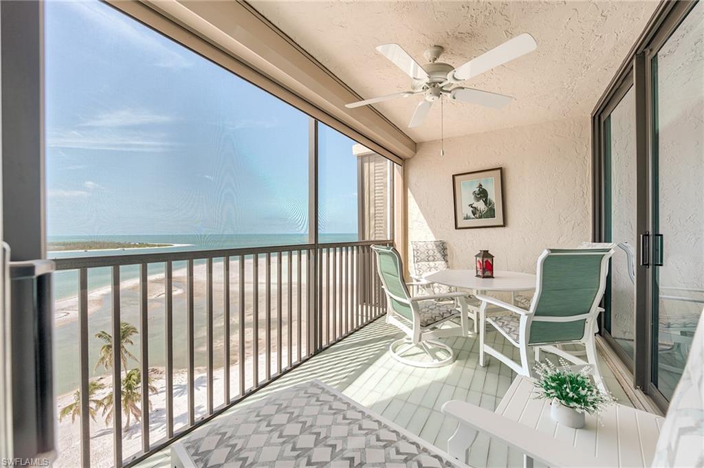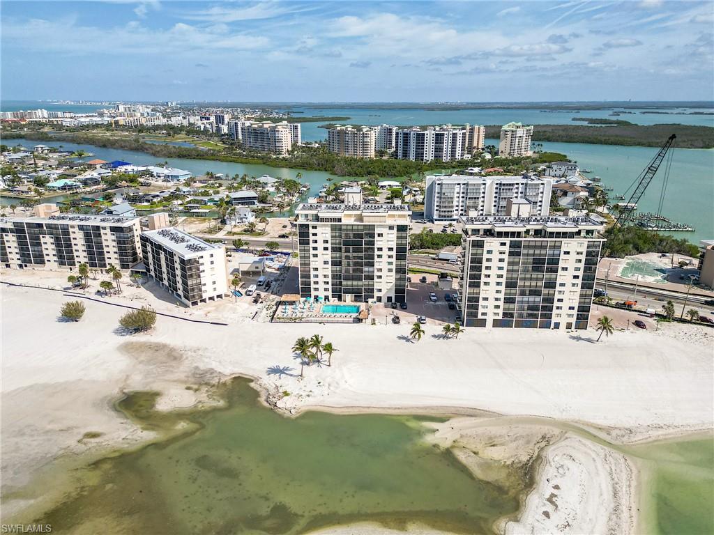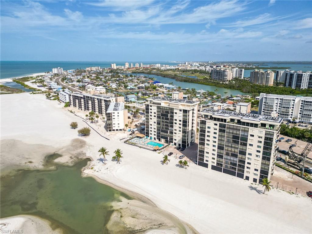 Enjoy elevated Gulf-front living from this 9th-floor spotless residence located on the quiet south end of Estero Island on Ft Myers Beach. This thoughtfully designed 2-bedroom, 2-bath unit offers sweeping views of the Gulf of Mexico, Lovers Key State Park, and Estero Bay from both the living space and the spacious screened lanai. The layout features an open-concept living and dining area, a well-appointed kitchen with granite countertops and appliances, hurricane shutters for the windows and sliders for peace of mind. The primary suite offers direct lanai access, beautiful water views, a walk-in closet, and spacious bathroom. Additional features include tile and carpet flooring, a dedicated parking space, and a private storage room conveniently located on the same floor. Islands End is a Gulf-front community offering resort-style amenities including two swimming pools, a spa, tennis and pickleball courts, BBQ areas, kayak storage, a fishing pier, and a community room. Significant repairs and updates have been completed following Hurricane Ian, and the building is fully compliant with SIRS as of November 2024. The reserve study has also been completed and approved. This is a wonderful opportunity to enjoy coastal living with both sunrise and sunset views in a well-maintained and beautifully located community.