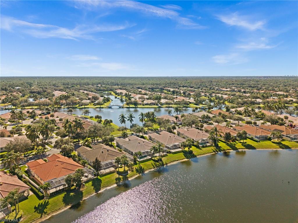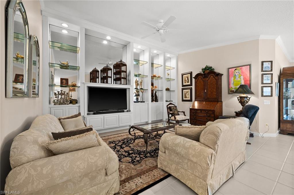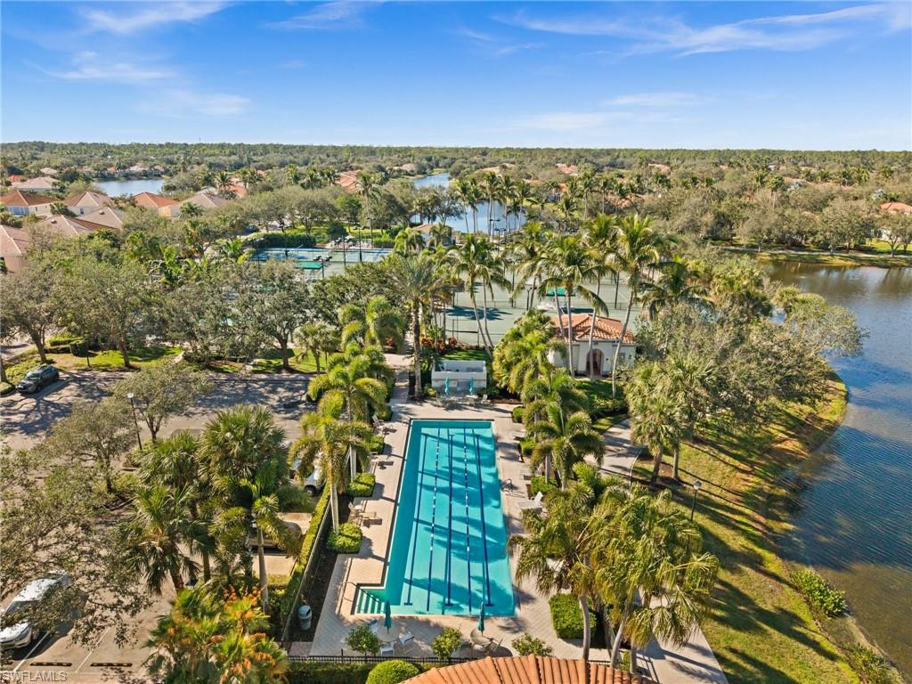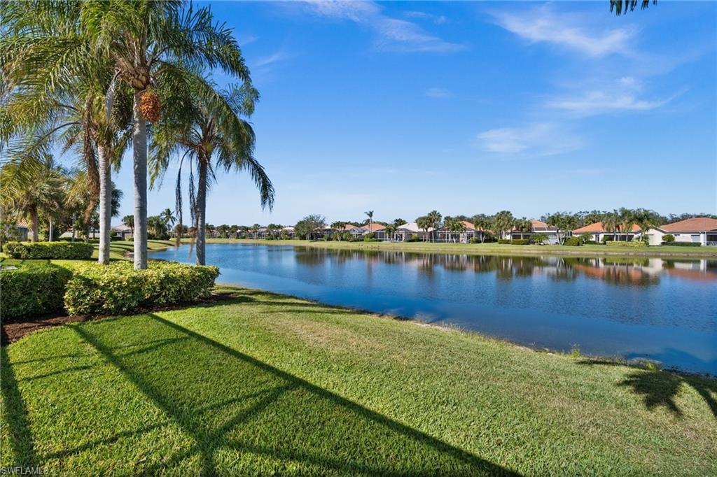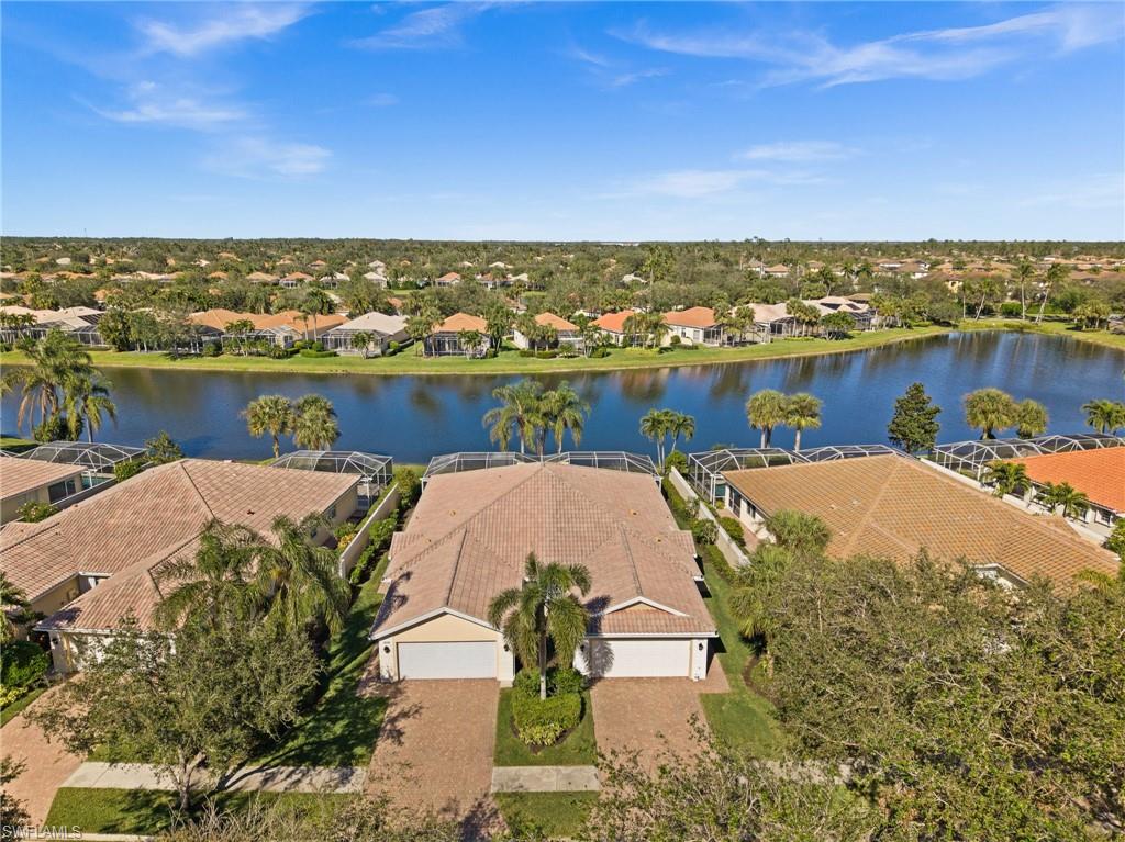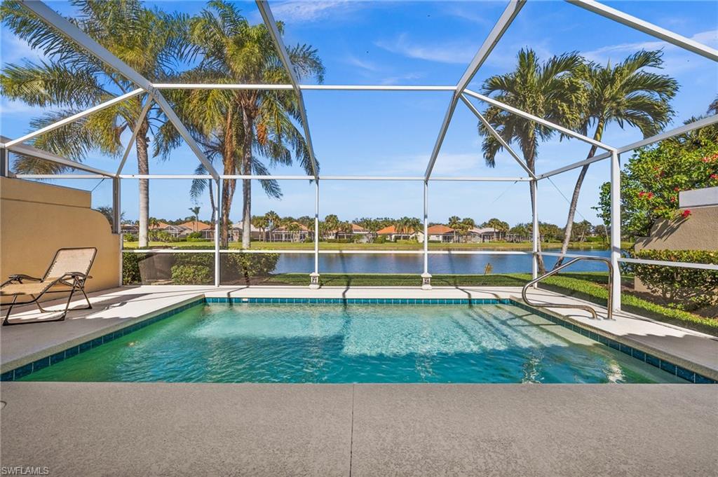 Welcome to this meticulously maintained 2-bedroom, 2-bathroom villa, offering 1,540 square feet of thoughtfully designed living space in highly coveted Island Walk. Perfectly situated off of Vanderbilt Beach Road with quick access to I-75, this home offers convenience and a serene retreat all in one. The villa greets you with a charming paver driveway leading to a spacious 2-car garage. Inside, every detail has been designed for comfort and style, featuring tile flooring and crown molding throughout. The spacious living area features a gorgeous built-in for added charm and functionality, while the large dining area is perfect for hosting gatherings. The pristine kitchen provides ample cabinetry and countertop space, ready to accommodate all your culinary needs. An ample primary bedroom serves as a luxurious retreat, offering tranquil lake views and an ensuite bathroom with dual sinks and a walk-in glass-enclosed shower. The guest bedroom is equally spacious and comfortable, perfect for visitors or a home office. Outdoors a private screened lanai awaits, complete with a sparkling pool and privacy wall, offering the ultimate outdoor oasis to relax or entertain while enjoying the stunning lake views. A large in-residence laundry room with additional storage and a utility sink adds convenience, while roll-down hurricane shutters throughout provide peace of mind. Residents of Island Walk enjoy an unparalleled array of resort-style amenities including a clubhouse, community and lap pools, beauty salon, fitness center, pickleball and tennis courts, putting green, bocce court, bike and jog paths, and an on-site restaurant. Located just minutes from Naples’ finest shopping, dining, and entertainment options, this home combines a peaceful lakeside setting with unbeatable access to everything the area has to offer.