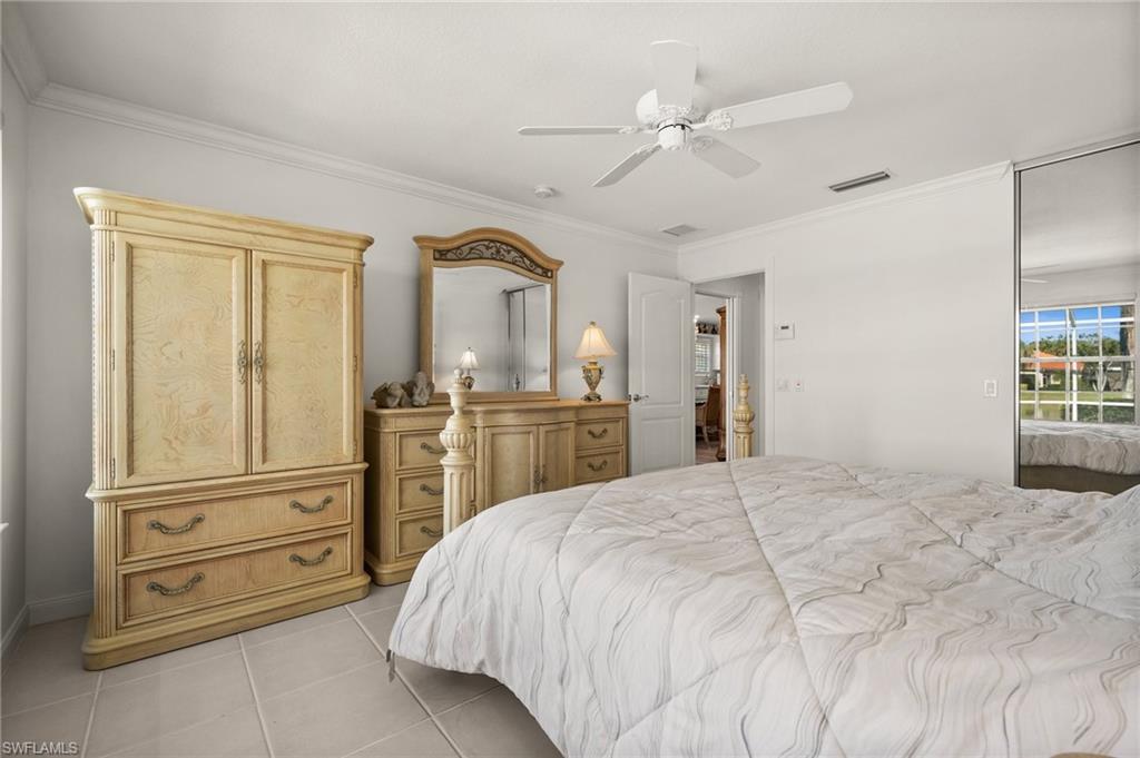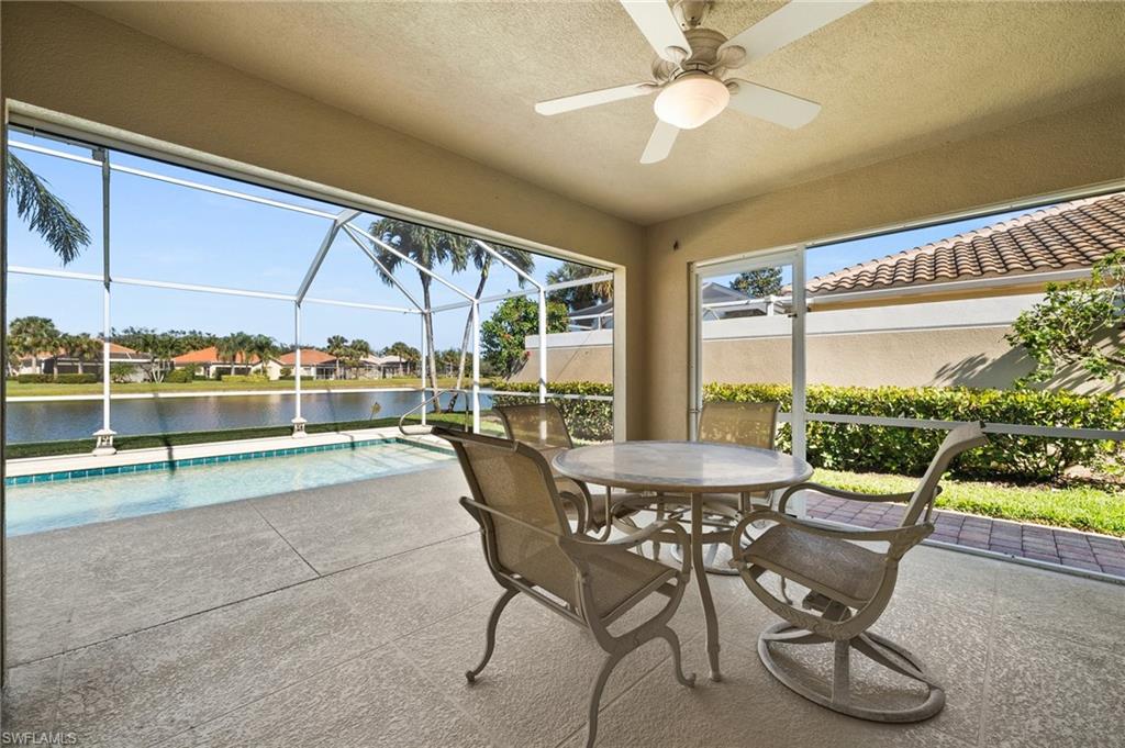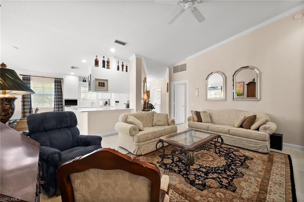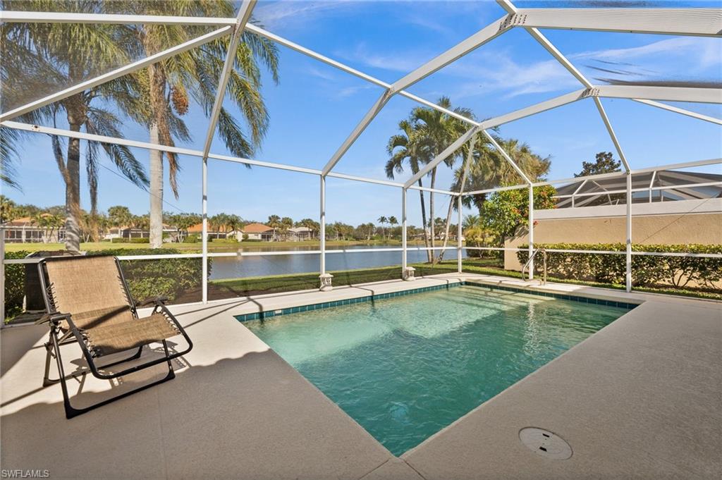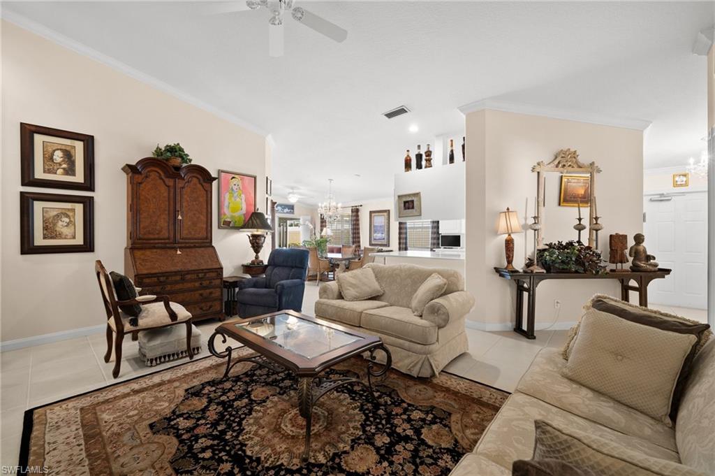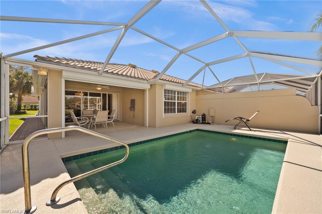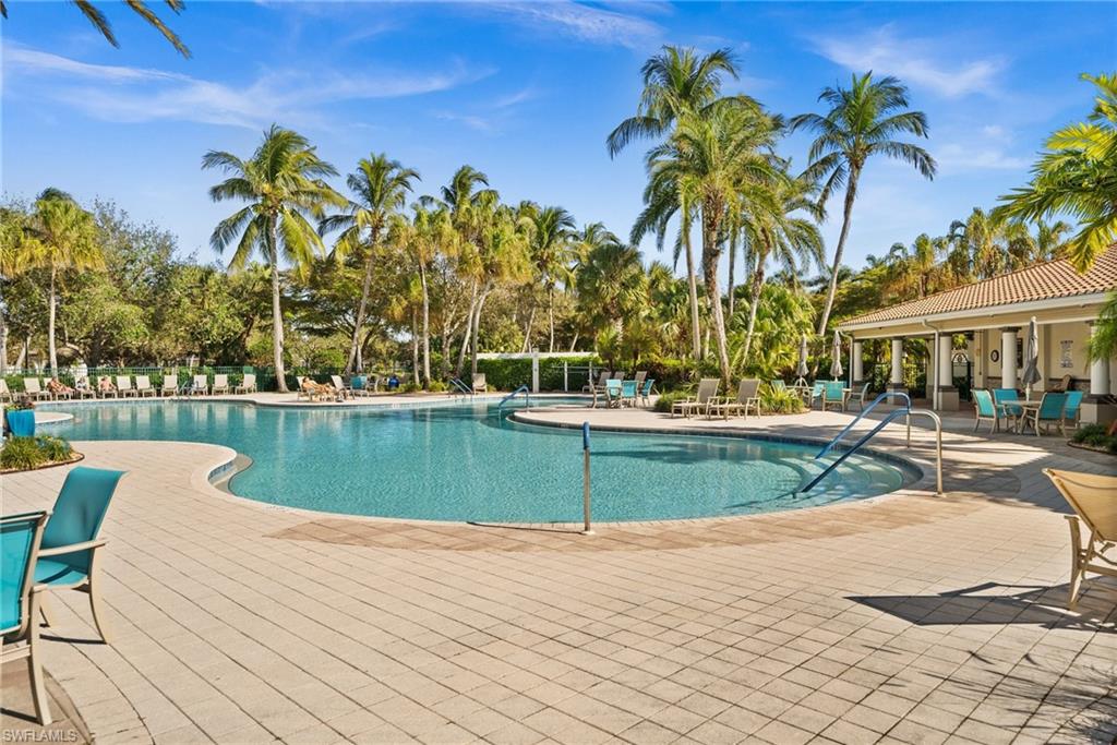 Welcome to this meticulously maintained 2-bedroom, 2-bathroom villa, offering 1,540 square feet of thoughtfully designed living space in highly coveted Island Walk. Perfectly situated off of Vanderbilt Beach Road with quick access to I-75, this home offers convenience and a serene retreat all in one. The villa greets you with a charming paver driveway leading to a spacious 2-car garage. Inside, every detail has been designed for comfort and style, featuring tile flooring and crown molding throughout. The spacious living area features a gorgeous built-in for added charm and functionality, while the large dining area is perfect for hosting gatherings. The pristine kitchen provides ample cabinetry and countertop space, ready to accommodate all your culinary needs. An ample primary bedroom serves as a luxurious retreat, offering tranquil lake views and an ensuite bathroom with dual sinks and a walk-in glass-enclosed shower. The guest bedroom is equally spacious and comfortable, perfect for visitors or a home office. Outdoors a private screened lanai awaits, complete with a sparkling pool and privacy wall, offering the ultimate outdoor oasis to relax or entertain while enjoying the stunning lake views. A large in-residence laundry room with additional storage and a utility sink adds convenience, while roll-down hurricane shutters throughout provide peace of mind. Residents of Island Walk enjoy an unparalleled array of resort-style amenities including a clubhouse, community and lap pools, beauty salon, fitness center, pickleball and tennis courts, putting green, bocce court, bike and jog paths, and an on-site restaurant. Located just minutes from Naples’ finest shopping, dining, and entertainment options, this home combines a peaceful lakeside setting with unbeatable access to everything the area has to offer.