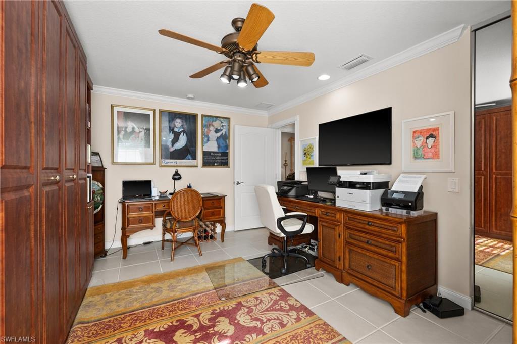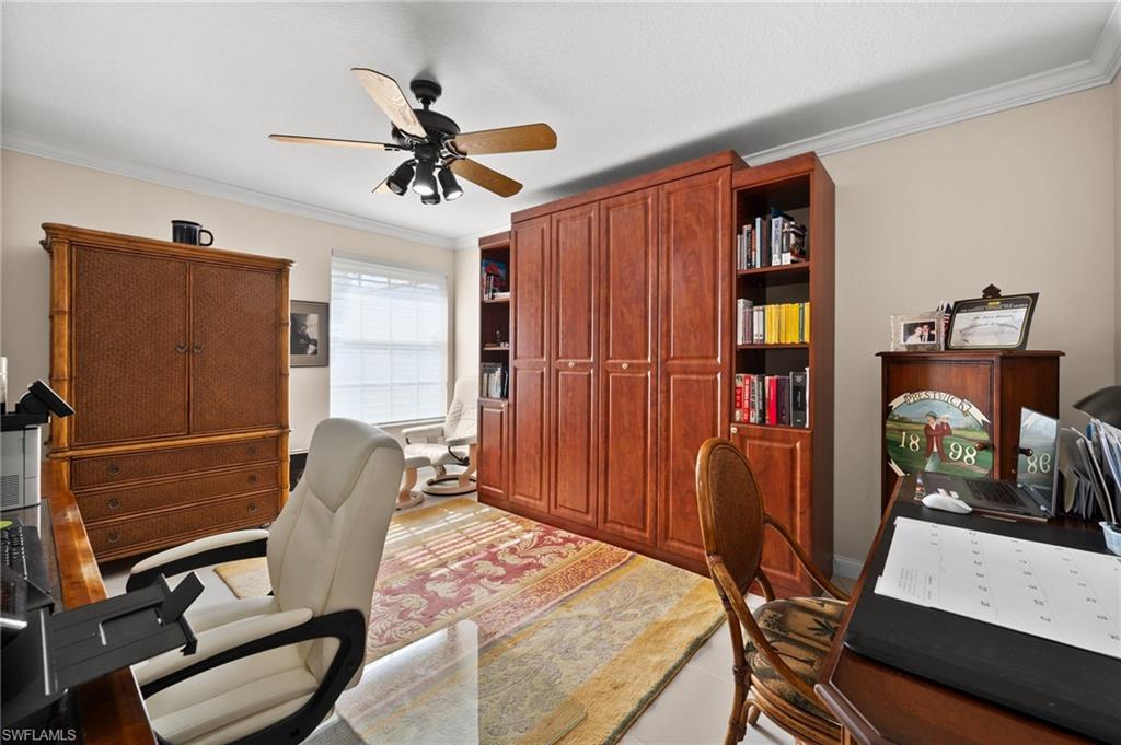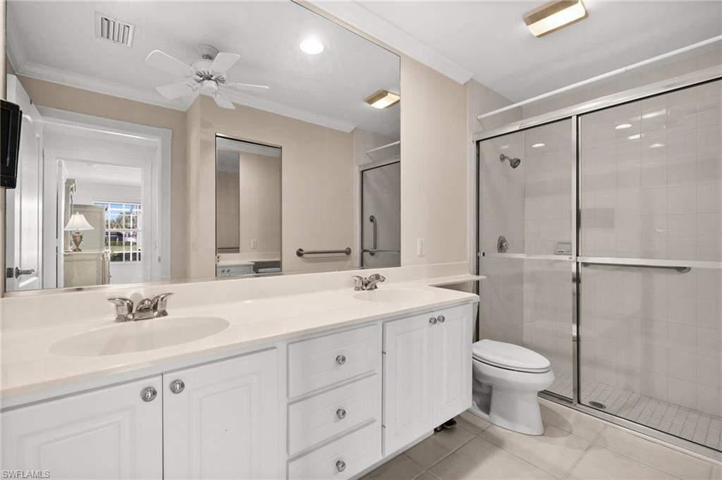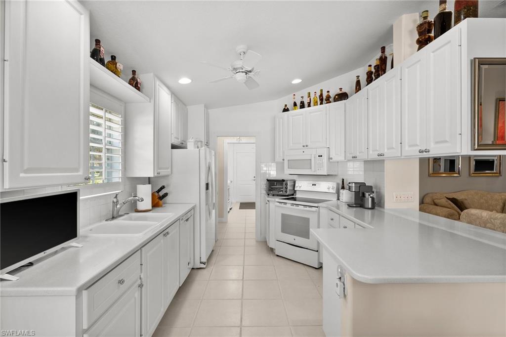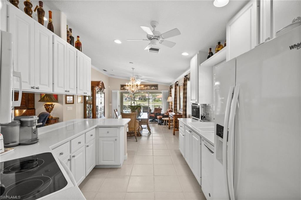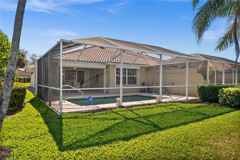 Welcome to this meticulously maintained 2-bedroom, 2-bathroom villa, offering 1,540 square feet of thoughtfully designed living space in highly coveted Island Walk. Perfectly situated off of Vanderbilt Beach Road with quick access to I-75, this home offers convenience and a serene retreat all in one. The villa greets you with a charming paver driveway leading to a spacious 2-car garage. Inside, every detail has been designed for comfort and style, featuring tile flooring and crown molding throughout. The spacious living area features a gorgeous built-in for added charm and functionality, while the large dining area is perfect for hosting gatherings. The pristine kitchen provides ample cabinetry and countertop space, ready to accommodate all your culinary needs. An ample primary bedroom serves as a luxurious retreat, offering tranquil lake views and an ensuite bathroom with dual sinks and a walk-in glass-enclosed shower. The guest bedroom is equally spacious and comfortable, perfect for visitors or a home office. Outdoors a private screened lanai awaits, complete with a sparkling pool and privacy wall, offering the ultimate outdoor oasis to relax or entertain while enjoying the stunning lake views. A large in-residence laundry room with additional storage and a utility sink adds convenience, while roll-down hurricane shutters throughout provide peace of mind. Residents of Island Walk enjoy an unparalleled array of resort-style amenities including a clubhouse, community and lap pools, beauty salon, fitness center, pickleball and tennis courts, putting green, bocce court, bike and jog paths, and an on-site restaurant. Located just minutes from Naples’ finest shopping, dining, and entertainment options, this home combines a peaceful lakeside setting with unbeatable access to everything the area has to offer.