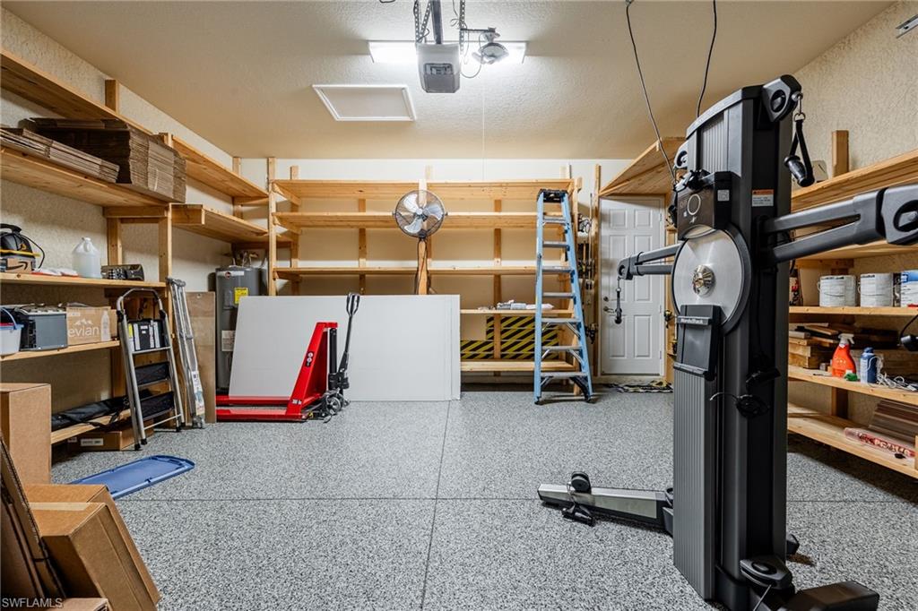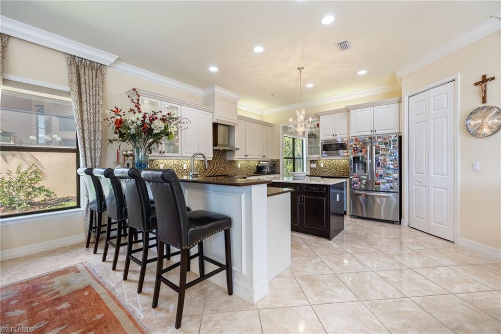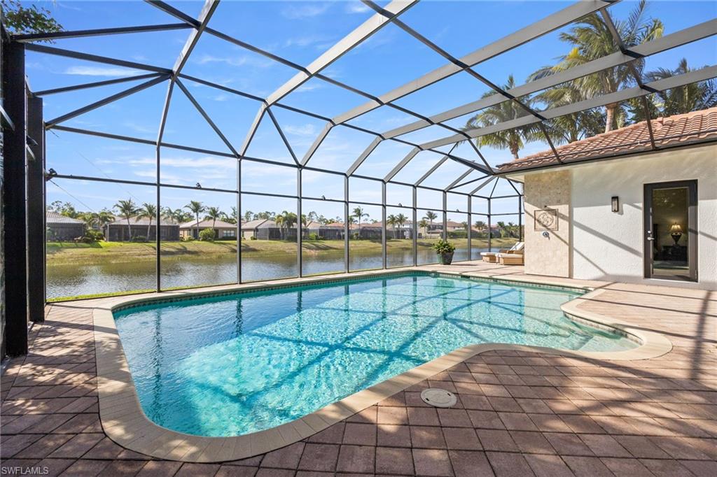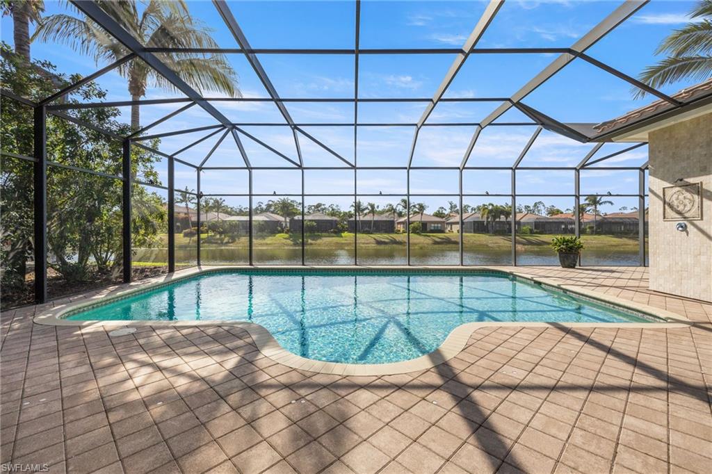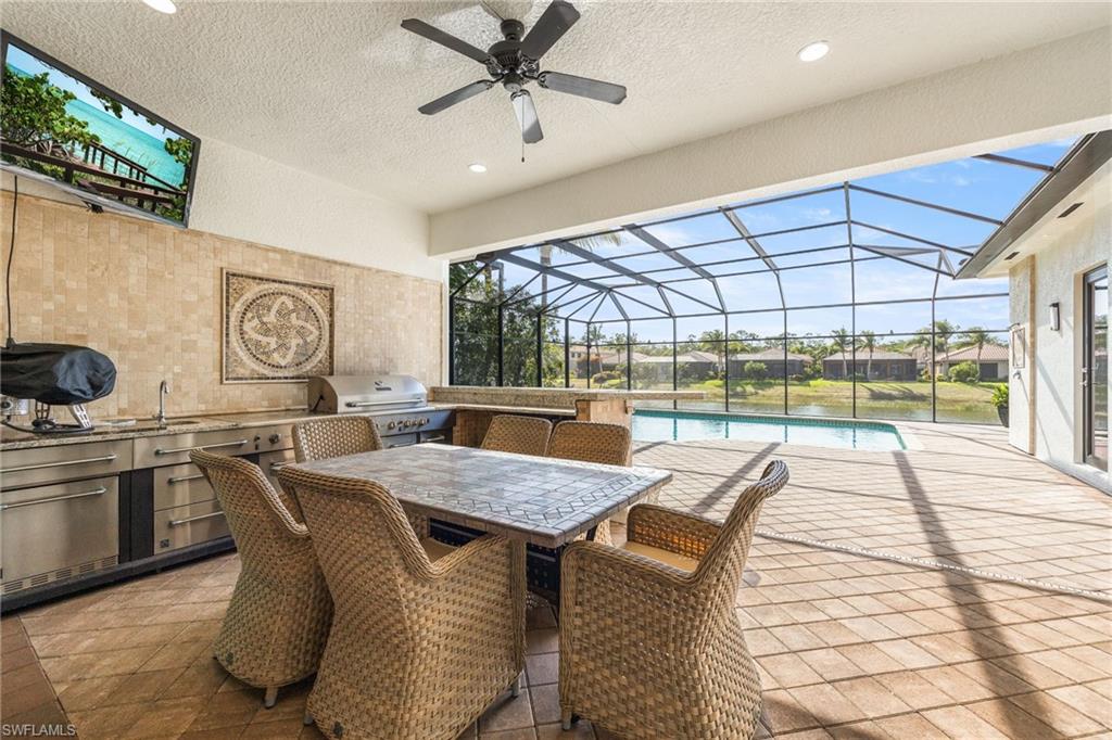 Your Florida dream life starts here - welcome to 3412 Atlantic Circle. Thoughtfully designed for comfort and style, this expansive home features 4 bedrooms plus a versatile den, 4 full bathrooms, and over 3,300 square feet of living space. Built in 2015, the home greets you with stately French doors at the entry and a bright, open-concept layout that has just been refreshed with a full exterior repaint, giving it a crisp, like-new presence. Inside, natural light pours through every room, highlighting the high-end finishes and effortless flow. The chef’s kitchen is truly the heart of the home, featuring gleaming granite countertops, a large walk-in pantry, ample cabinetry, and even a built-in wine cooler - perfect for entertaining or quiet evenings at home. The living room features an elegant electric fireplace, adding ambiance and warmth with the touch of a button - ideal for cozy nights or stylish gatherings. The primary suite is your own private retreat, offering generous space and a spa-like bathroom with a soaking tub, dual vanities, soft lighting, and a calming, retreat-like atmosphere. Step outside and you'll discover a private, waterfront backyard oasis. The solar-heated pool sparkles under northwest rear exposure, giving you all-day sun and unforgettable sunsets. The covered lanai is made for Florida living, complete with a fully equipped outdoor kitchen, outdoor shower, and peaceful lake views - perfect for entertaining or unwinding in total privacy. Both garages are finished with epoxy flooring and include custom built-in storage systems, providing functional space that's clean, organized, and ideal for hobbies, vehicles, or extra storage. Additional upgrades include a one-year-old whole-home generator with a 750-gallon tank, a recently cleaned roof, and a whole-house reverse osmosis system, ensuring comfort, reliability, and efficiency throughout. Located in the highly sought-after Riverstone community, residents enjoy access to a full suite of resort-style amenities, including a gated entrance with 24-hour staffed security, a beautiful clubhouse, resort and lap pools, a state-of-the-art fitness center, tennis courts, pickleball, basketball, playgrounds, and walking paths. You can also enjoy catch-and-release fishing in the scenic community lakes, and explore the neighborhood with ease - Riverstone is a golf-cart-friendly community, offering a fun and convenient way to take advantage of everything it has to offer.