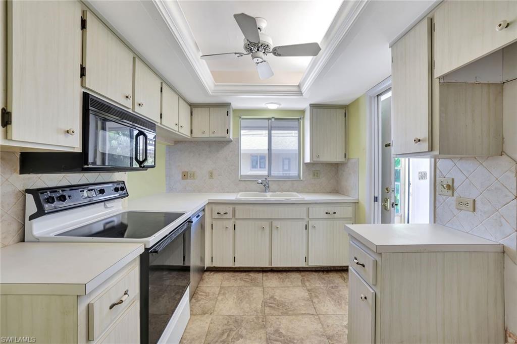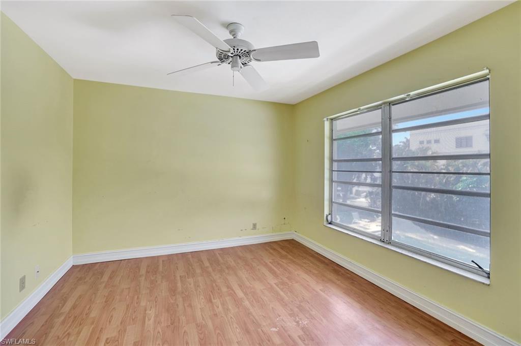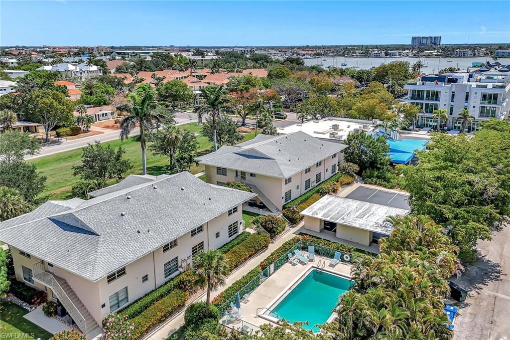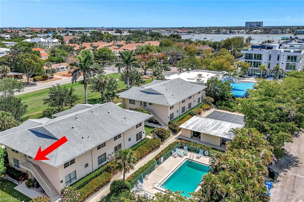 OLDE NAPLES 2+DEN GEM - NO UNIT FLOODING IN ANY HURRICANE! Just 7 blocks to the Gulf beaches, 4 blocks to the renowned 3rd Street South shopping and dining district, and steps to the Naples City Dock & Naples Landings boat ramp. Villa Versailles is tucked into a lushly landscaped setting with just 12 residences spanning approximately 1 acre. Only one or two units come available each year, making this a rare opportunity in a coveted location. This highly desired 2nd-floor corner unit enjoys serene park views along Broad Avenue and offers over 1,300 SF under air with a smart 2+Den layout. The floor plan includes a spacious primary suite with dual vanities, a walk-in shower, and generous storage—including walk-in closets in both bedrooms, a double linen closet, and a large pantry near the kitchen. Covered carport with private, secured storage included. This residence presents a rare opportunity to update and make it your own, with great bones and potential for customization. Villa Versailles features a sunny southern-facing community pool and grilling area. Pet-friendly with weight restrictions.