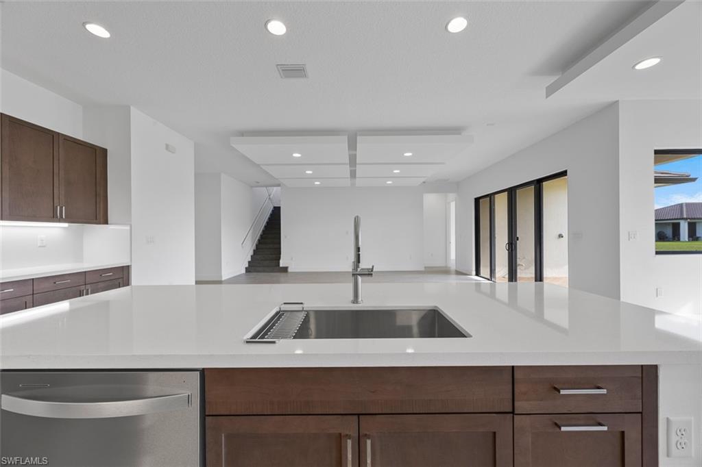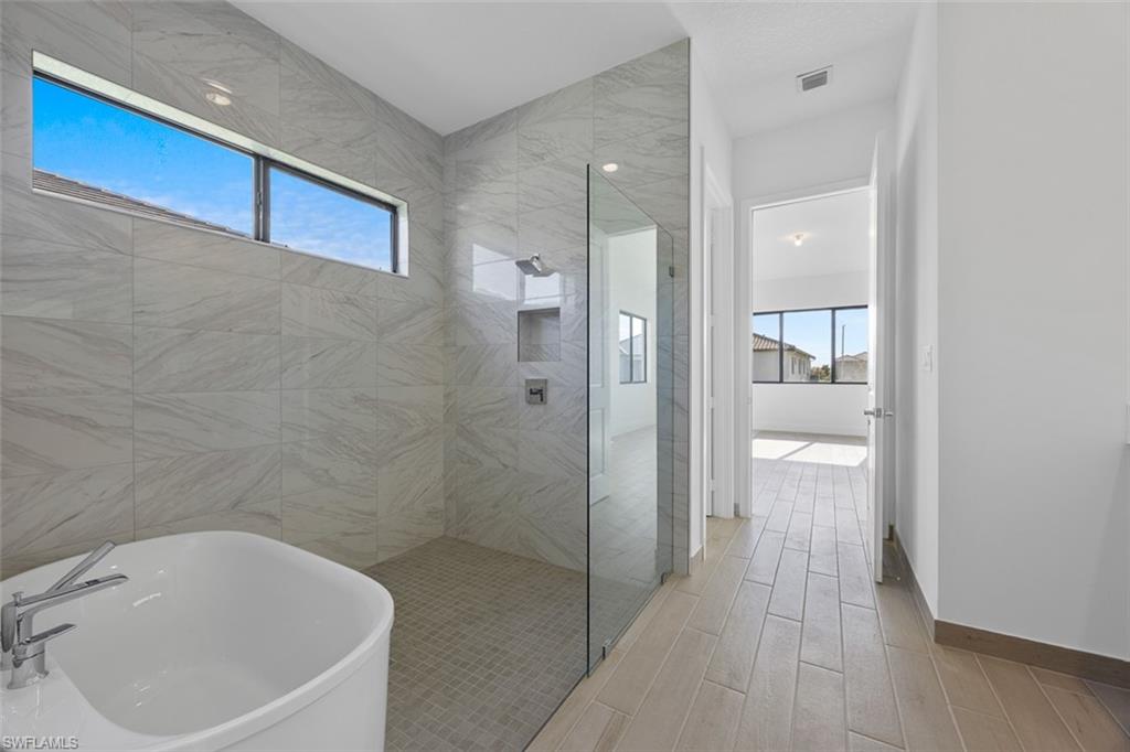 Welcome to your dream home in the highly sought-after Maple Ridge Reserve at Ave Maria—a vibrant, master-planned community known for its charm, convenience, and exceptional amenities. This brand-new, never-lived-in residence offers over 3,500 square feet of beautifully upgraded living space, perfectly designed for modern families and entertainers alike. Step through the grand entrance and experience the elegance of soaring volume ceilings, a spacious great room layout, and a versatile loft complete with a wet bar and under-counter beverage refrigerator. The heart of the home is the chef-inspired kitchen, featuring a 30" cooktop, stainless steel vent hood, microwave/oven tower, and a stylish center island. Whether you're preparing a gourmet meal or hosting friends and family, this space is as functional as it is stunning. Premium upgrades are found throughout the home, including impact-resistant windows, custom ceiling details in the great room and dining area, built-in laundry cabinets with countertops, and TV bracing packages in the great room and loft. The luxurious primary suite offers a spa-like retreat with a freestanding soaking tub, dual vanities, and generous closet space. You'll also find a private den, multiple walk-in closets, and a spacious three-car garage with insulated raised panel doors. Set on a generous 10,000+ square foot lot with west-facing rear exposure, this home offers room to design your own private pool oasis and enjoy picturesque Florida sunsets right from your backyard. Rich exterior finishes include Chocolate-toned garage doors, Amazon shutters, and Espresso Blend roof tiles, creating an inviting and sophisticated curb appeal. Life in Ave Maria is about more than just a beautiful home—it’s about connection, community, and convenience. Maple Ridge residents enjoy access to an exclusive clubhouse complete with a resort-style pool, fitness center, tennis and pickleball courts, dog park, playgrounds, walking trails, and a calendar full of engaging events. The town itself features top-rated schools, shopping, dining, and quick access to Naples, I-75, and the Gulf Coast’s pristine beaches. Don't miss this exceptional opportunity to own a stunning, move-in-ready home in one of Southwest Florida’s most desirable communities. Schedule your private showing today and start living the lifestyle you’ve been dreaming of at 5243 Karlia Dr in Ave Maria.