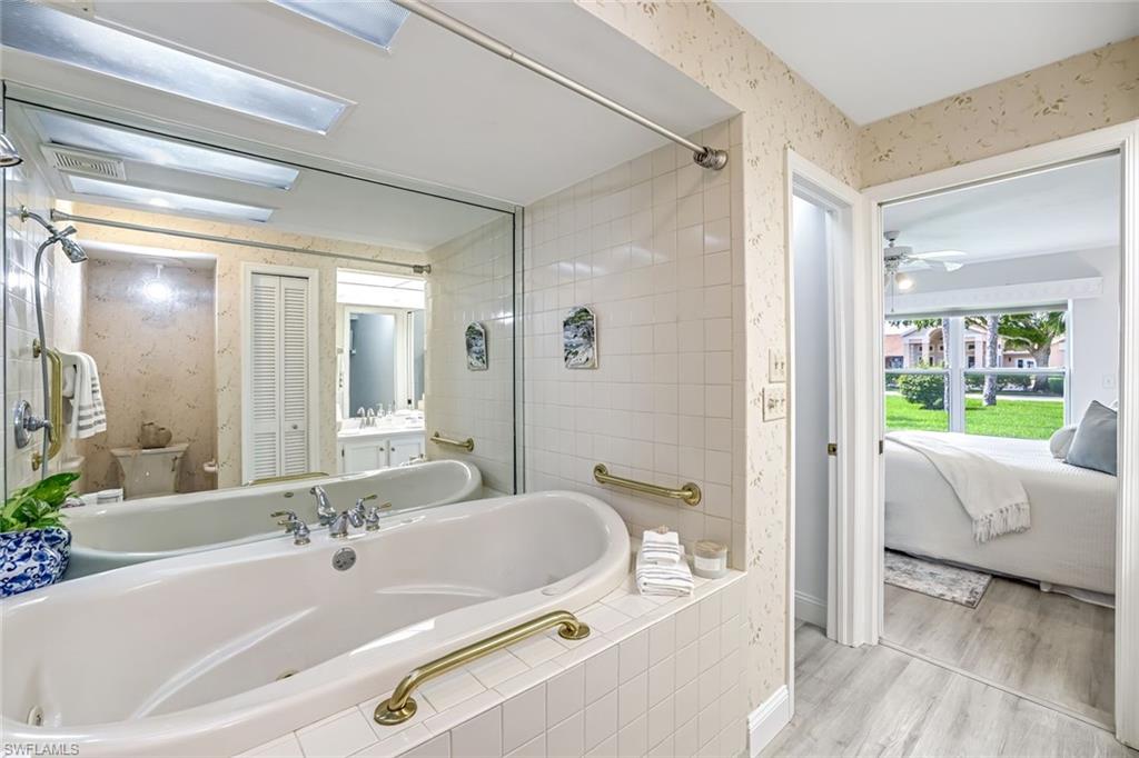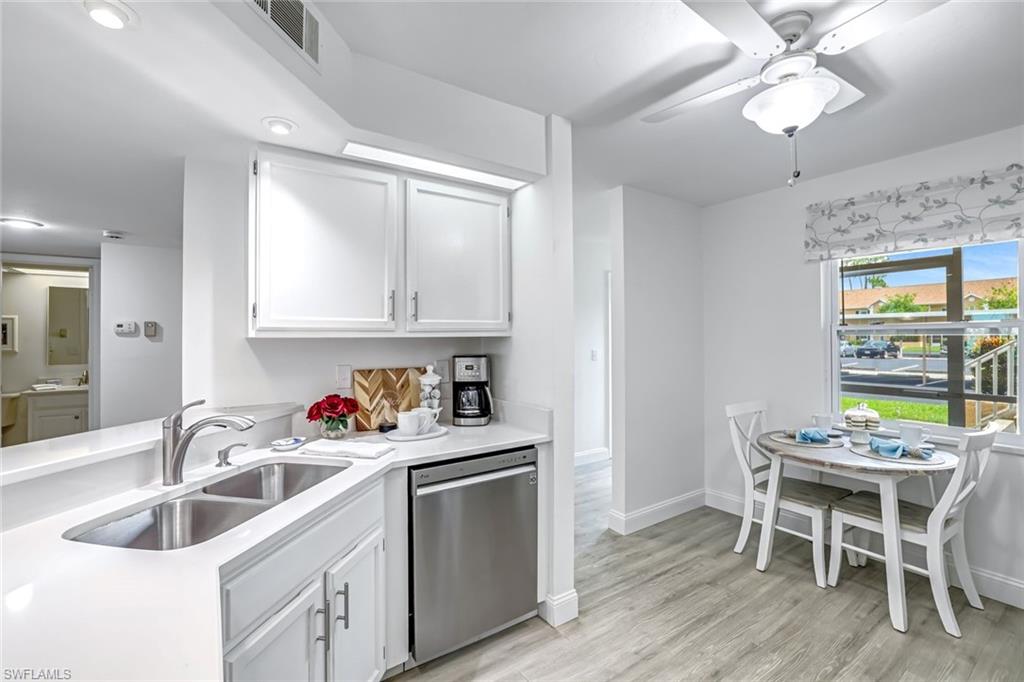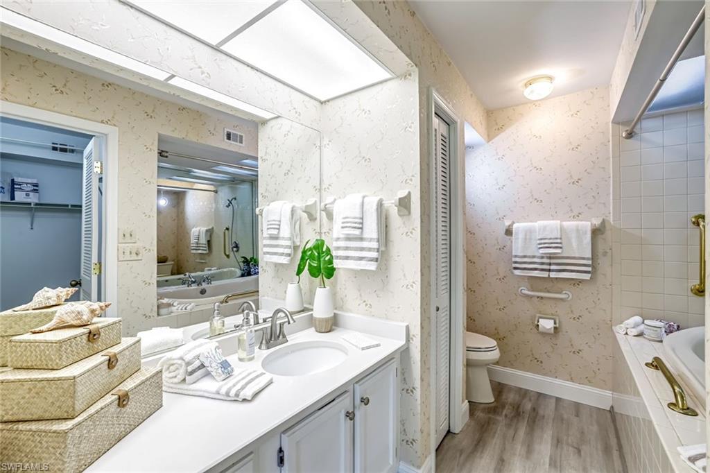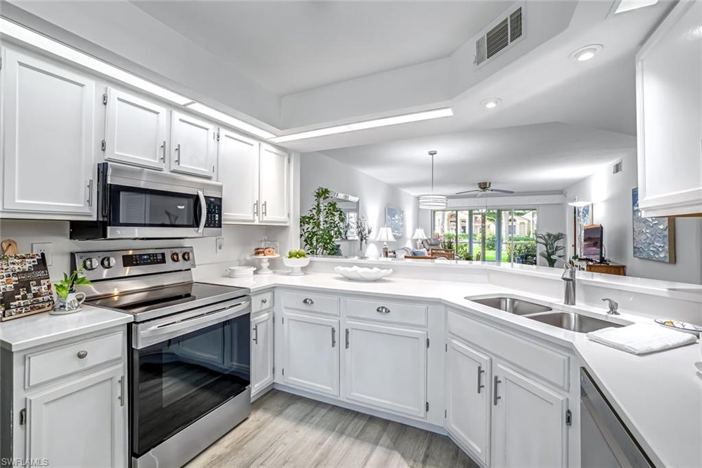 STUNNING RECENTLY RENOVATED IN NAPLES PARADISE! Step into this spacious first-floor single-level of Kingwood Garden in Crown Pointe, with open living/dining areas for relaxing or entertaining, in a preferred two story complex. Beautiful quartz countertops and LVP throughout. Charming eat-in kitchen is a chef’s delight including newer stainless steel appliances, ample cabinets and pantry space. The primary en-suite features a luxurious jacuzzi with shower and walk-in closet. Peace of mind and energy efficiency are upgrades with all impact resistant windows. Enjoy the peaceful enclosed screened lanai/patio, additional bonus screened lanai/porch and large laundry/storage room. Recent improvements include a newer roof, complete appliances/equipment and freshly painted interior and exterior. Wonderful amenities abound with community pool, pickleball/tennis courts, recreation clubhouse, BBQ grills, gardening center and basketball. In addition, there’s the benefit of walking/biking paths with a short distance to coffee shops, grocery and other services. Just moments away are the world-renowned sugar-white sand beaches of the Gulf, breathtaking sunsets, art galleries, fine/casual dining, entertainment, golfing, and boutique shopping. Whether you’re seeking a full time residence, seasonal getaway or income producing investment, look no further and enjoy the serenity of this Naples hidden gem!