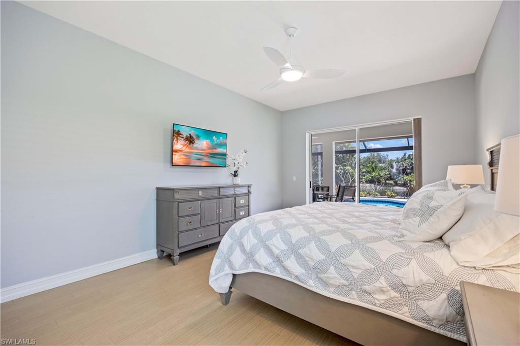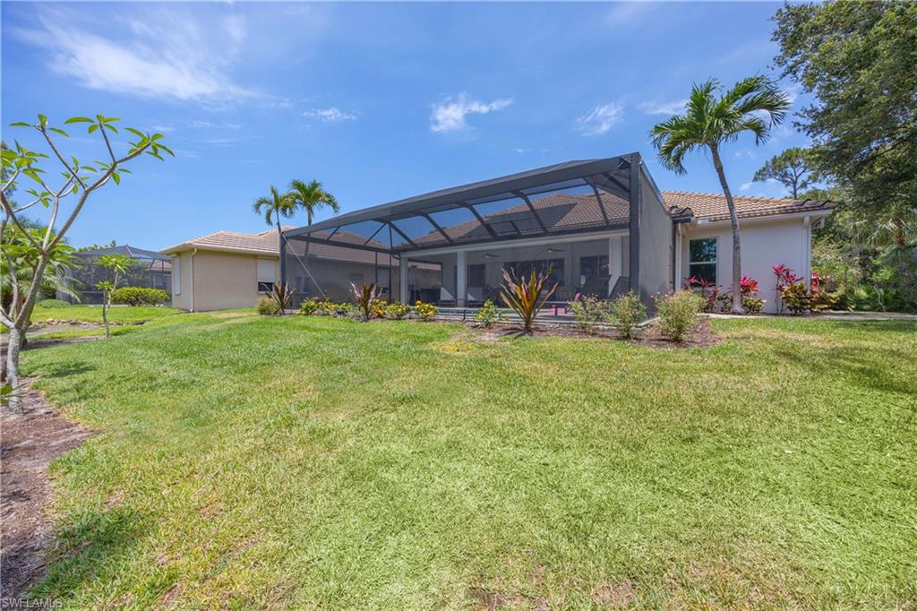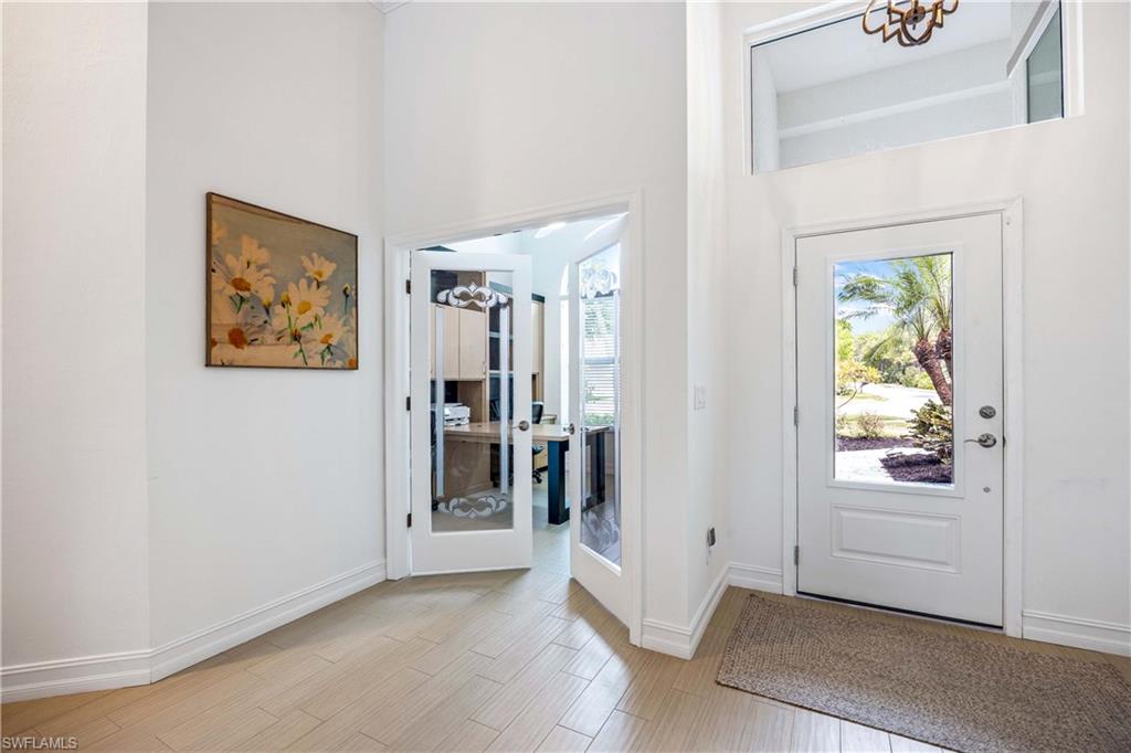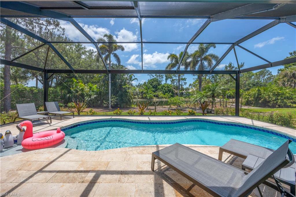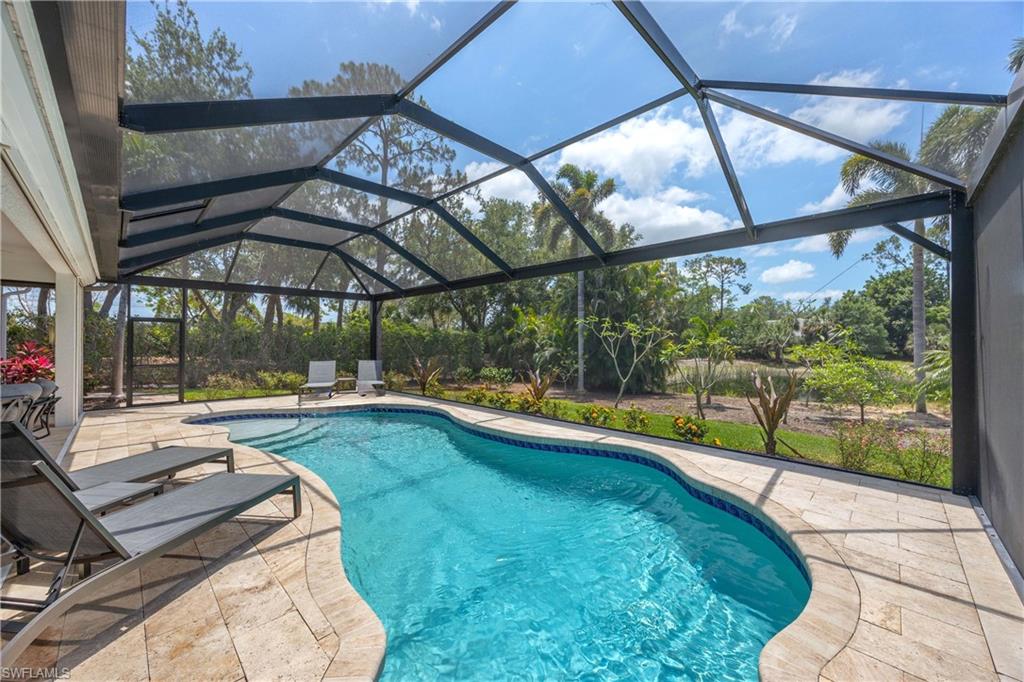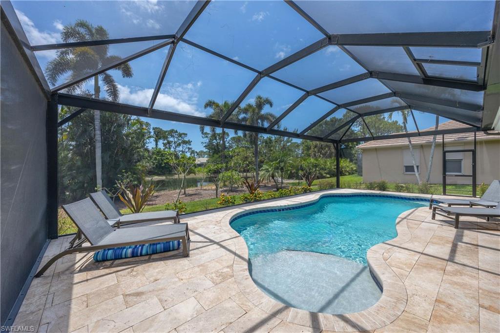 Owning this spectacular property in Autumn Woods doesn't come along very often. This lot has no neighboring home on one side and has privacy abound with a southern exposure pool and a serene view of a landscaped lake. This is a quiet 3+den home with open floor plan, split bedrooms, 2 bath, 2 car garage with A/C mini split and air conditioned storage room, 2 dining areas, and upgraded hurricane door and windows. For added protection of the rear sliders there are Kevlar manual/remote screens all under a 2020 roof. Long list of home improvements include kitchen and cabinetry, backsplash and appliances, primary bathroom, laundry room, solar pool heating and pump for a salt water pool, landscaping, closet systems, interior and exterior paint, and more! This home is sure to meet the needs of you and your family in an A rated school district. Leave and rest assure your home is protected in this gated community with low HOA fees of $800/Q! Autumn Woods is a convenient location to excellent public and private schools, restaurants, and shopping. This home is not to be missed!