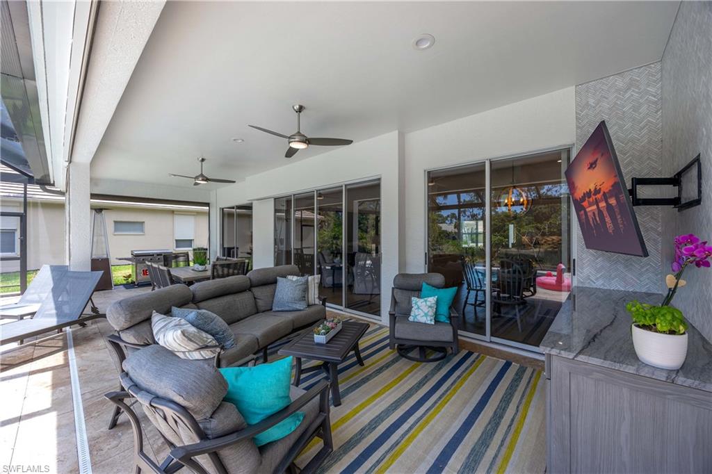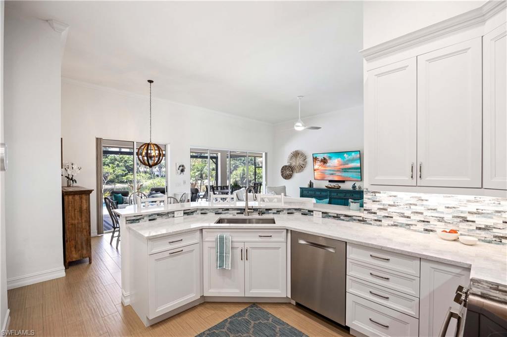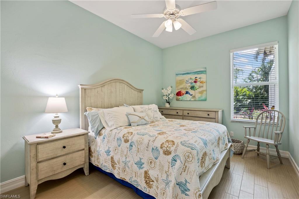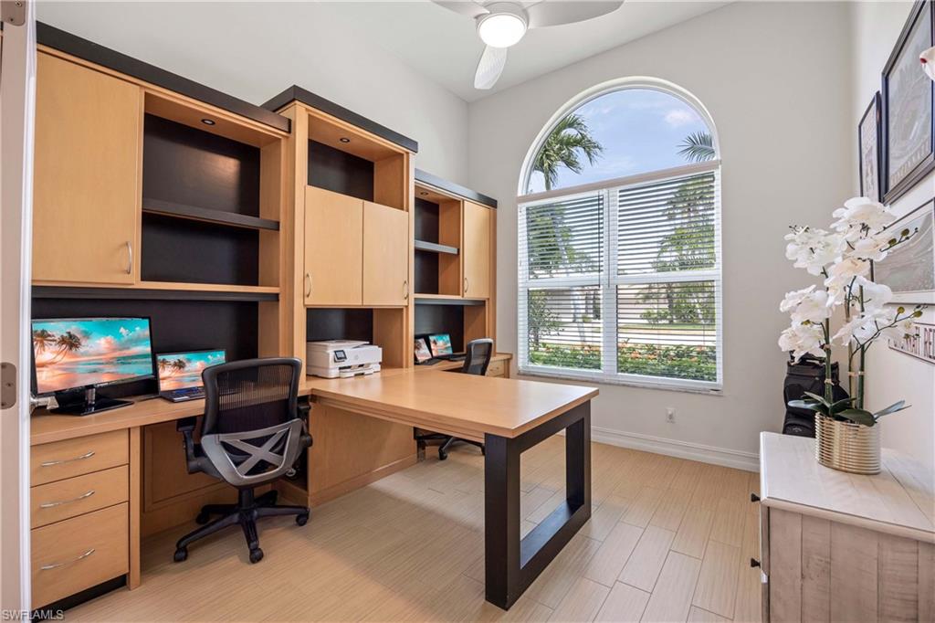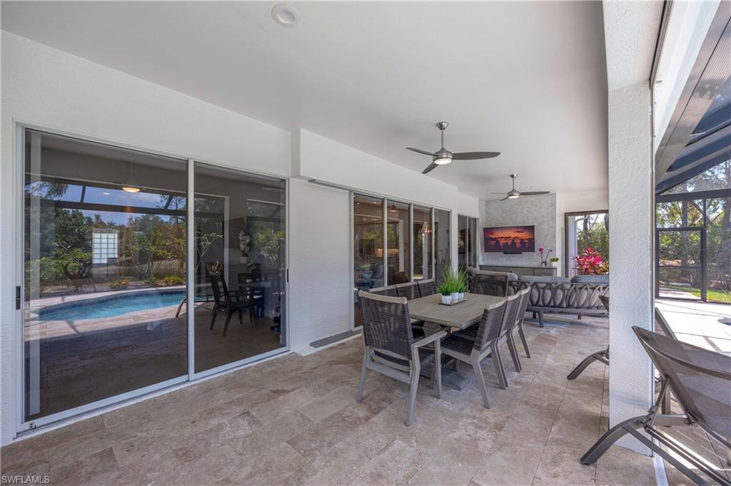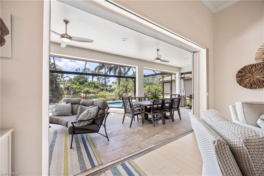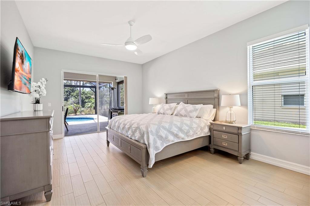 Owning this spectacular property in Autumn Woods doesn't come along very often. This lot has no neighboring home on one side and has privacy abound with a southern exposure pool and a serene view of a landscaped lake. This is a quiet 3+den home with open floor plan, split bedrooms, 2 bath, 2 car garage with A/C mini split and air conditioned storage room, 2 dining areas, and upgraded hurricane door and windows. For added protection of the rear sliders there are Kevlar manual/remote screens all under a 2020 roof. Long list of home improvements include kitchen and cabinetry, backsplash and appliances, primary bathroom, laundry room, solar pool heating and pump for a salt water pool, landscaping, closet systems, interior and exterior paint, and more! This home is sure to meet the needs of you and your family in an A rated school district. Leave and rest assure your home is protected in this gated community with low HOA fees of $800/Q! Autumn Woods is a convenient location to excellent public and private schools, restaurants, and shopping. This home is not to be missed!