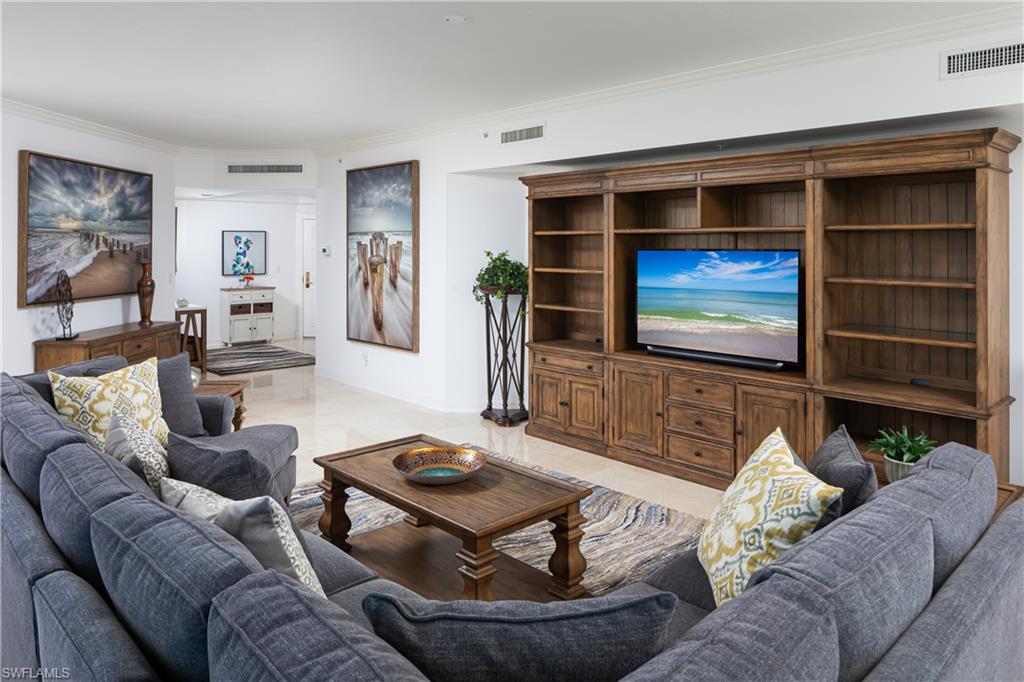 Experience the Ultimate Waterfront Lifestyle! Imagine waking up to the stunning view of the Gulf from your bedroom window. This spacious, desirable Admiral floorplan is an end unit w/2862 SF, positioned in the estuary and providing big vistas of the Gulf and sugar sand beaches. Residence I # 504 features 3 ensuite bedrooms plus a spacious den and half bath. Never miss a sunset or the afterglow with sliding doors that open to the large sunset lanai and breathtaking views of aqua-blue Gulf waters as far as the eye can see! The beautiful marble floors are throughout property adding classic beauty and easy care! A bright and open kitchen is a chef's dream, featuring generous cabinet space, a center island, and large windows that offer stunning water views. It's the perfect setting for both cooking and entertaining, with the beautiful water vistas taking center stage. The spacious Primary suite is an inviting retreat, featuring a lovely bathroom and two large walk-in closets to complete the personal space. The oversized impact glass window offers breathtaking views of the Gulf of America. The guest wing, on the east side of the property has 2 delightful, light-filled bedrooms, great closet space, plus they are conveniently situated near the laundry rm for sandy bathing suits! Never miss a sunset or the afterglow! Impact glass sliding doors open to the large sunset lanai, offering breathtaking views of the aqua-blue Gulf waters trimmed with white sugar sand beaches to the west and north as far as the eye can see. What a fantastic location! Nestled in the heart of North Naples, this prime spot offers unparalleled convenience. You'll be just moments away from beautiful beaches, top-notch shopping, exquisite restaurants, and essential hospitals. North Naples truly provides the best of everything, making it the perfect place to call home. Why This Property? - ASSESSMENT PAID - Space! 3BR + Den 3.5 baths - Prime Waterfront Location: Enjoy direct access to the water, perfect for boating, fishing, or simply relaxing by the water. - Breathtaking Views: Every room in the house offers panoramic views of the water, creating a serene and picturesque environment. - Impact glass in all windows & sliders. Sate of the art construction - Concrete block buildings. - All Milestone inspections completed and passed. Don't miss out on the opportunity to own this exceptional waterfront property. P 10: Sto 31